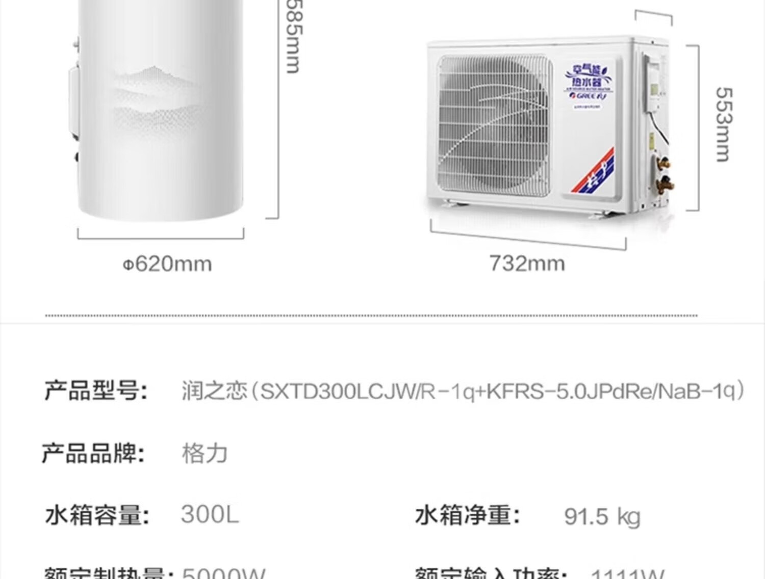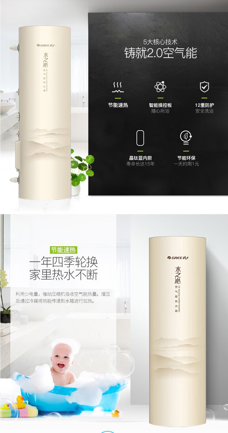 Gree central air-conditioning heat pump air energy 200 liters air energy water heater household large-capacity air source 300 liters air energy energy-saving central air-conditioning heat pump Gree air energy 200 liters three-stage frequency conversion - Shuizhiqin series/55 degrees