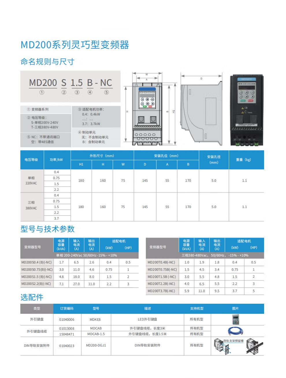 Inovance Technology Inverter T0.7BMD200T0.75BMD200T1.5BMD200T3.7B MD200T3.7B-NC
