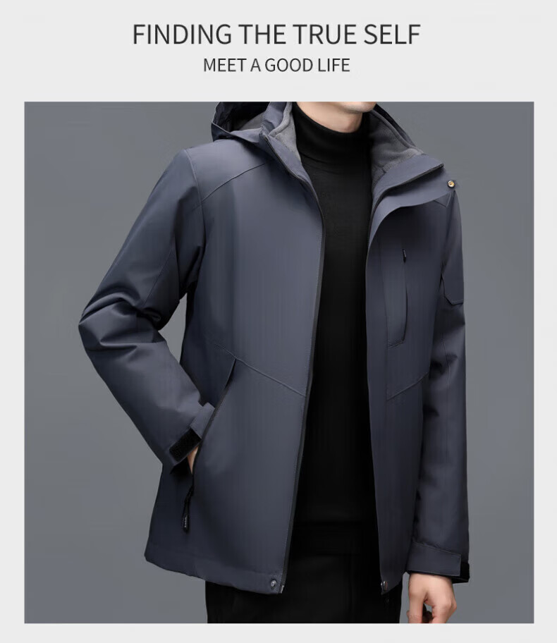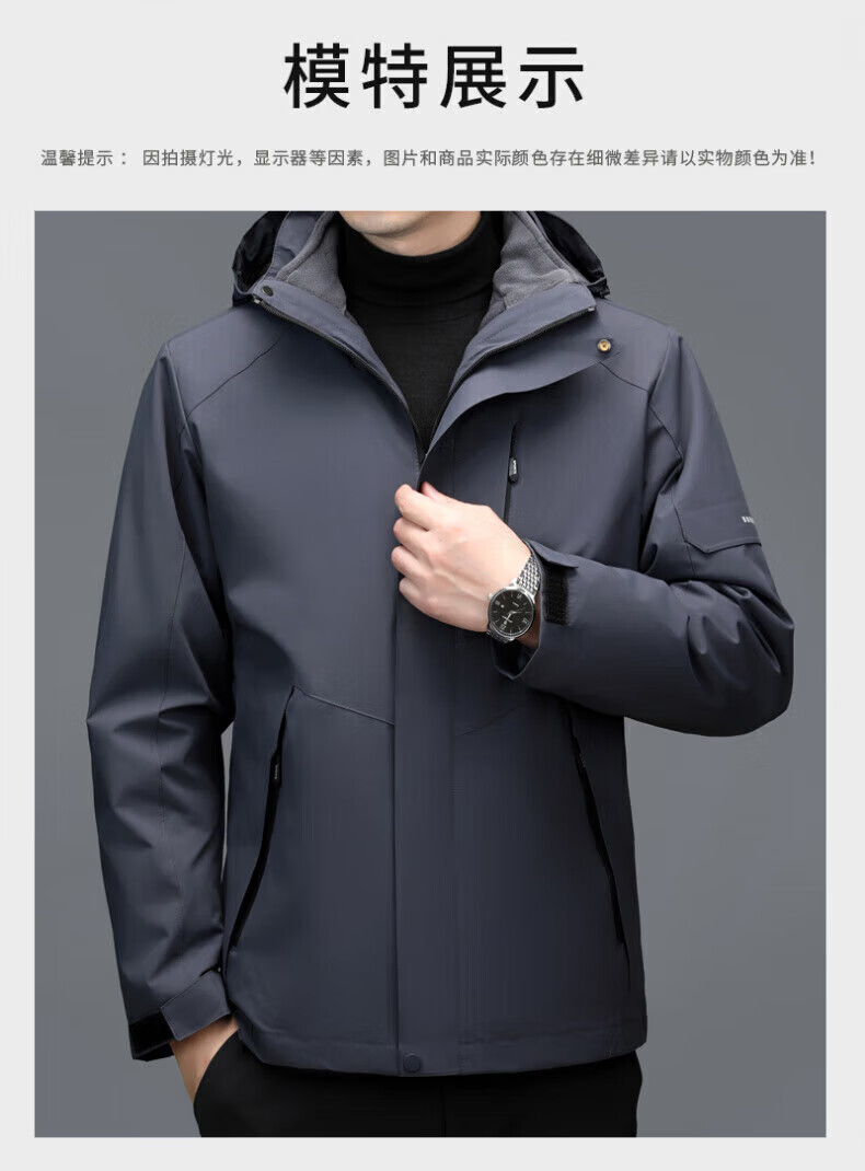 ROMON three-in-one jacket men's autumn and winter removable liner jacket thickened outdoor windproof warm mountaineering jacket dark blue XL recommended 130-150Jin Jin equals 0.5 kg