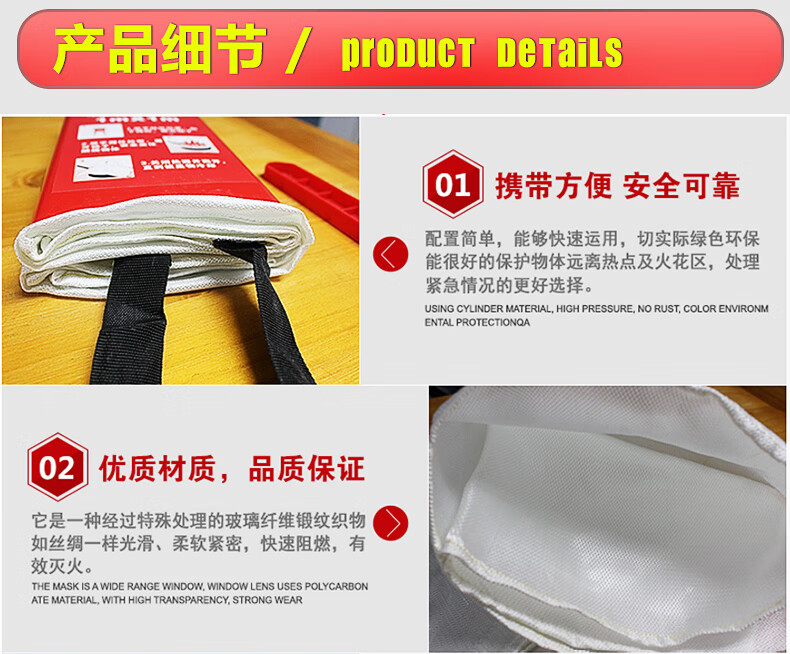 JCZS German fire blanket fire-fighting special new national standard household kitchen silicone fiberglass fire blanket commercial certification adult cloak yellow + adult escape mask