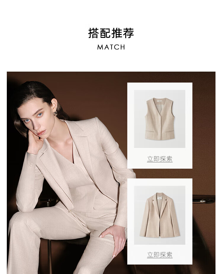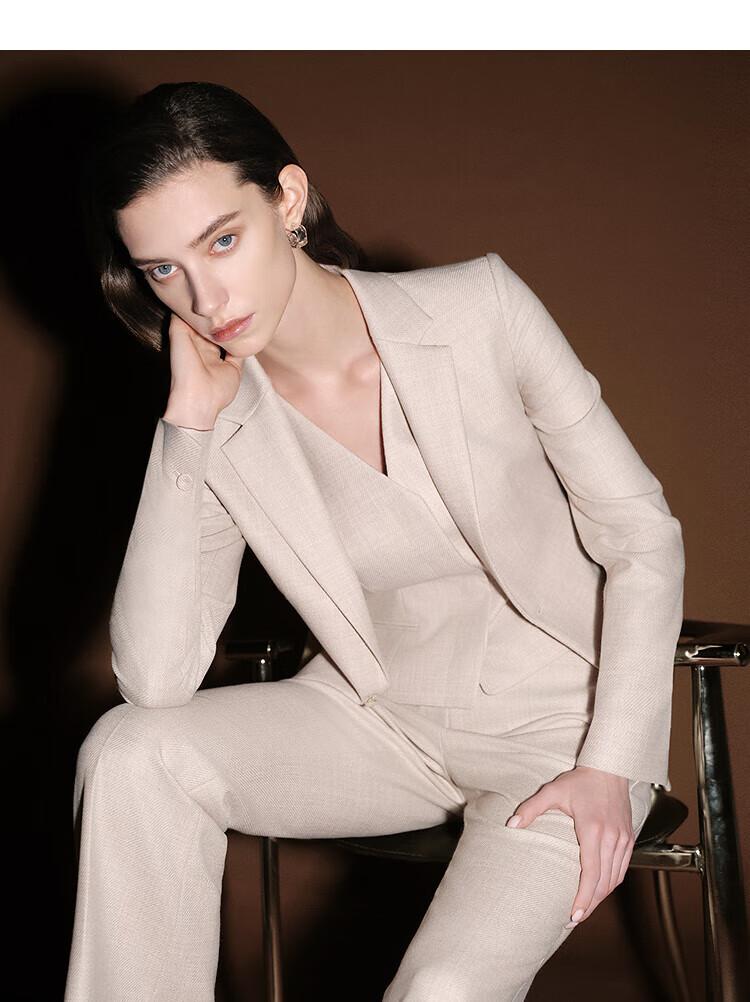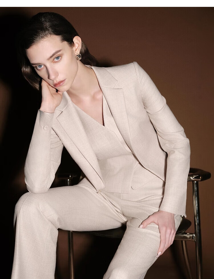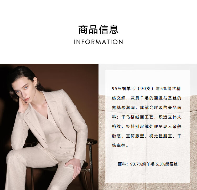 Laur l silk wool tweed 25 new autumn Rui sense straight trousers LWL364K04000 camel mixed color XS