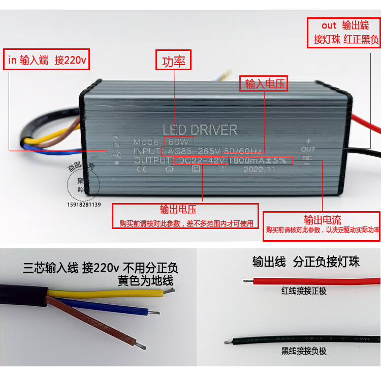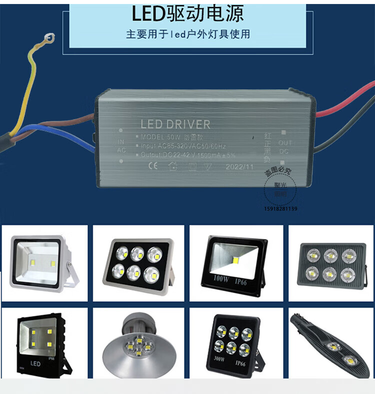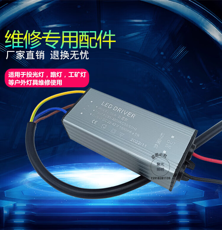 LED floodlight driver power ballast outdoor street light waterproof power supply aluminum shell accessories transformer 50W100W 10 series 3 parallel 30 watt-DC22-42v output current 9