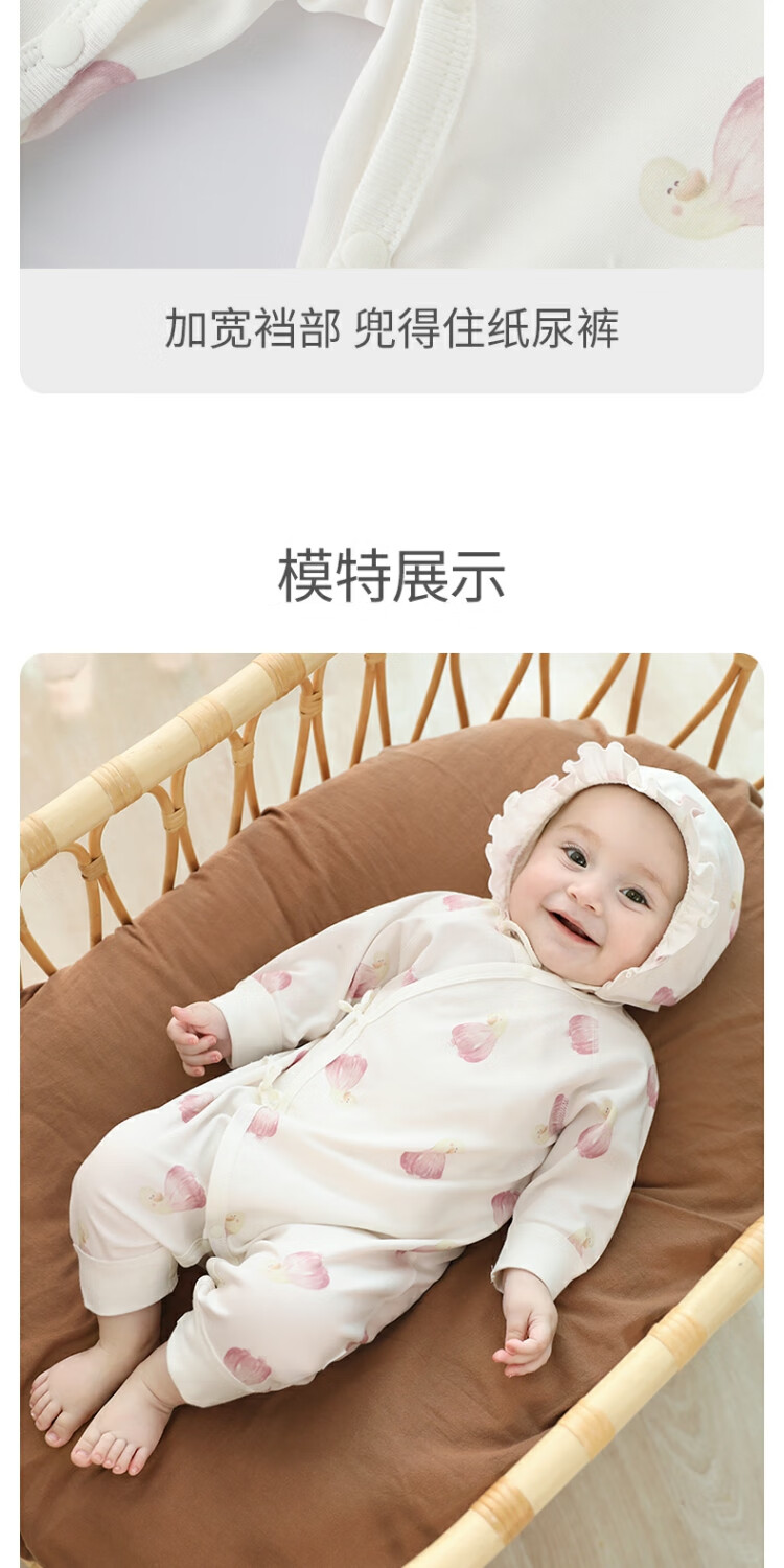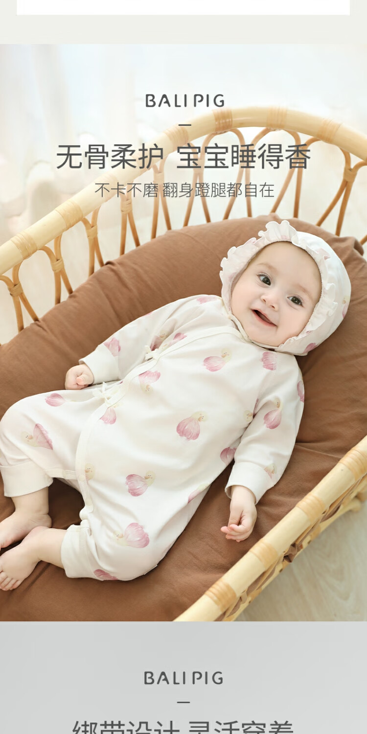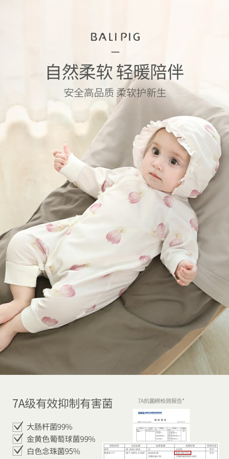 Bali Piggy Baby Clothes Newborn Spring and Autumn Pure Cotton Category A Clothes Autumn Newborn Monk Clothes Size 52 Baby Onesies Garlic Good Duck 66cm