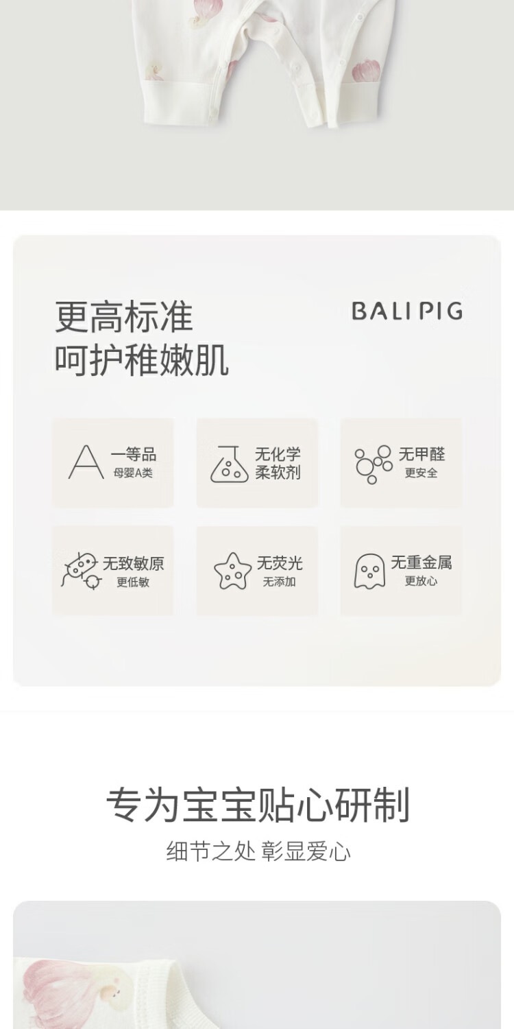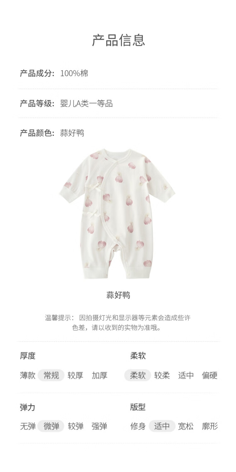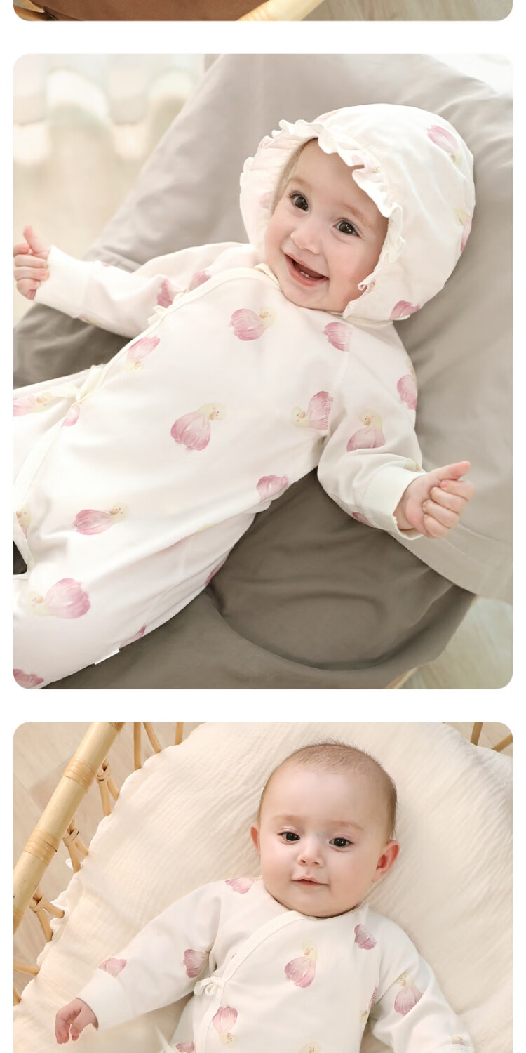 Bali Piggy Baby Clothes Newborn Spring and Autumn Pure Cotton Category A Clothes Autumn Newborn Monk Clothes Size 52 Baby Onesies Garlic Good Duck 66cm
