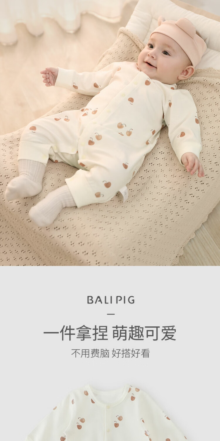 Bali Piglet Baby Clothes Newborn Category A Pure Cotton Spring and Autumn Harness Long Sleeve Reptile Clothing Newborn Autumn Baby Onesie Chibi Maruko-chan 66cm
