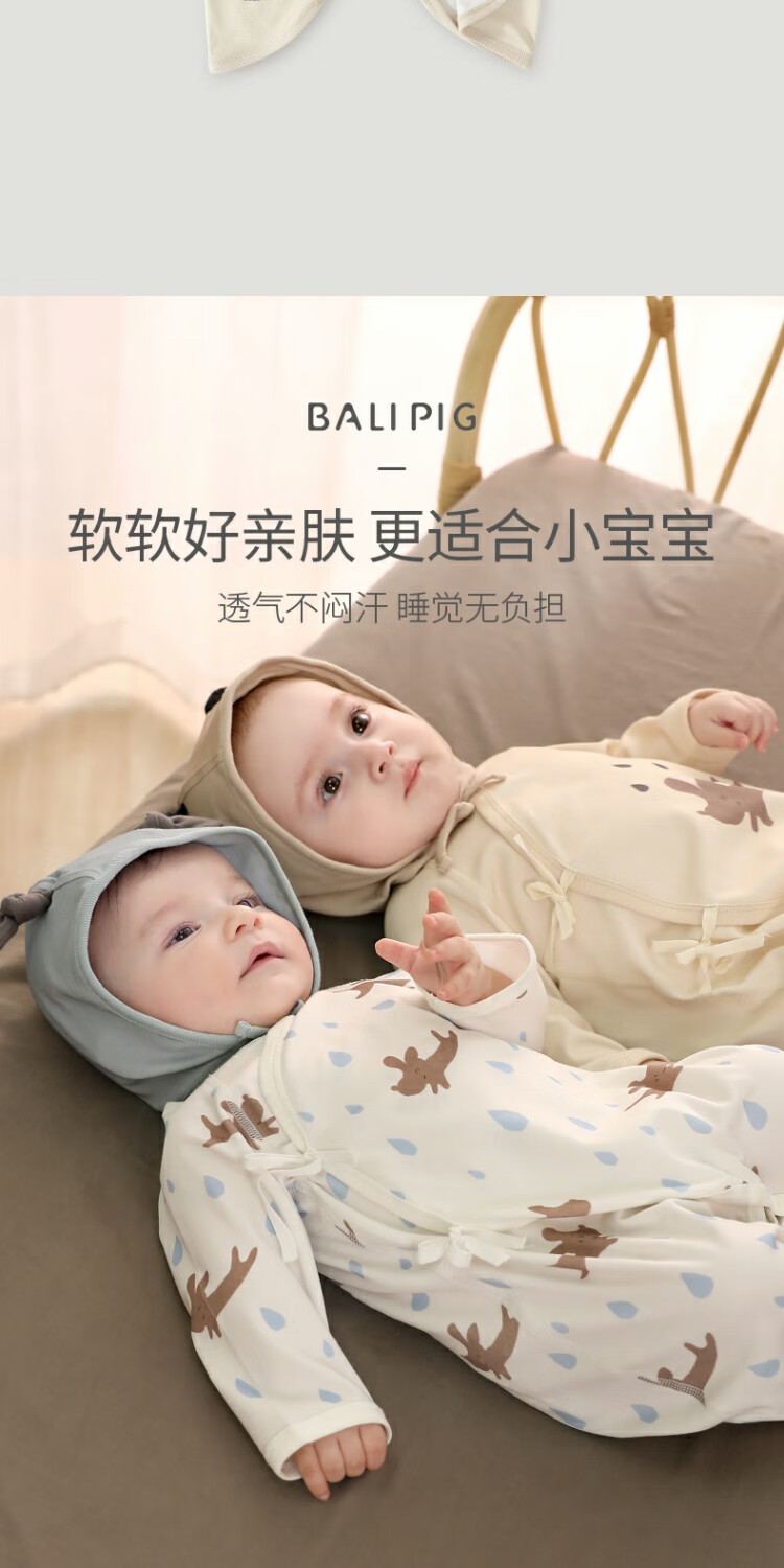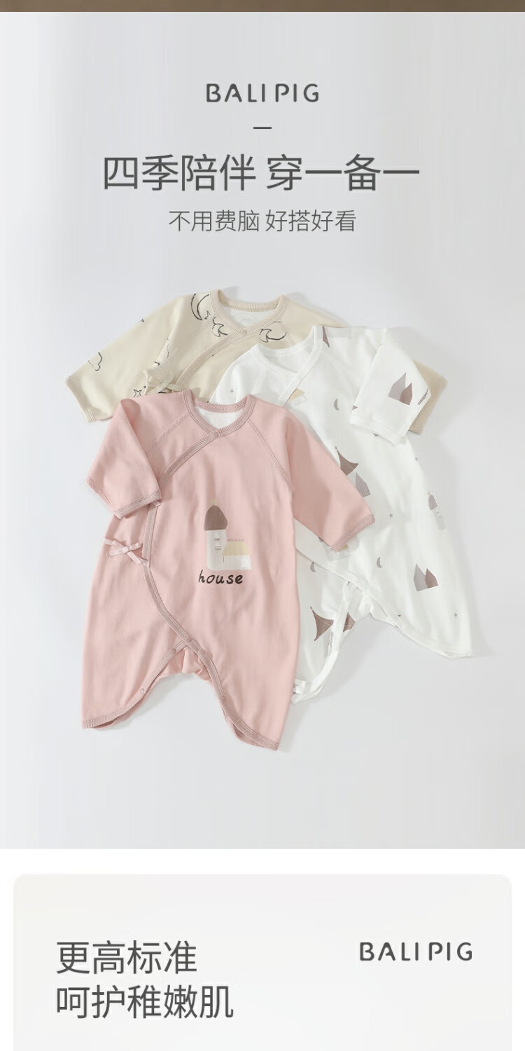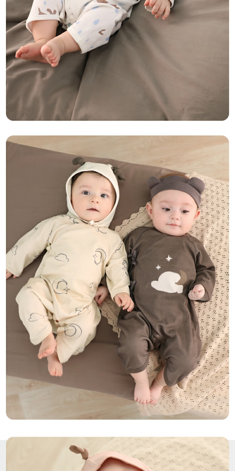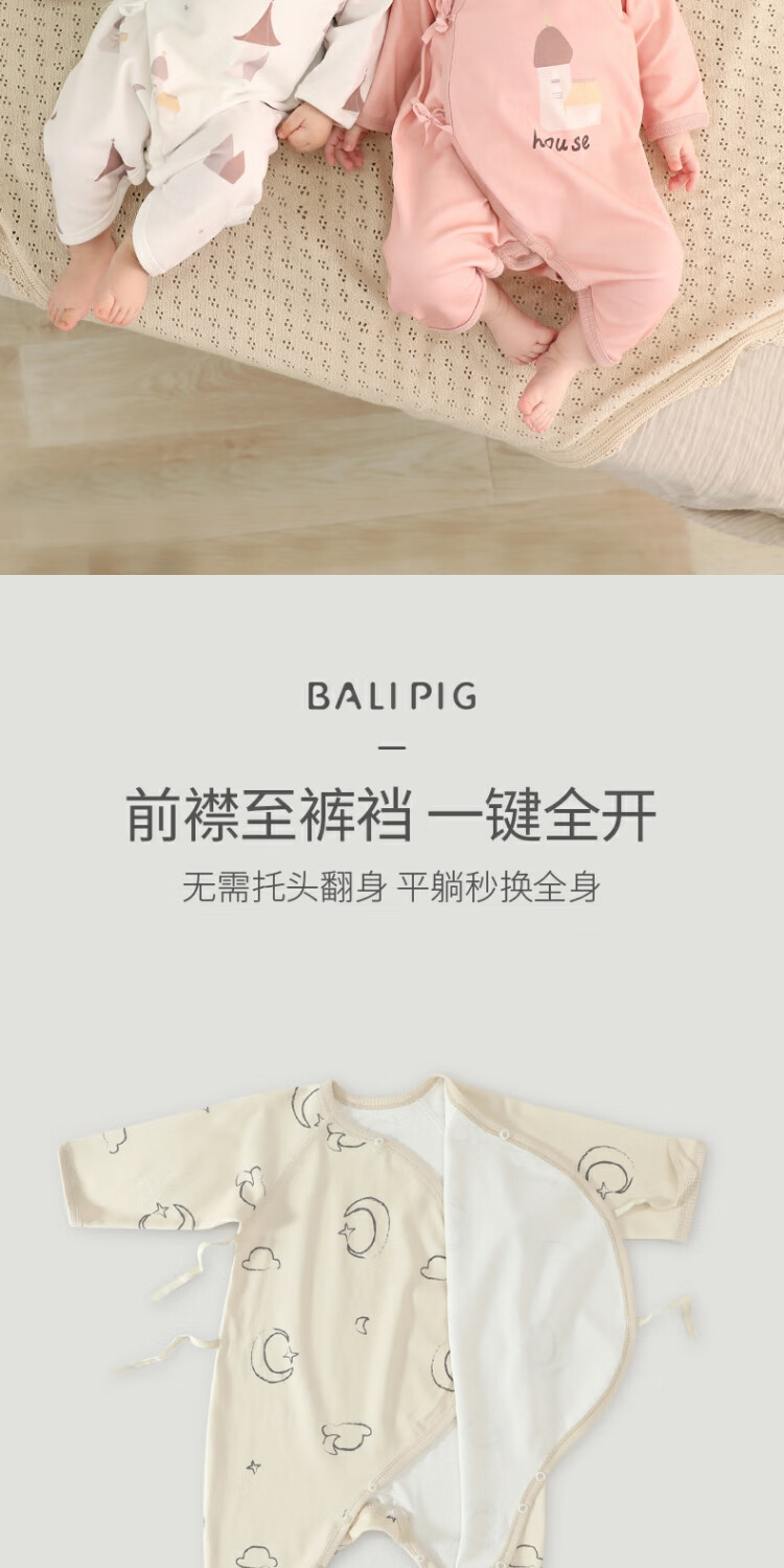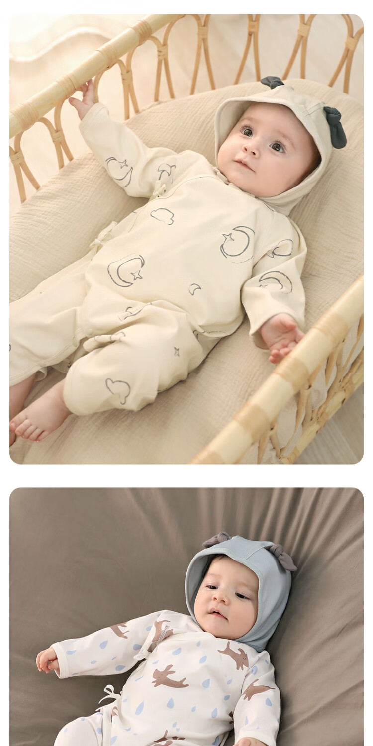 Bali Piggy Two-piece Newborn Baby Clothes Spring and Autumn Pure Cotton Butterfly Clothes Four Seasons Size 52 Delivery Room Baby One-piece Dream Moon + Fog Gray 59cm