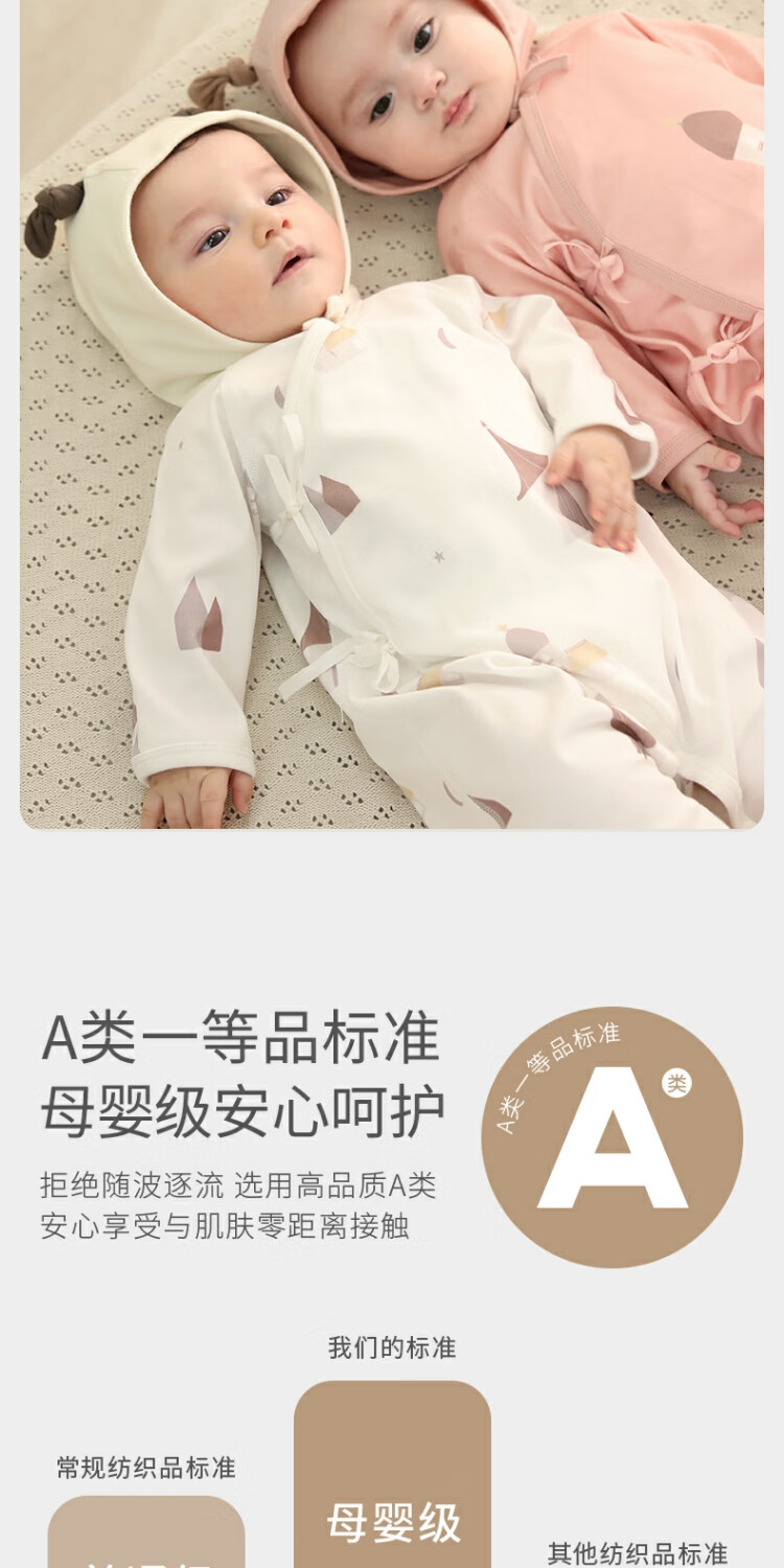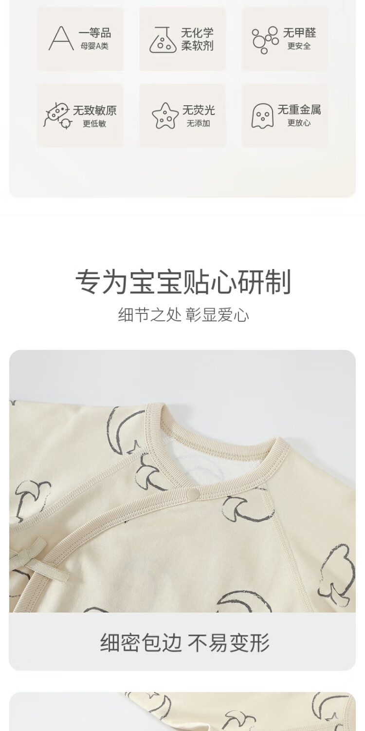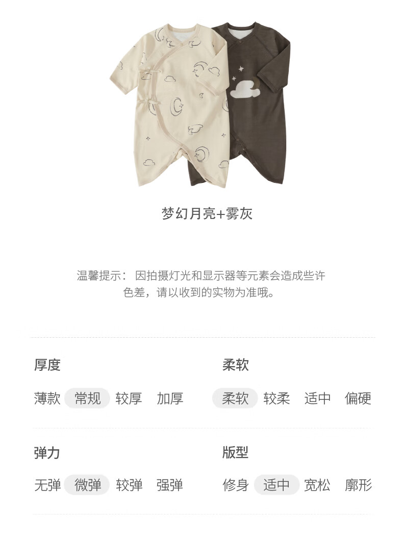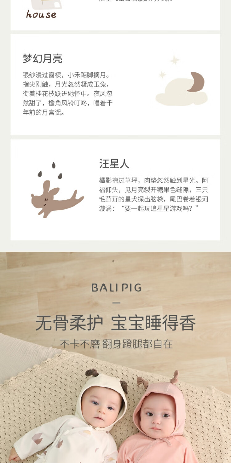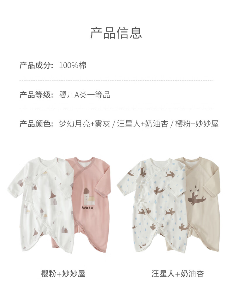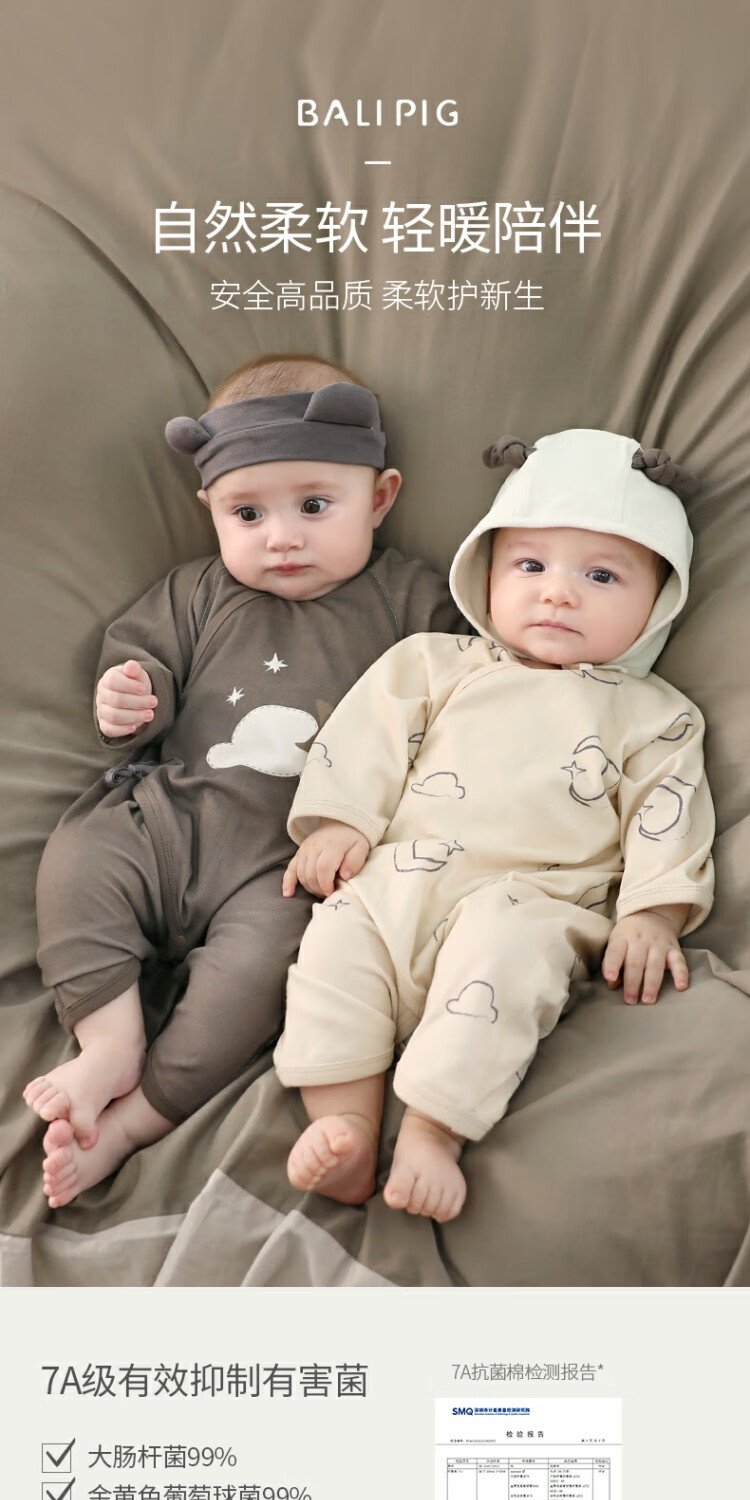 Bali Piggy Two-piece Newborn Baby Clothes Spring and Autumn Pure Cotton Butterfly Clothes Four Seasons Size 52 Delivery Room Baby One-piece Dream Moon + Fog Gray 59cm