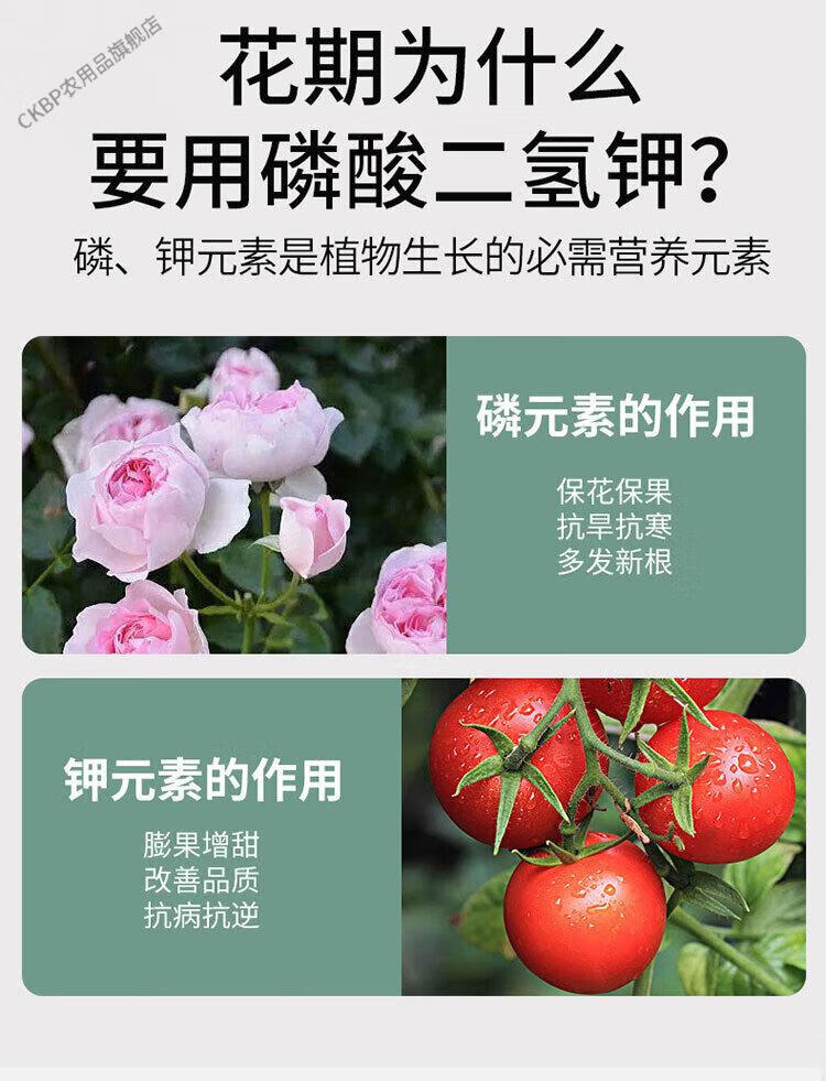 YWZR Potassium Dihydrogen Phosphate Fertilizer Flower Special Agricultural Plant Potted Flower-promoting Phosphorus Potassium Fertilizer Water-soluble Foliar Fertilizer Potassium Dihydrogen Phosphate 500g 4 cans Free Rooting Liquid + Vitality + Rooting Powder