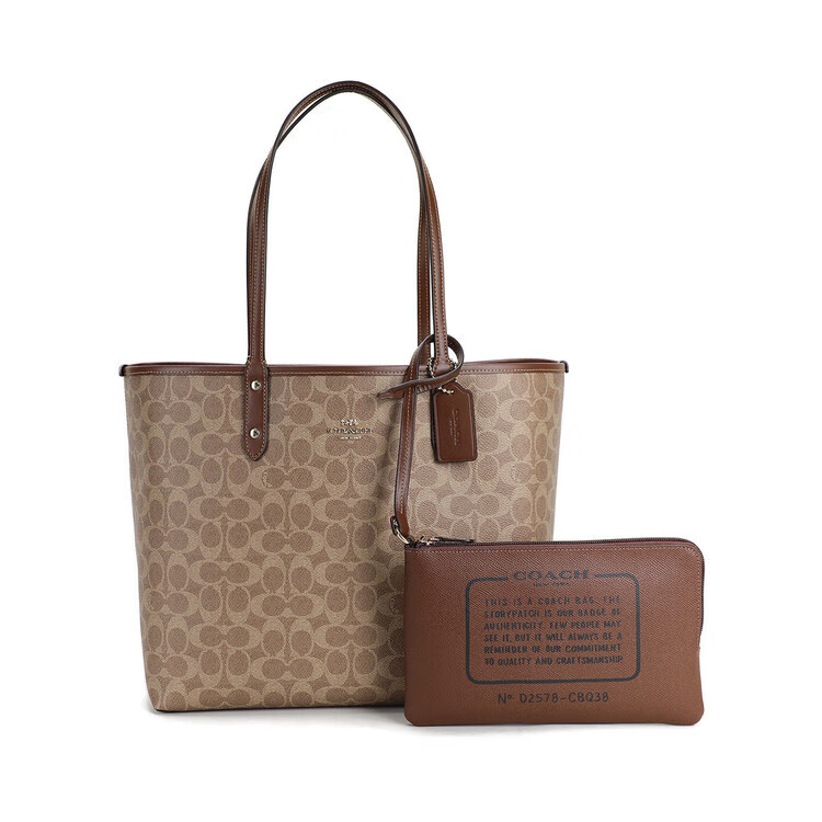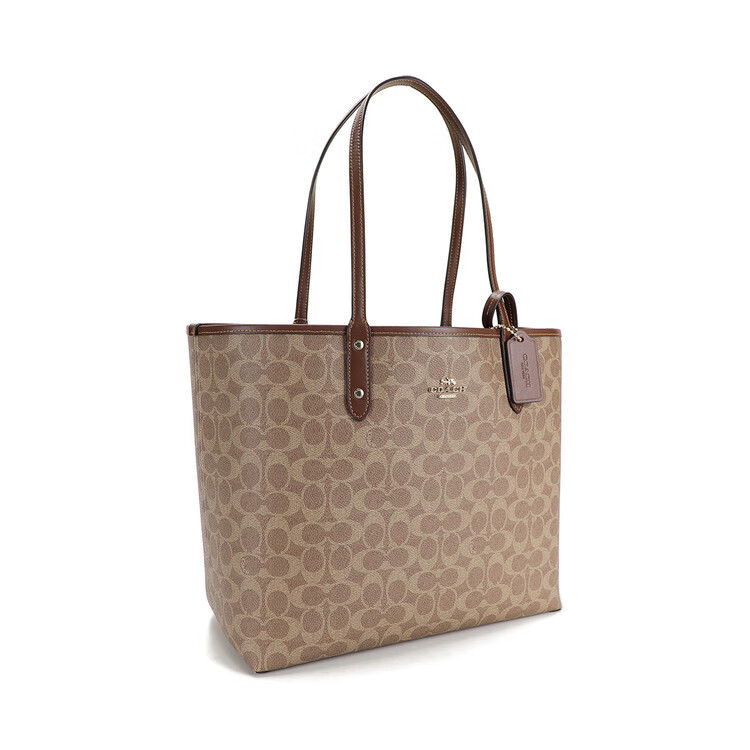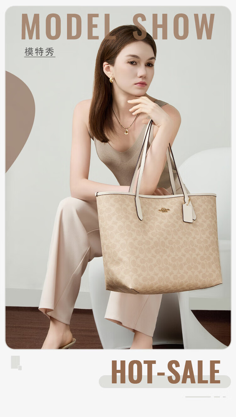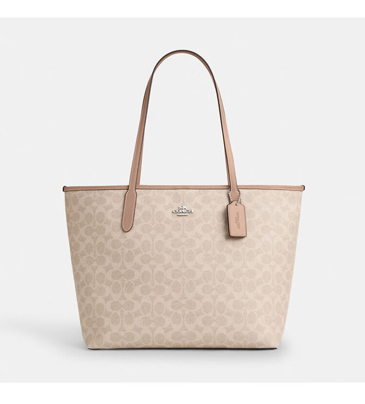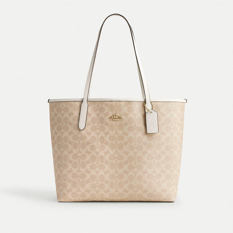 COACH JD Outlet City33 Tote Large Capacity Handbag Women's Light Luxury Birthday Gift for Girlfriend Milk Tea Color CV976SVPWH One Size