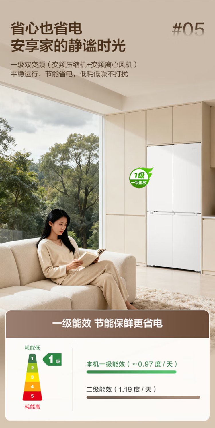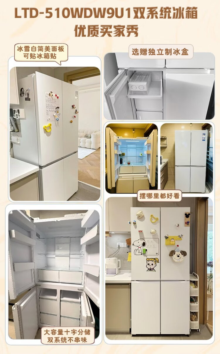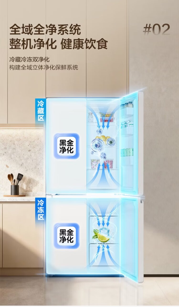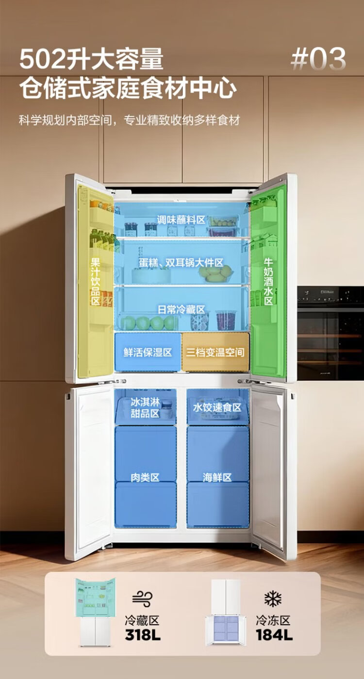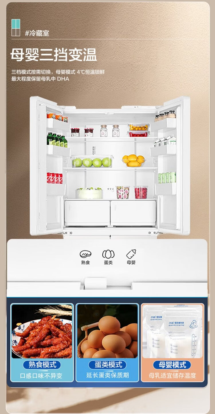 Haier Haier refrigerator produces a cross-shaped four-door dual-system dual-cycle air-cooled frost-free first-class energy efficiency state-subsidized ultra-thin inverter household large-capacity fresh-keeping refrigerator, ice and snow white 502 liters, dual systems without odor, full space purification