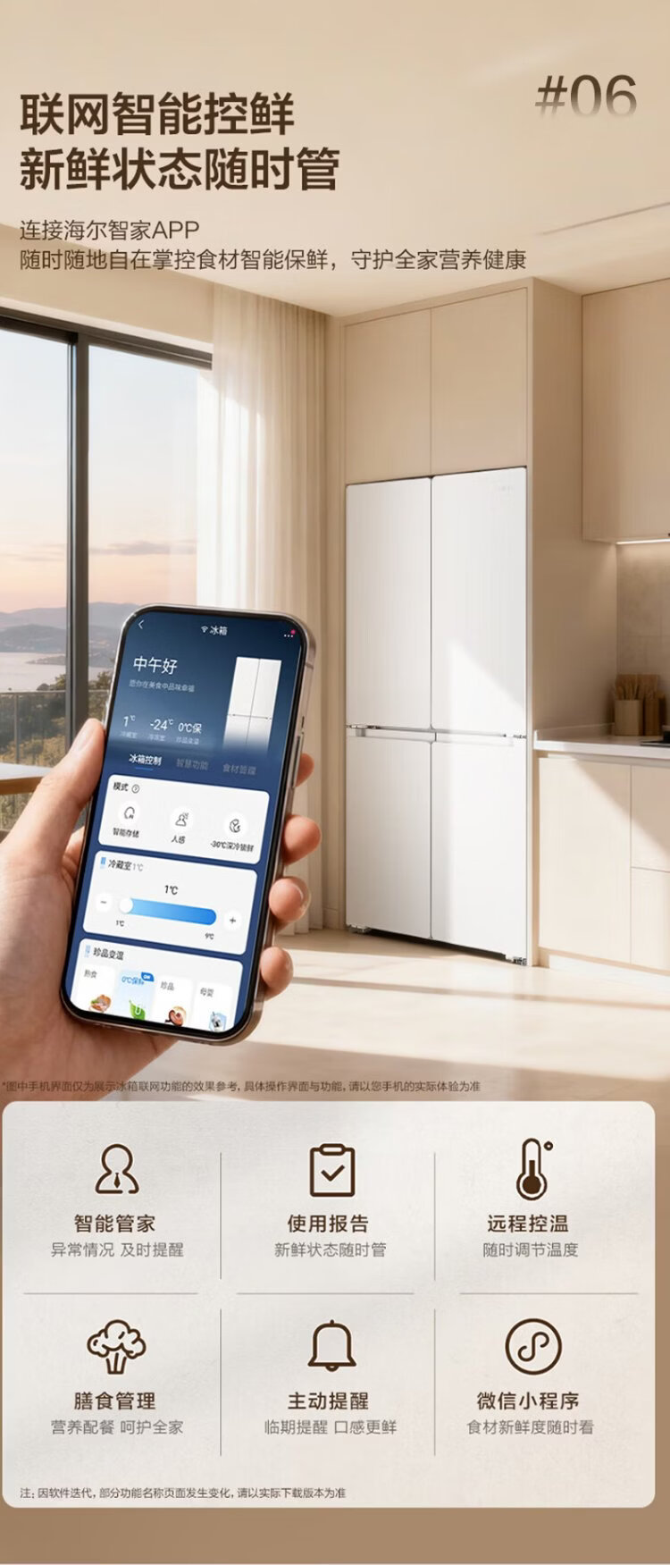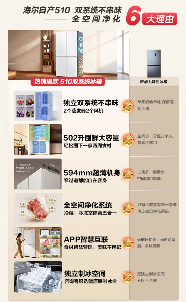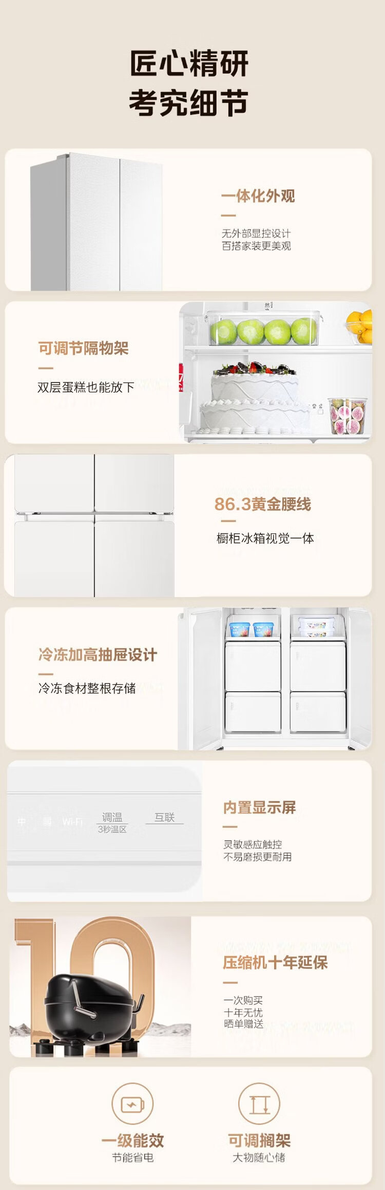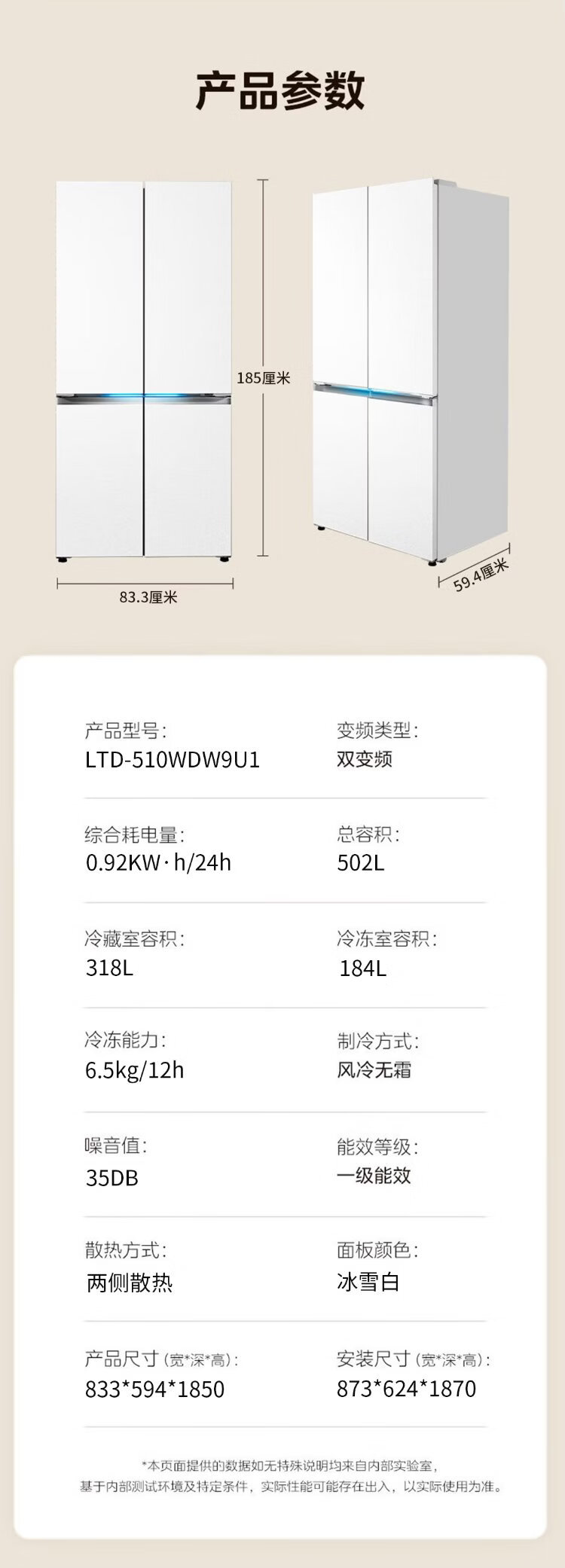 Haier Haier refrigerator produces a cross-shaped four-door dual-system dual-cycle air-cooled frost-free first-class energy efficiency state-subsidized ultra-thin inverter household large-capacity fresh-keeping refrigerator, ice and snow white 502 liters, dual systems without odor, full space purification