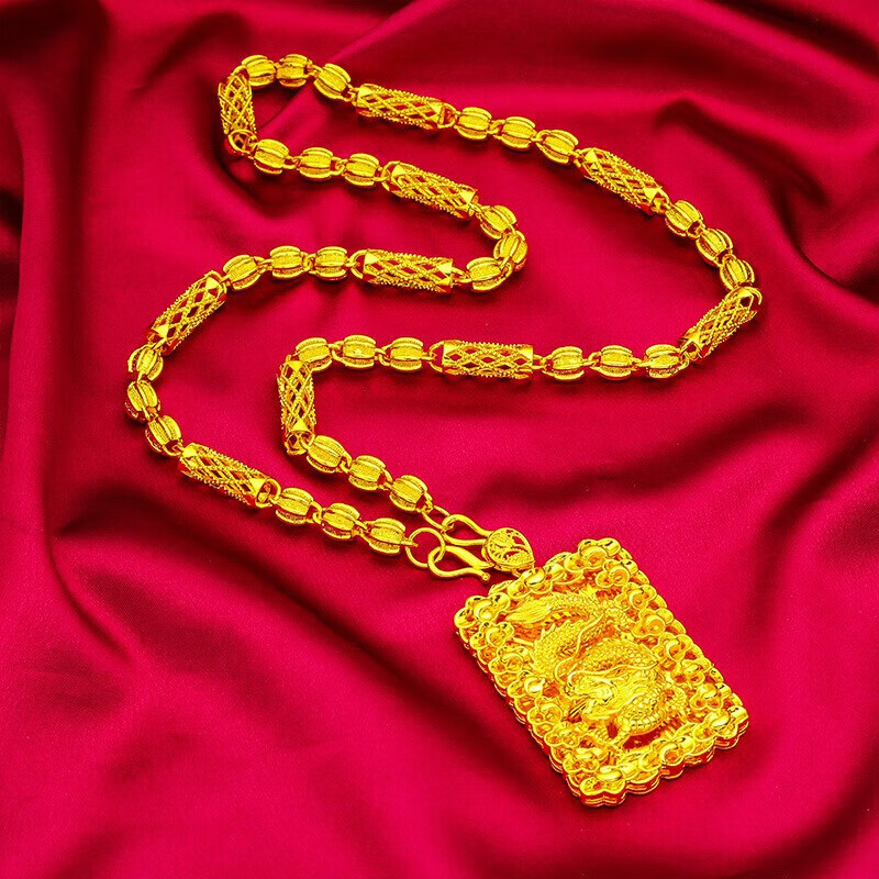 Reza Lao Phoenix 999 Bengal red gold jewelry gold dragon brand necklace ethnic style domineering imitation golden Guanyin Buddha pendant boutique dragon brand plus dragon head necklace Lao Fengxiang quality