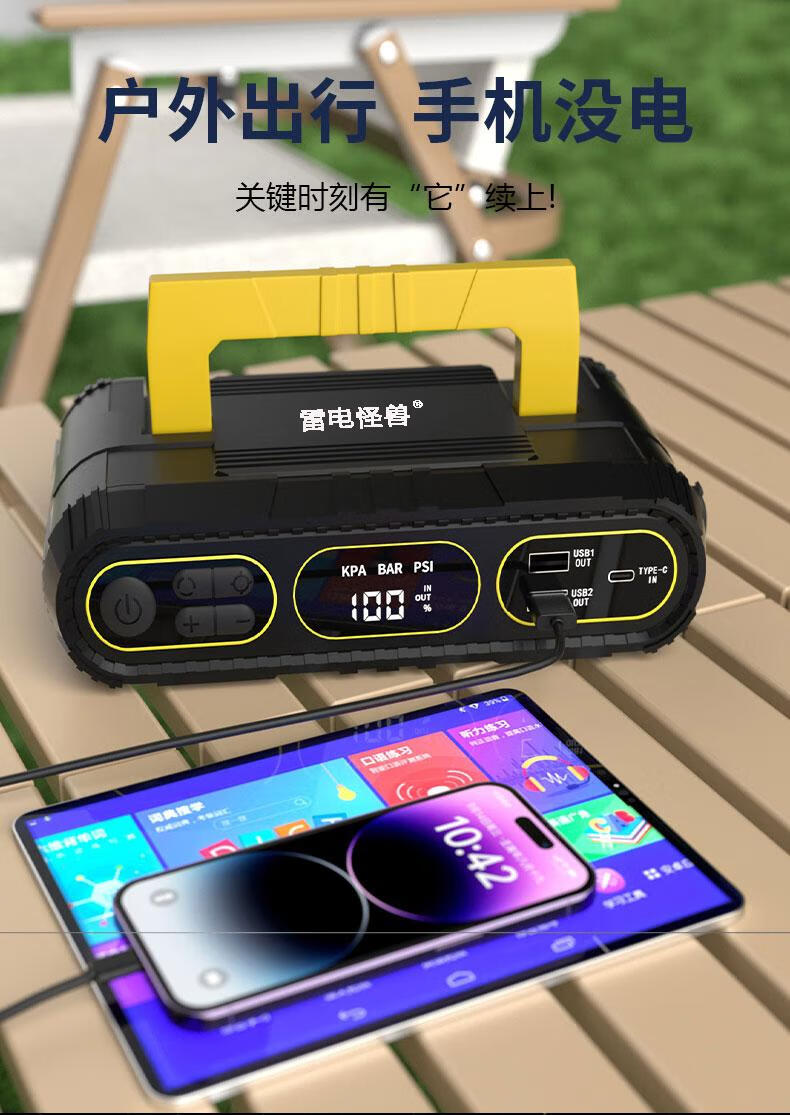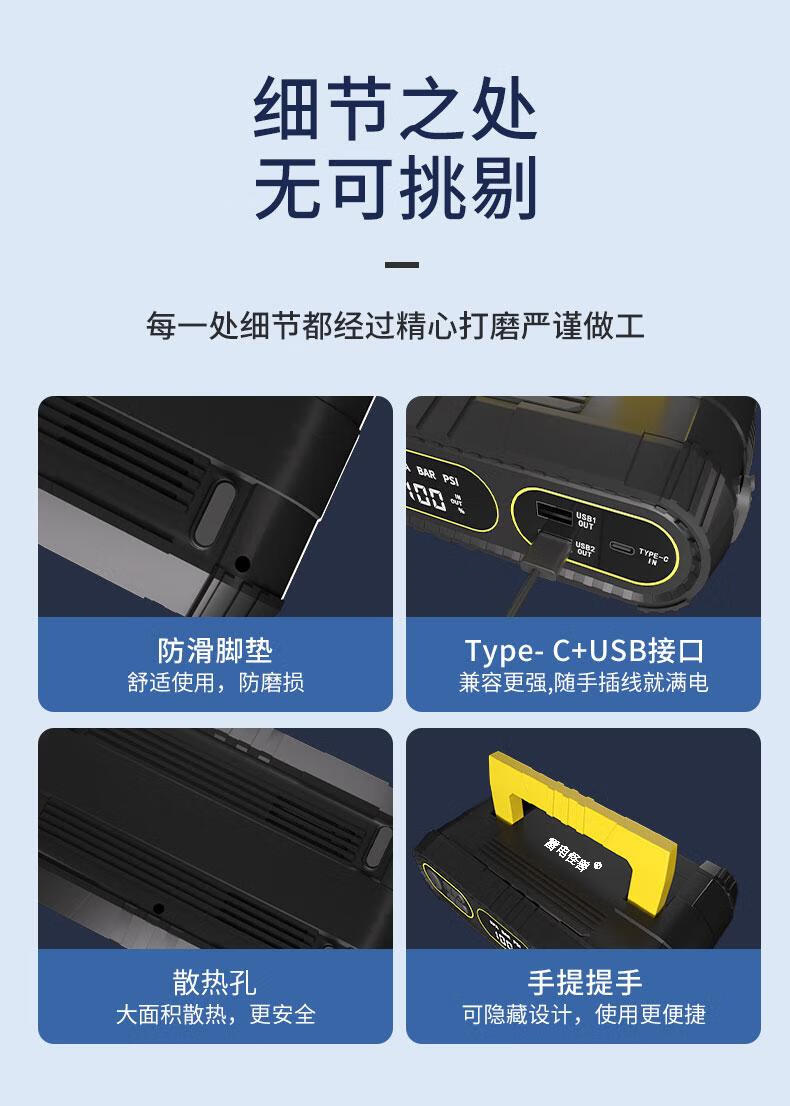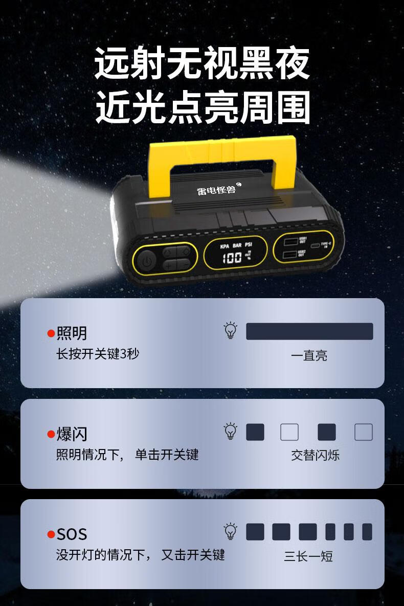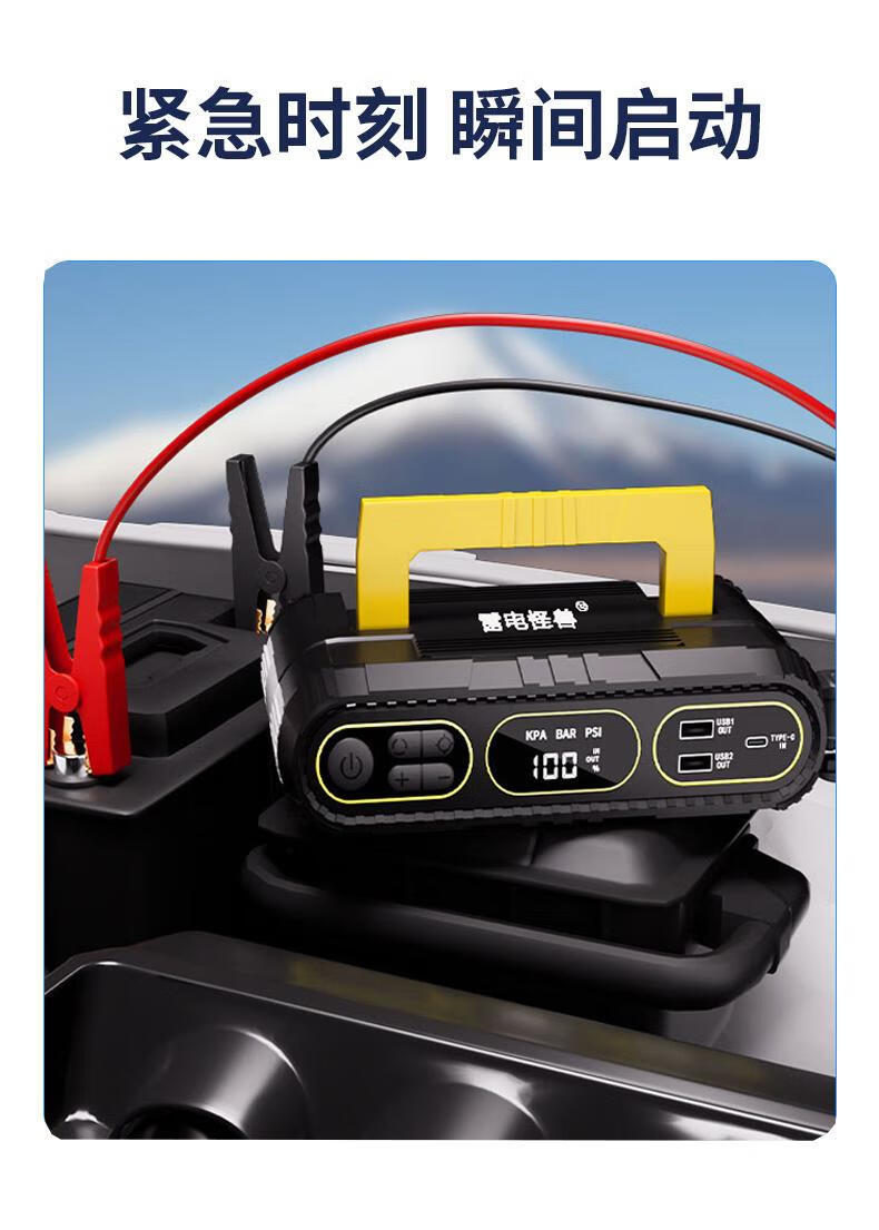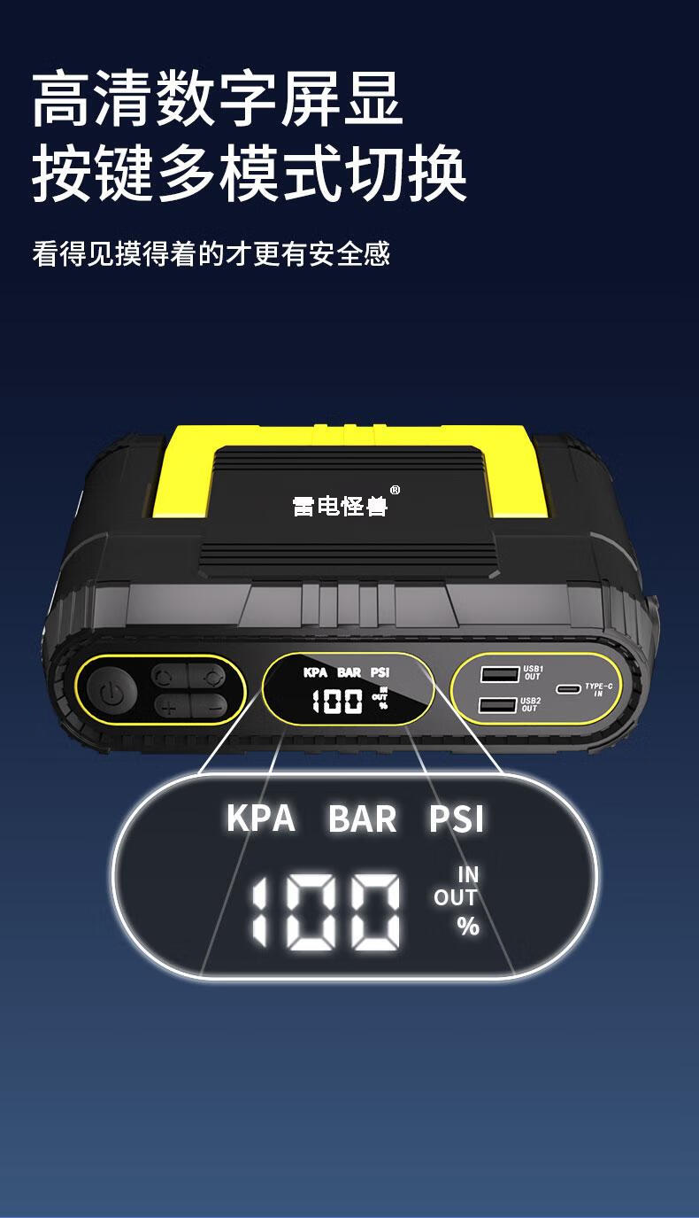 Thunder monster car emergency starting power supply with power bank car air pump all-in-one intelligent strong start tire pressure test T09 does not choose displacement + 6000 mAh