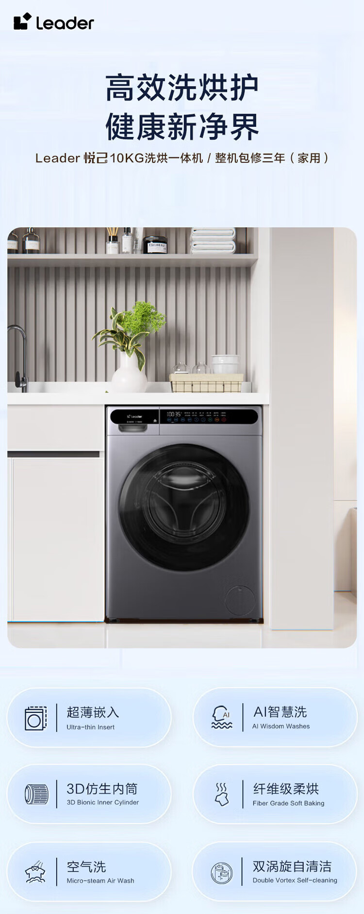 Haier 10/12kg drum washing machine fully automatic washing and drying integrated/single washing one-level energy efficiency variable frequency ultra-thin household large capacity sterilization mite commander trade-in appliance subsidy integrated washing and drying + 1.1 washing ratio + six-dimensional shock absorption single washing 10kg