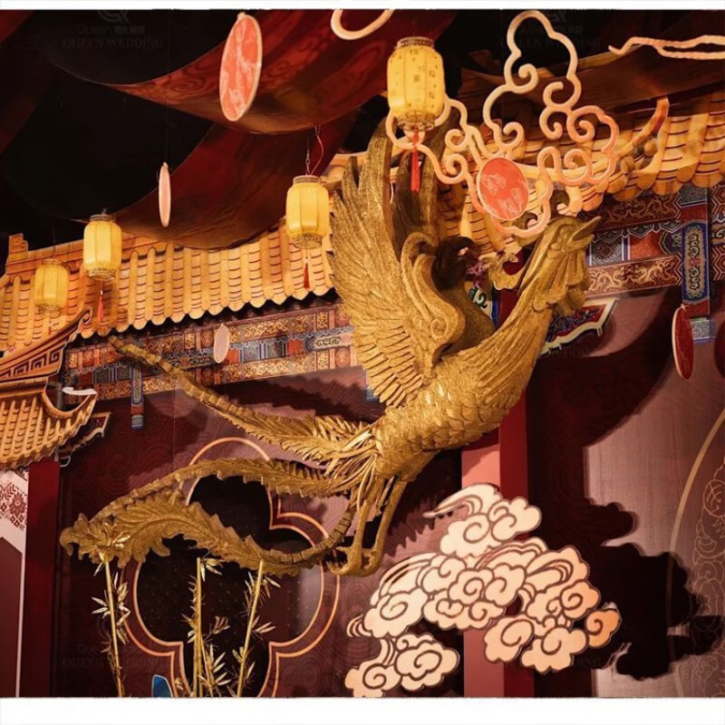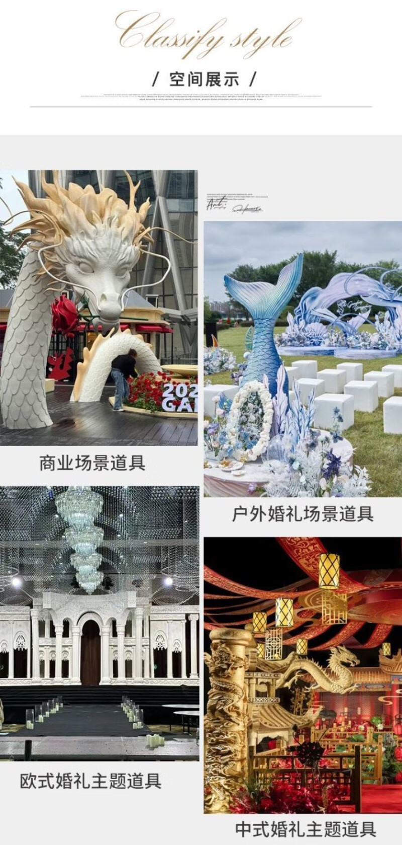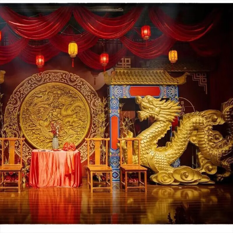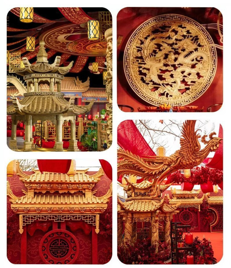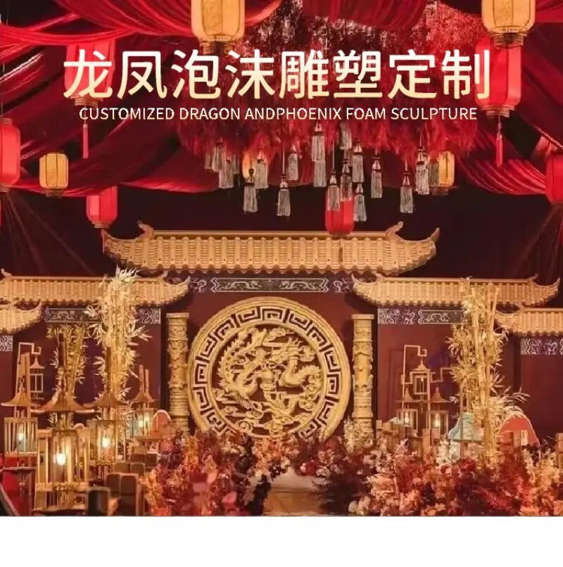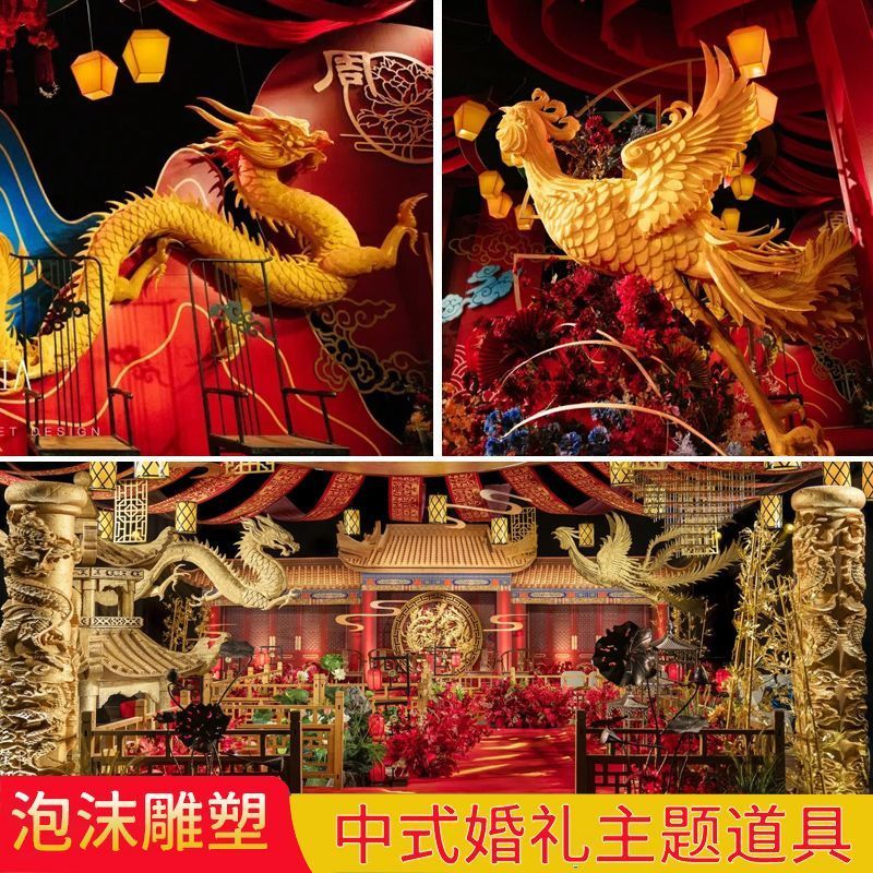 Chinese wedding ornaments foam sculpture wedding props dragon column dragon phoenix pan auspicious cloud pan dragon double dragon arch courtyard customization