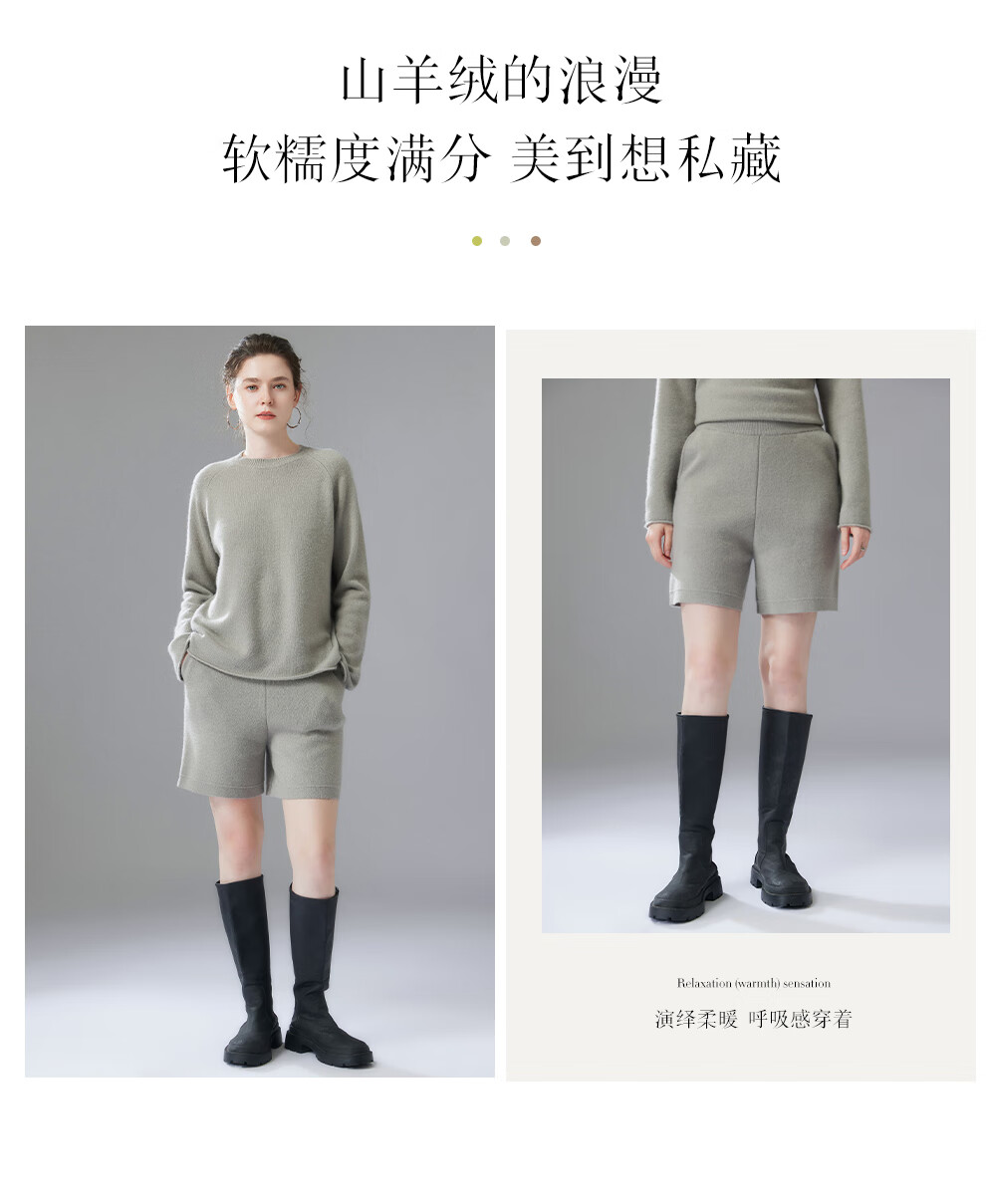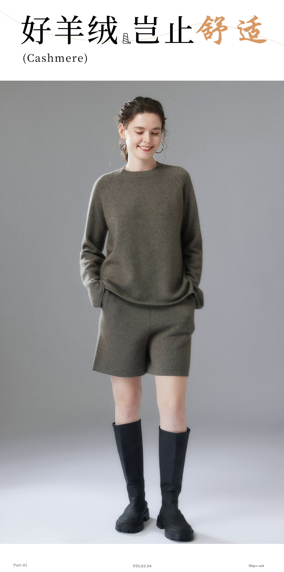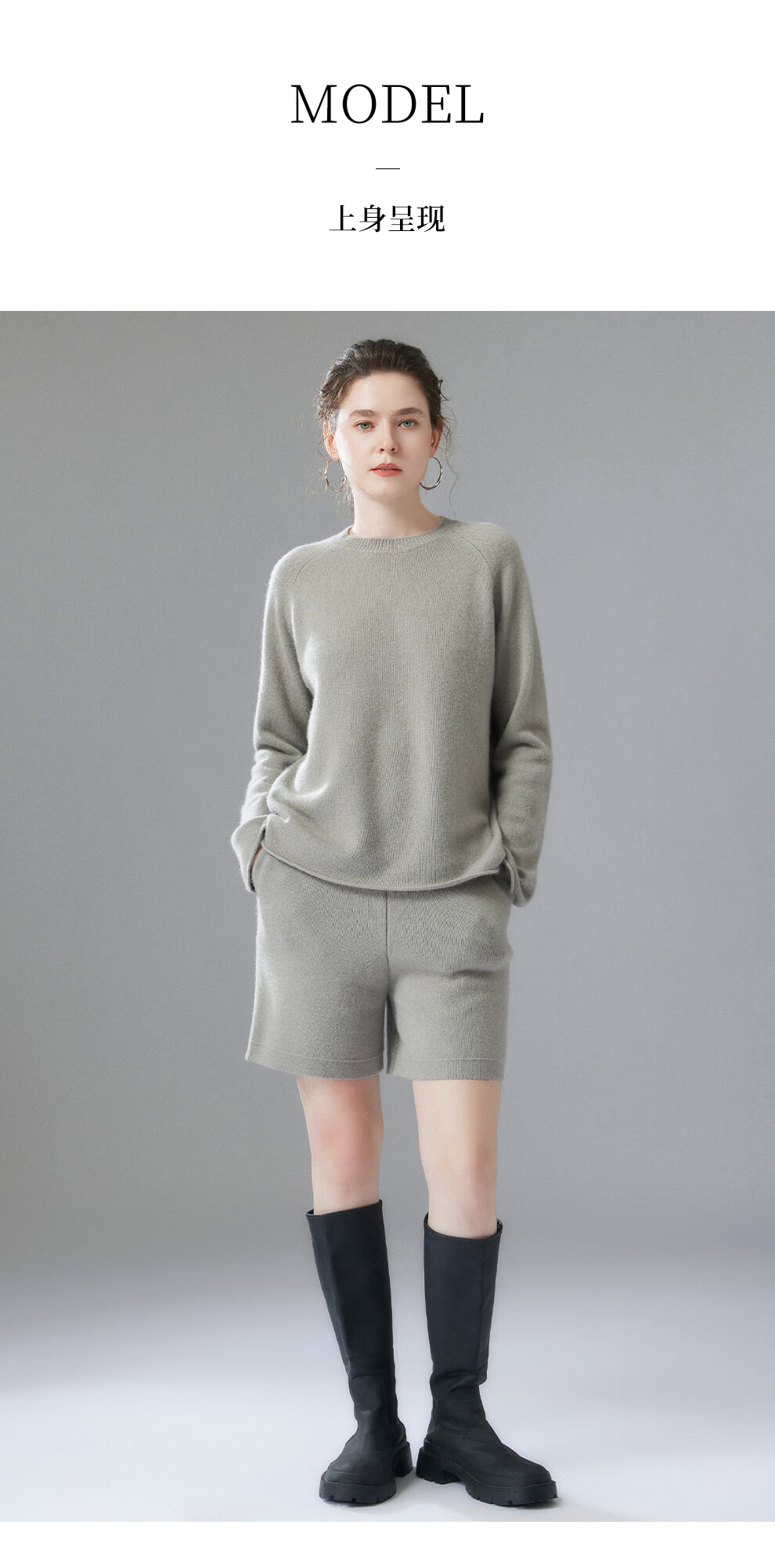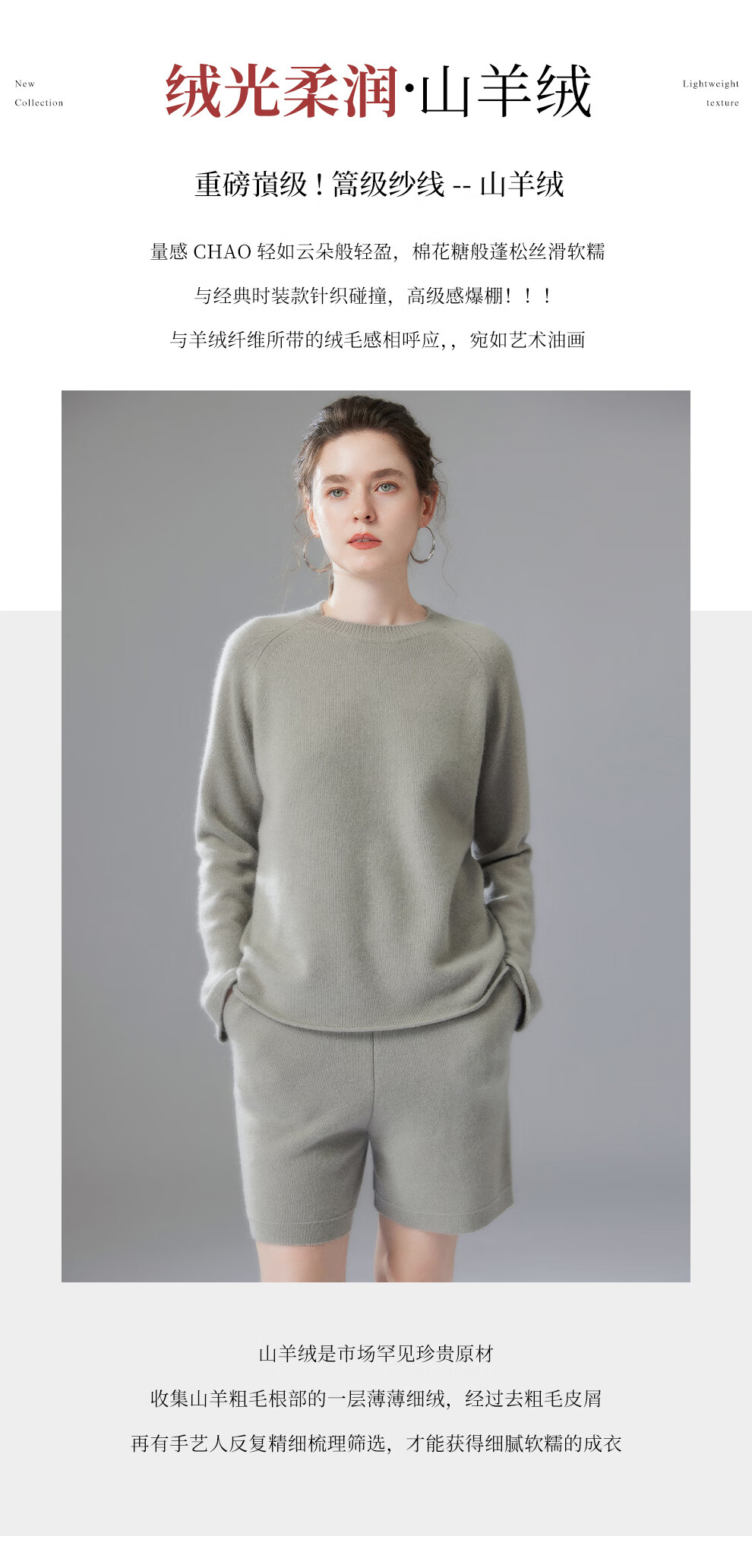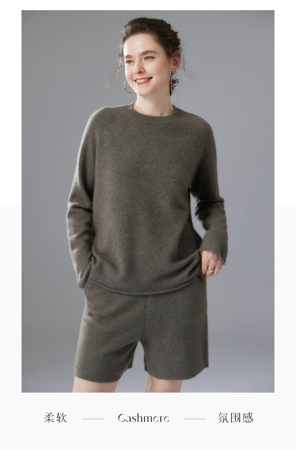 Mushi Cashmere Suit Women's Cashmere Sweater and Cashmere Shorts Women's Autumn and Winter New Knitted Suit Cashmere Sweater Thick AS551 Gray Green M