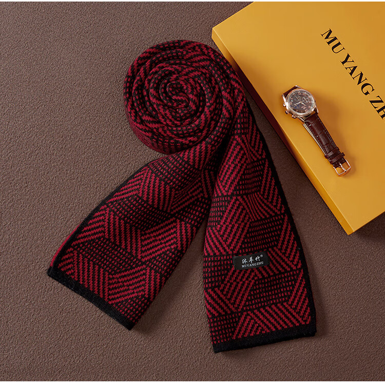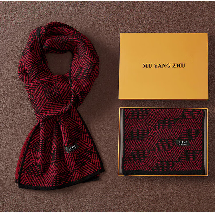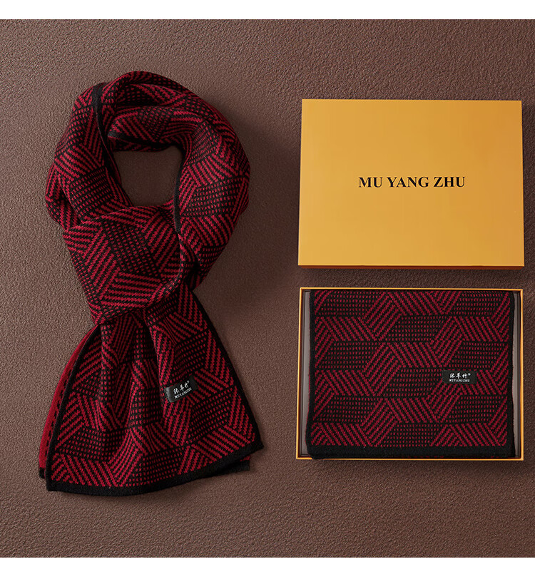 Hengyuanxiang 2025 new 100% pure cashmere scarf men's winter business high-end warm thickened double-sided scarf gift box burgundy