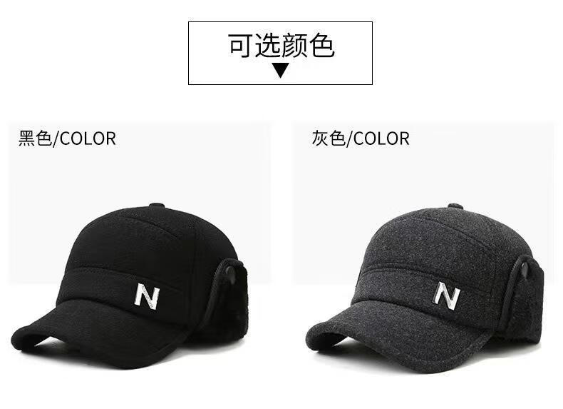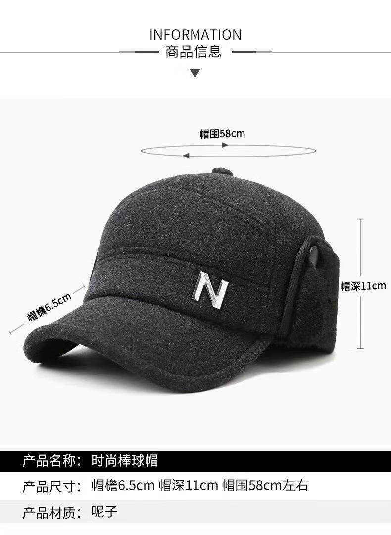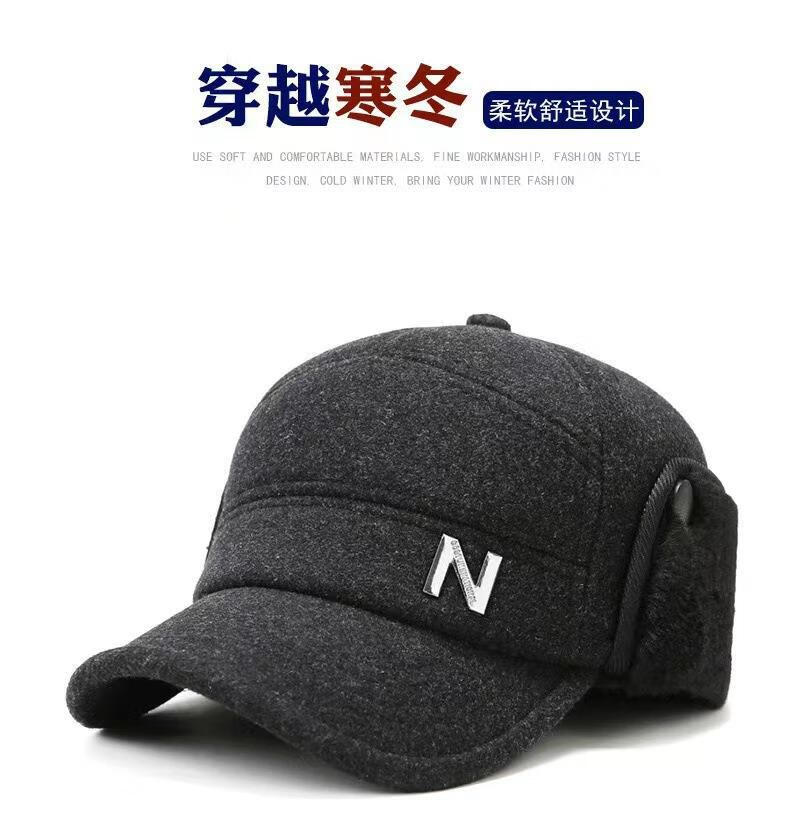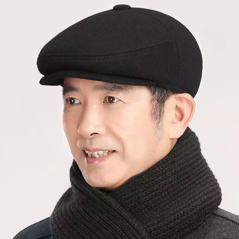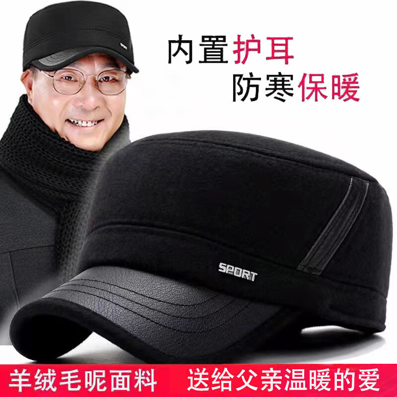 Zhen Niao middle-aged and elderly hats, men's peaked caps, winter elderly hats, elderly hats, thickened and warm ear-protecting dad hats for men, forward hats - woolen black
