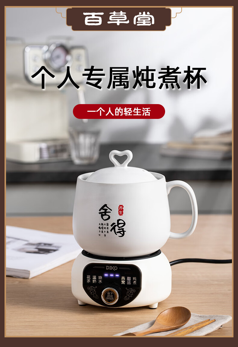 Baicaotang health pot ceramic split mini teapot office health electric stew cup flower tea maker small electric hot water cup hot milk artifact one person cooking porridge kettle health cup white 1L ceramic cup