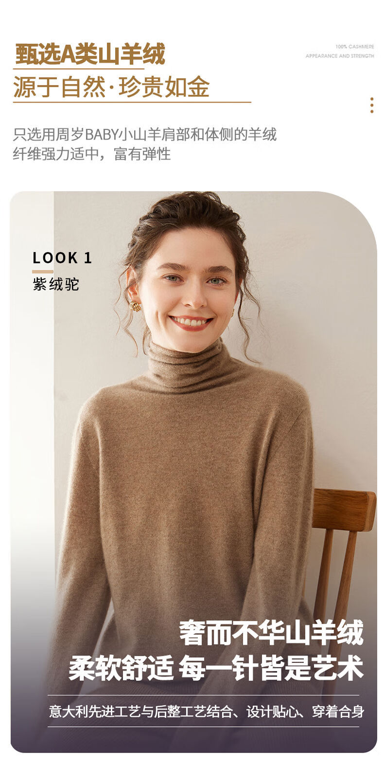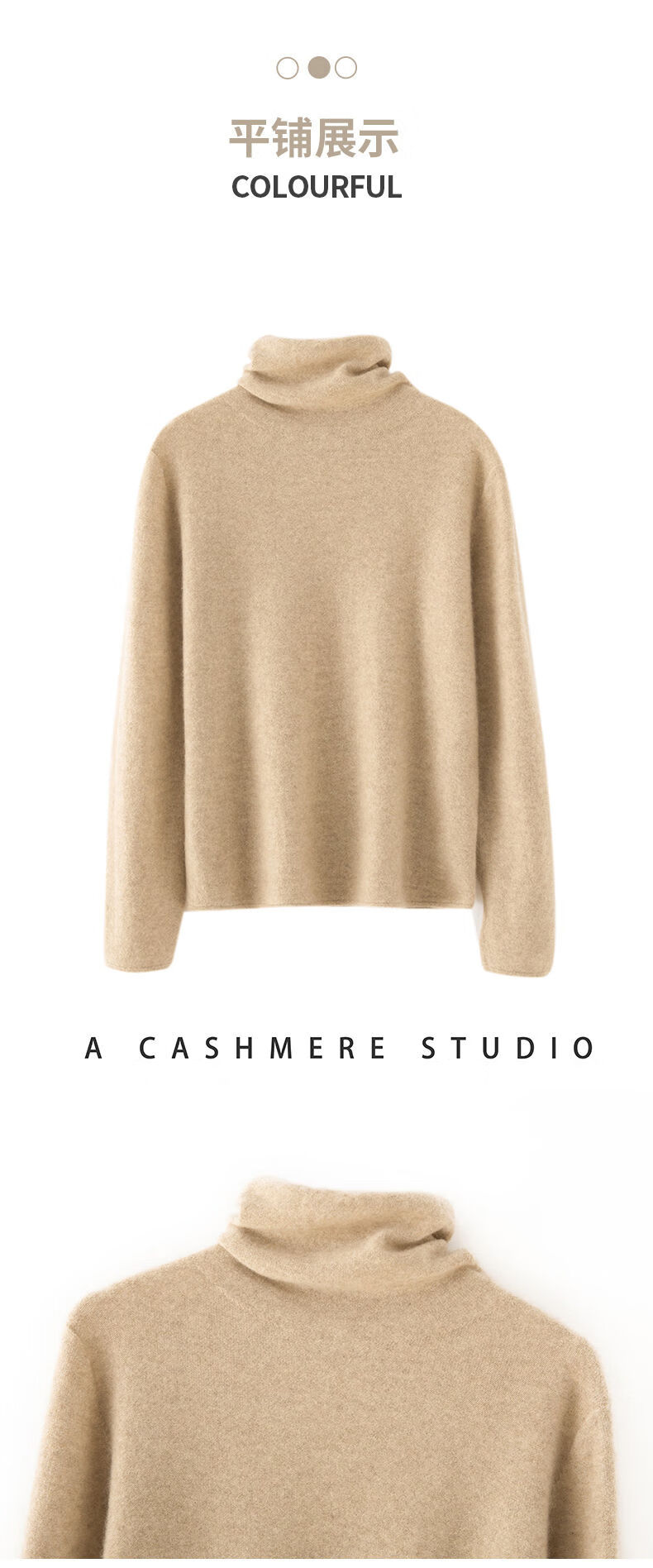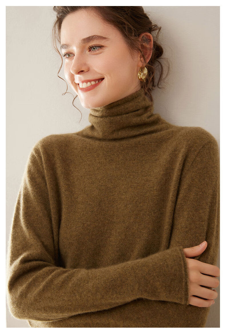 SENLIYA international light luxury high-end cashmere sweater new seamless one-piece cashmere sweater women's pile collar sweater loose high collar knitted coffee brown S