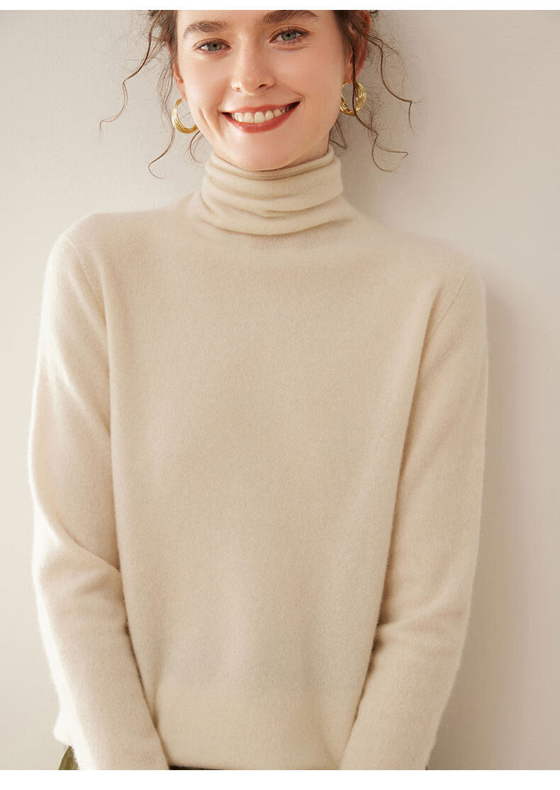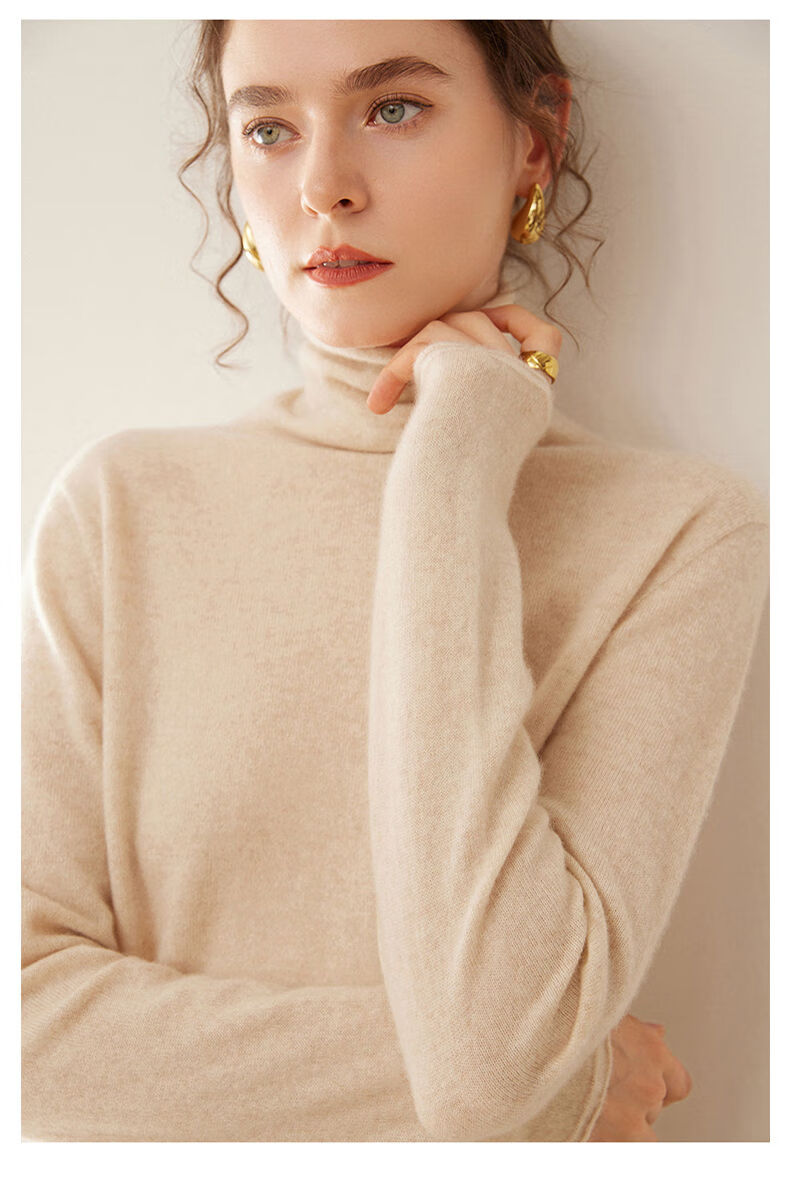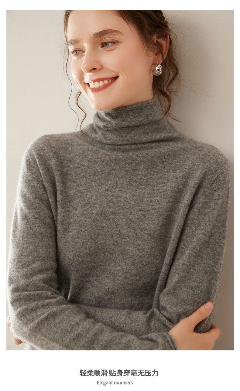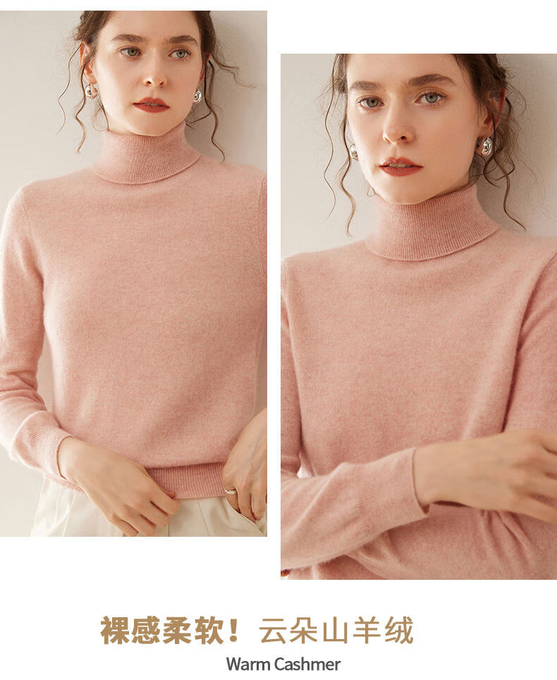 SENLIYA international light luxury high-end cashmere sweater new seamless one-piece cashmere sweater women's pile collar sweater loose high collar knitted coffee brown S