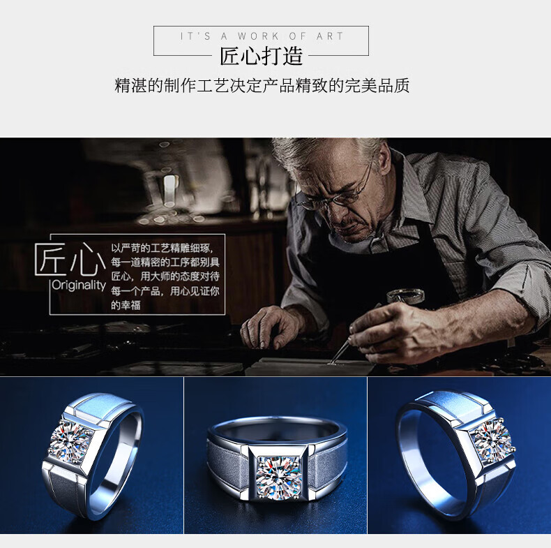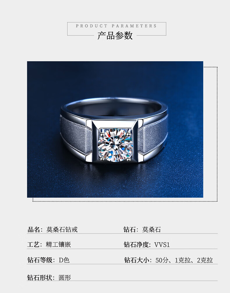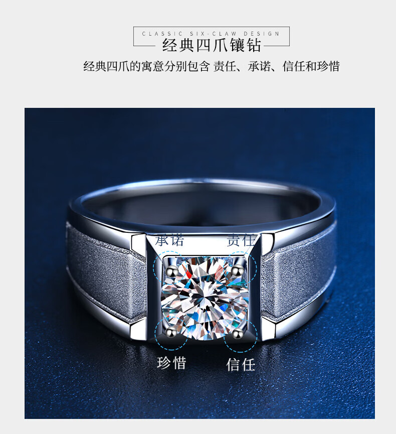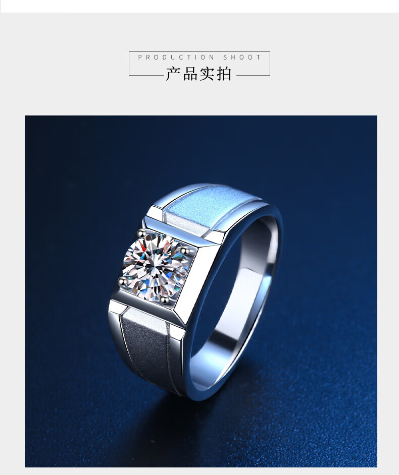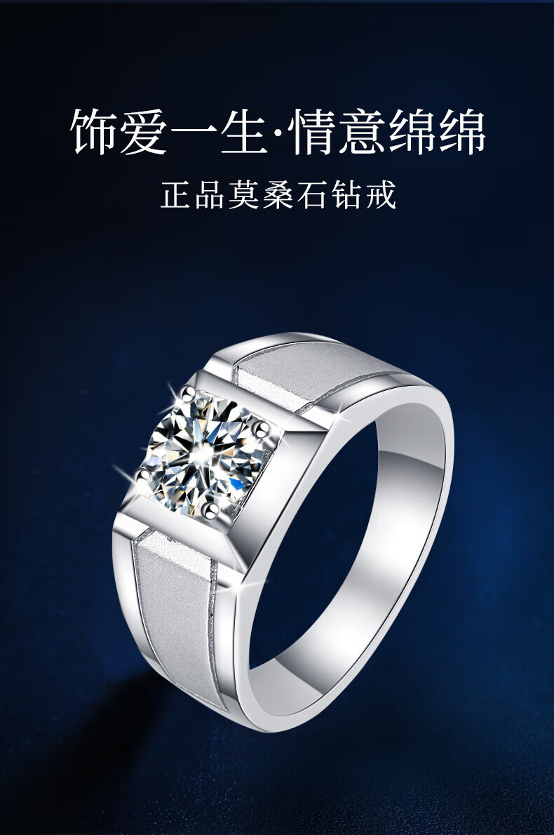 Pt950 platinum D color moissanite ring one carat domineering men's ring frosted Valentine's Day gift for boyfriend Frosted men's ring main diamond 50 points + high-end gift box - light luxury model live mouth size adjustable