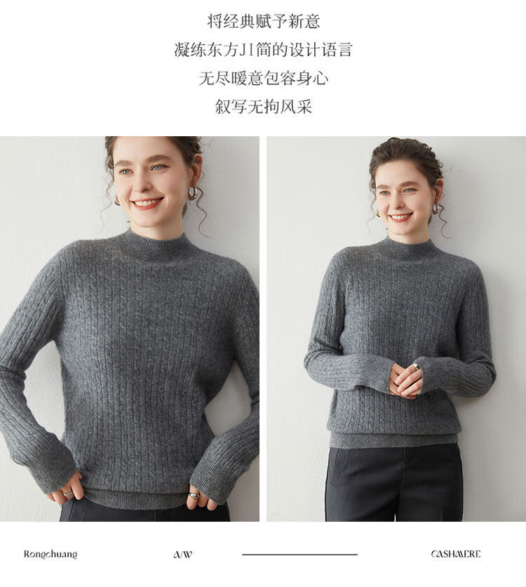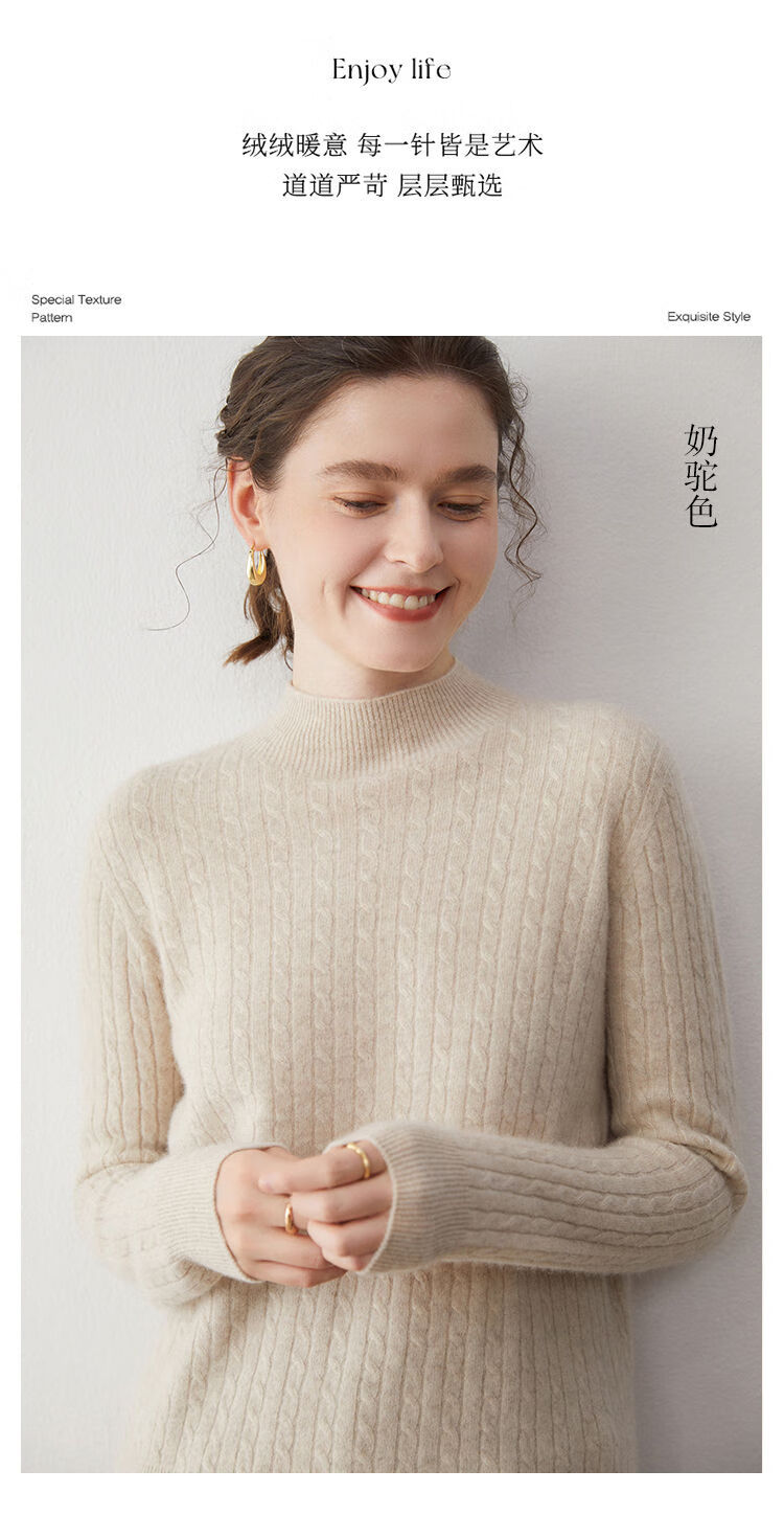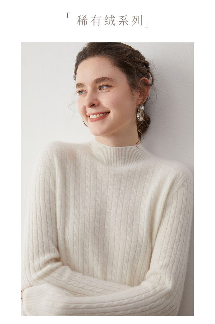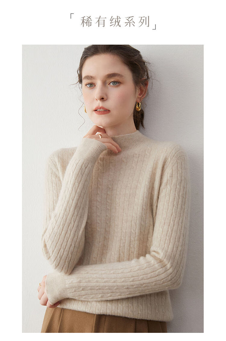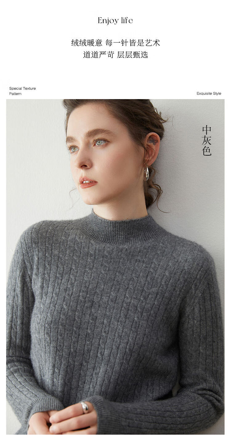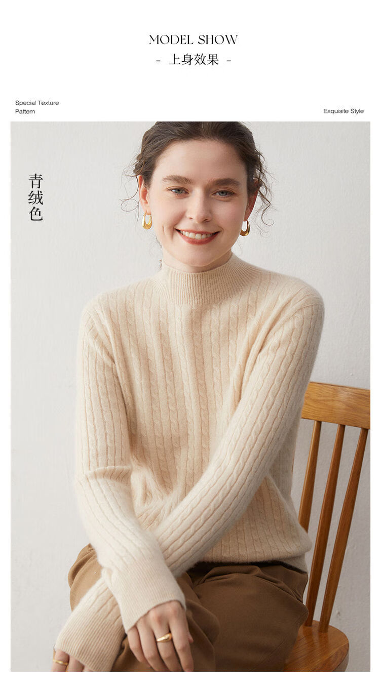 SENLIYA international light luxury high-end cashmere sweater soft and waxy half turtleneck cashmere sweater women's sweater cable pullover loose knitted blue velvet color S