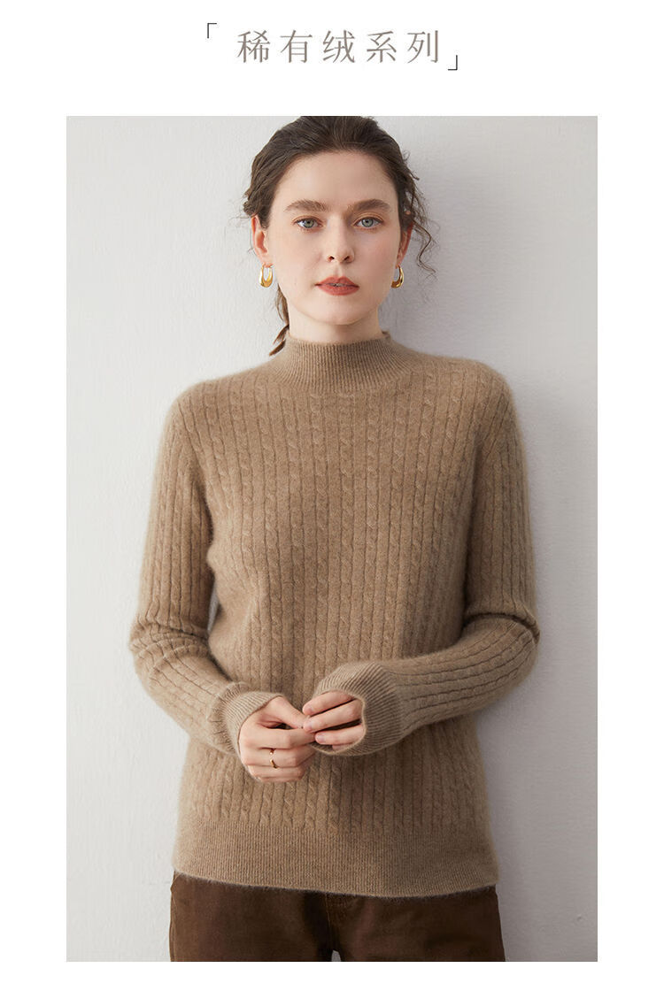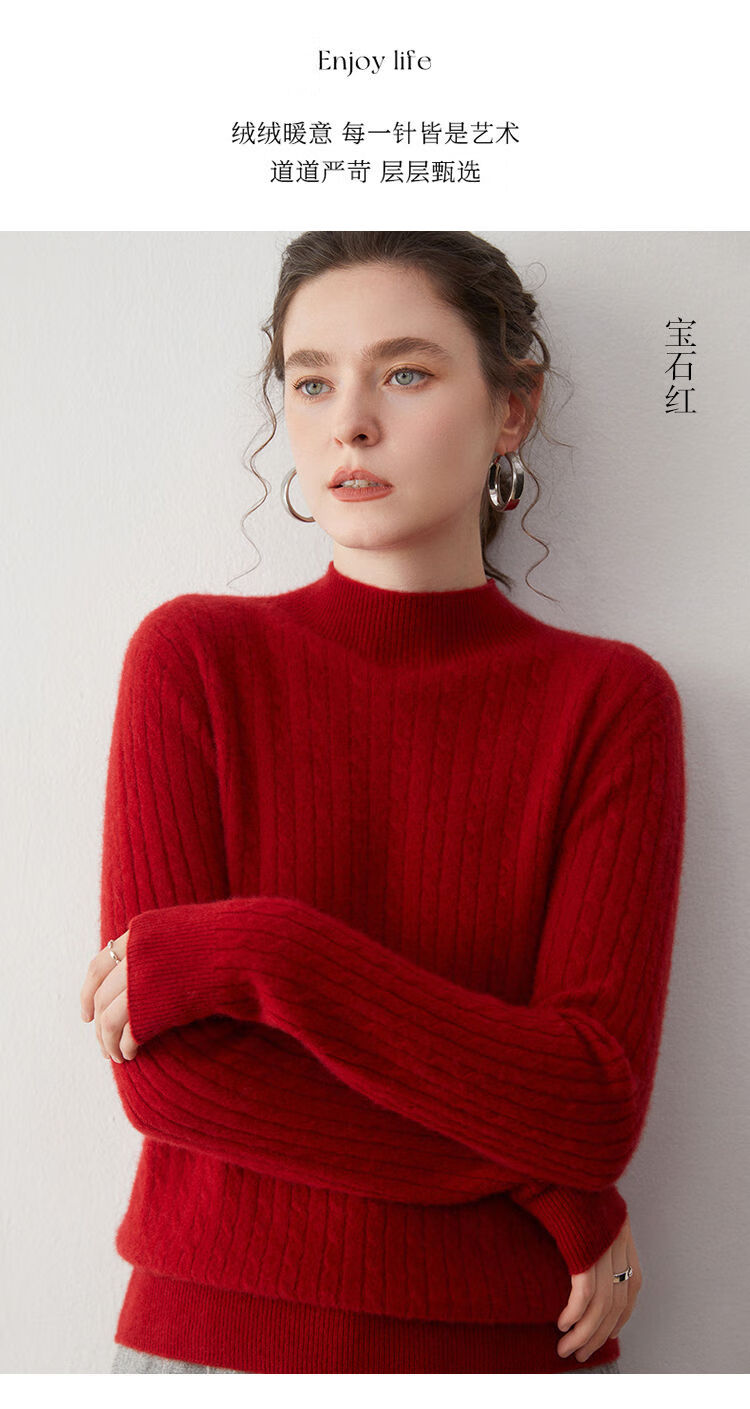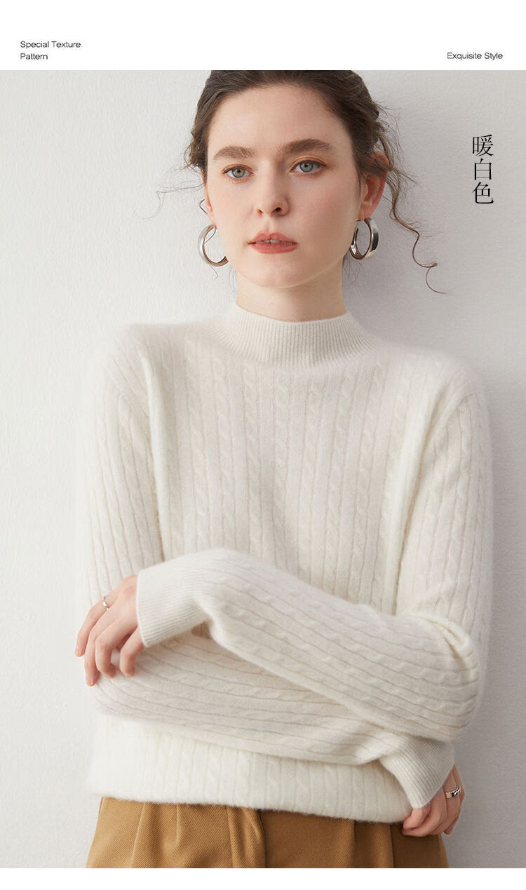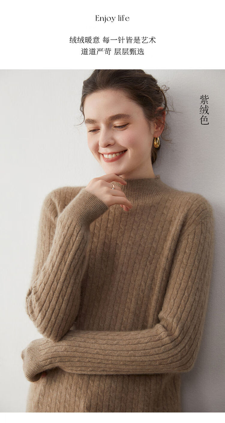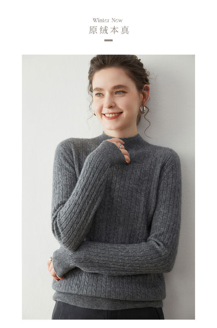 SENLIYA international light luxury high-end cashmere sweater soft and waxy half turtleneck cashmere sweater women's sweater cable pullover loose knitted blue velvet color S