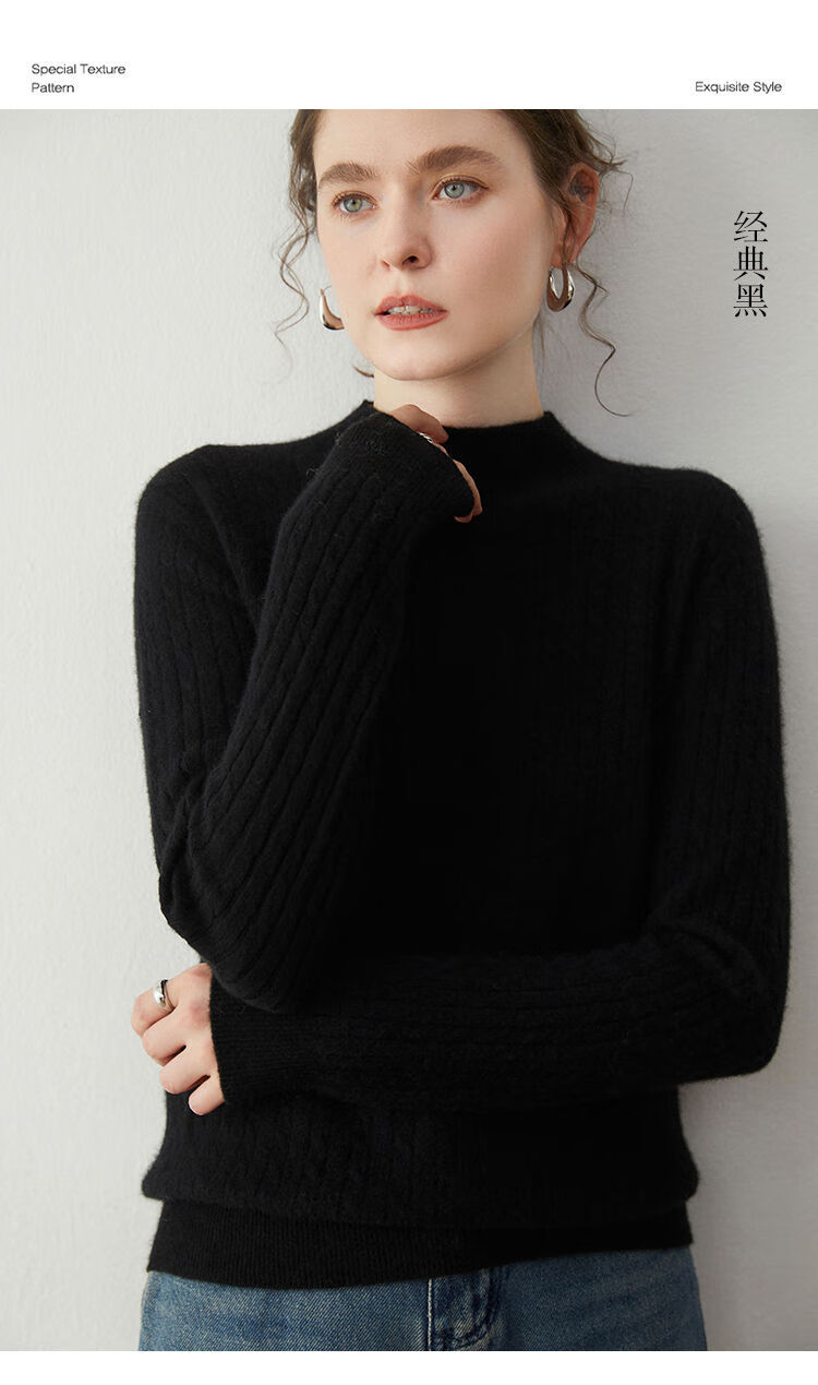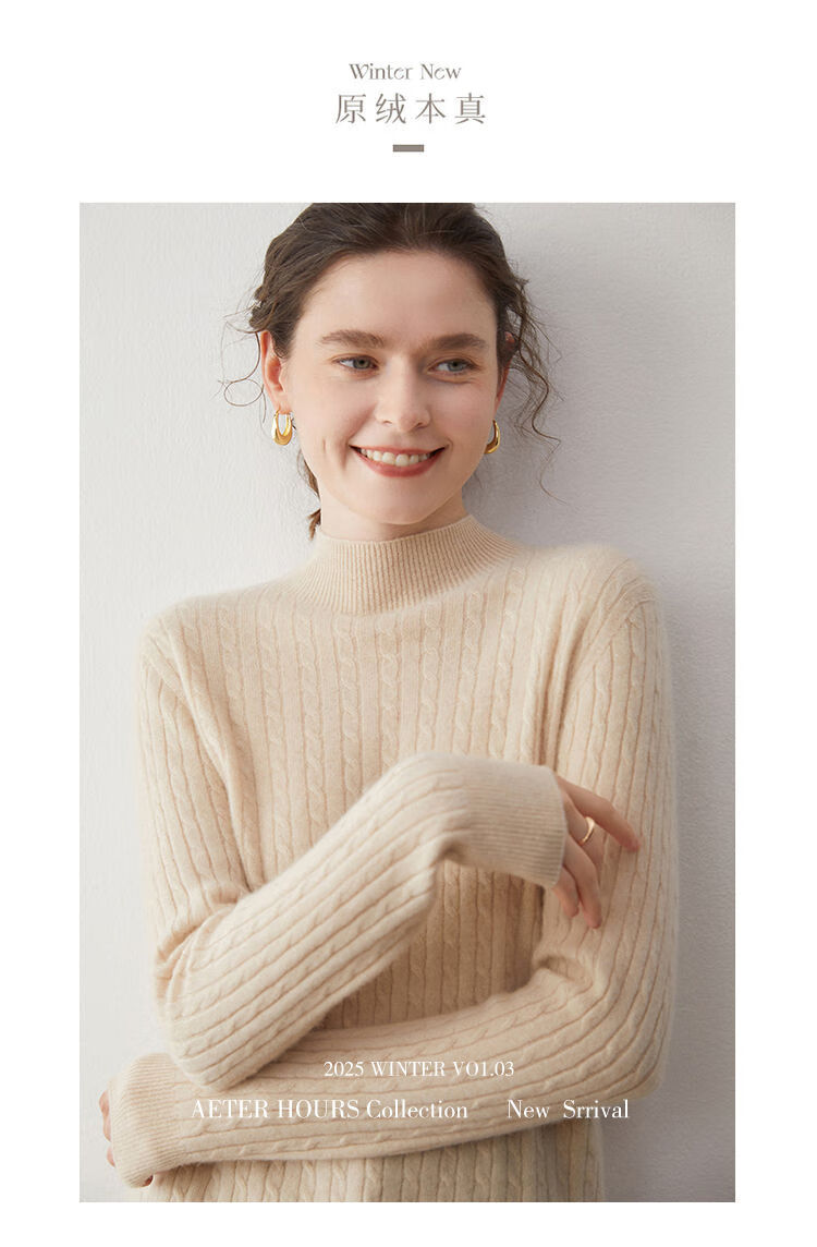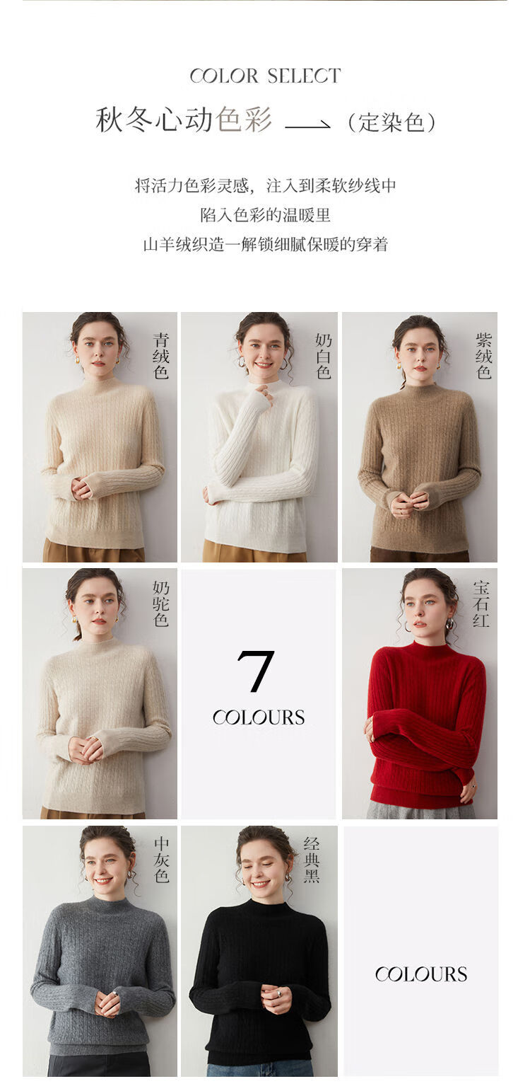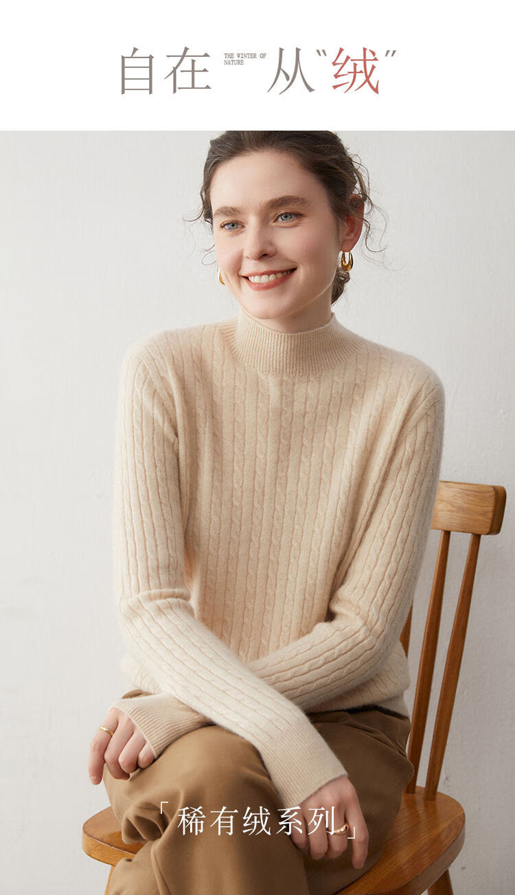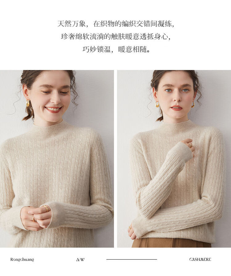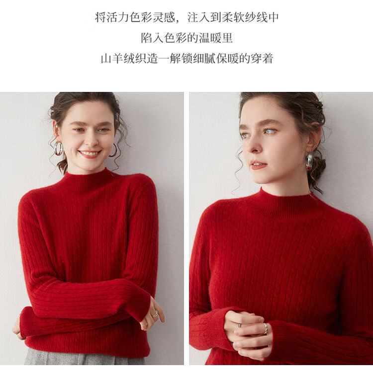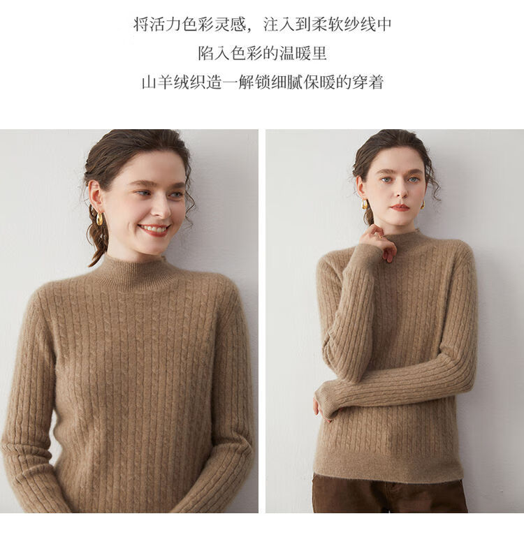 SENLIYA international light luxury high-end cashmere sweater soft and waxy half turtleneck cashmere sweater women's sweater cable pullover loose knitted blue velvet color S