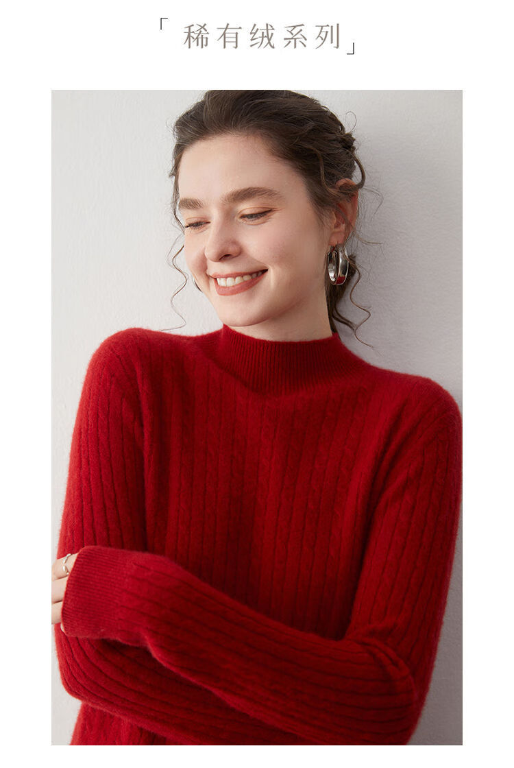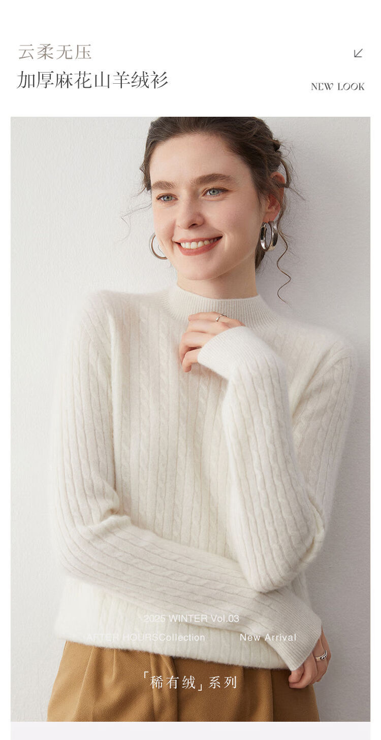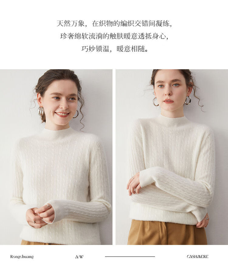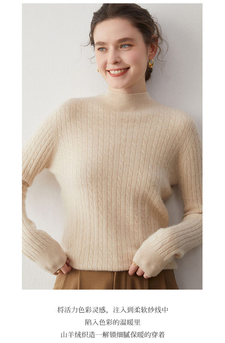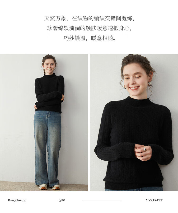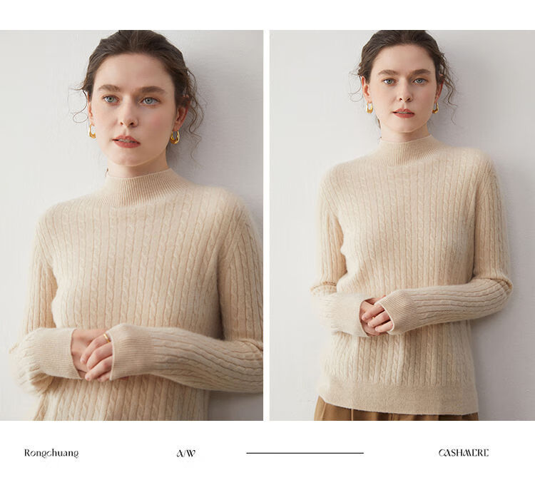 SENLIYA international light luxury high-end cashmere sweater soft and waxy half turtleneck cashmere sweater women's sweater cable pullover loose knitted blue velvet color S