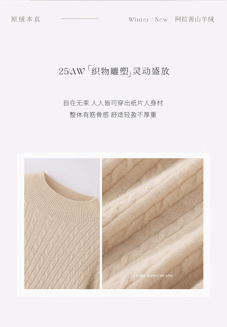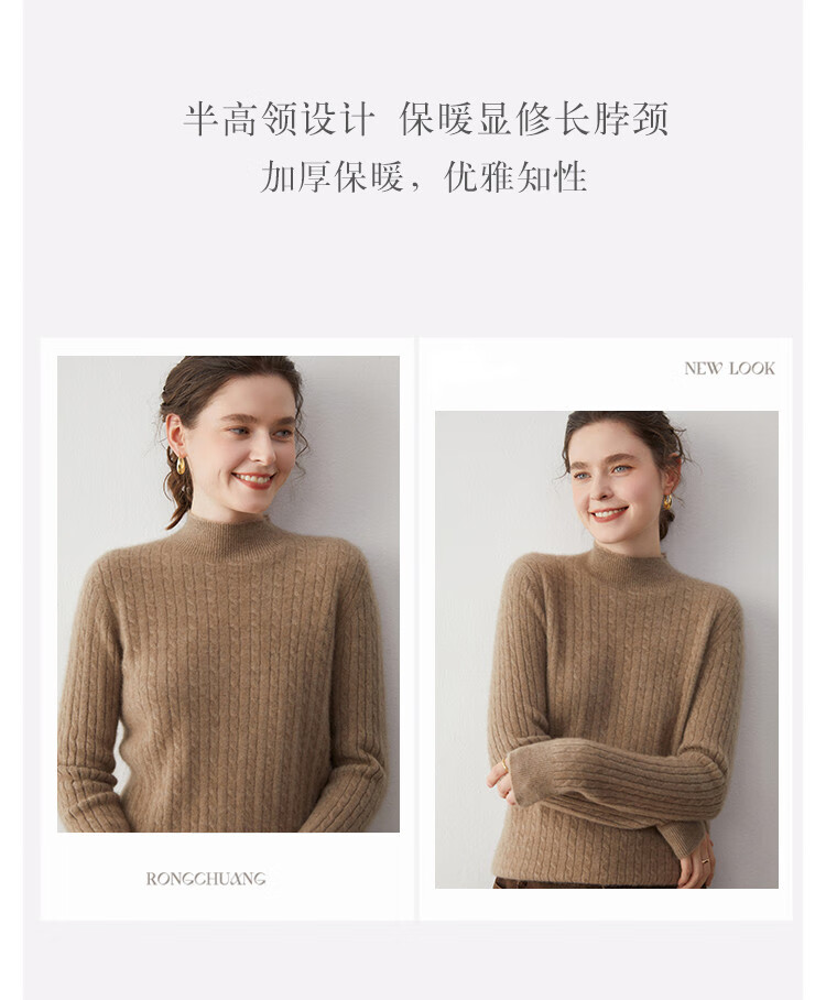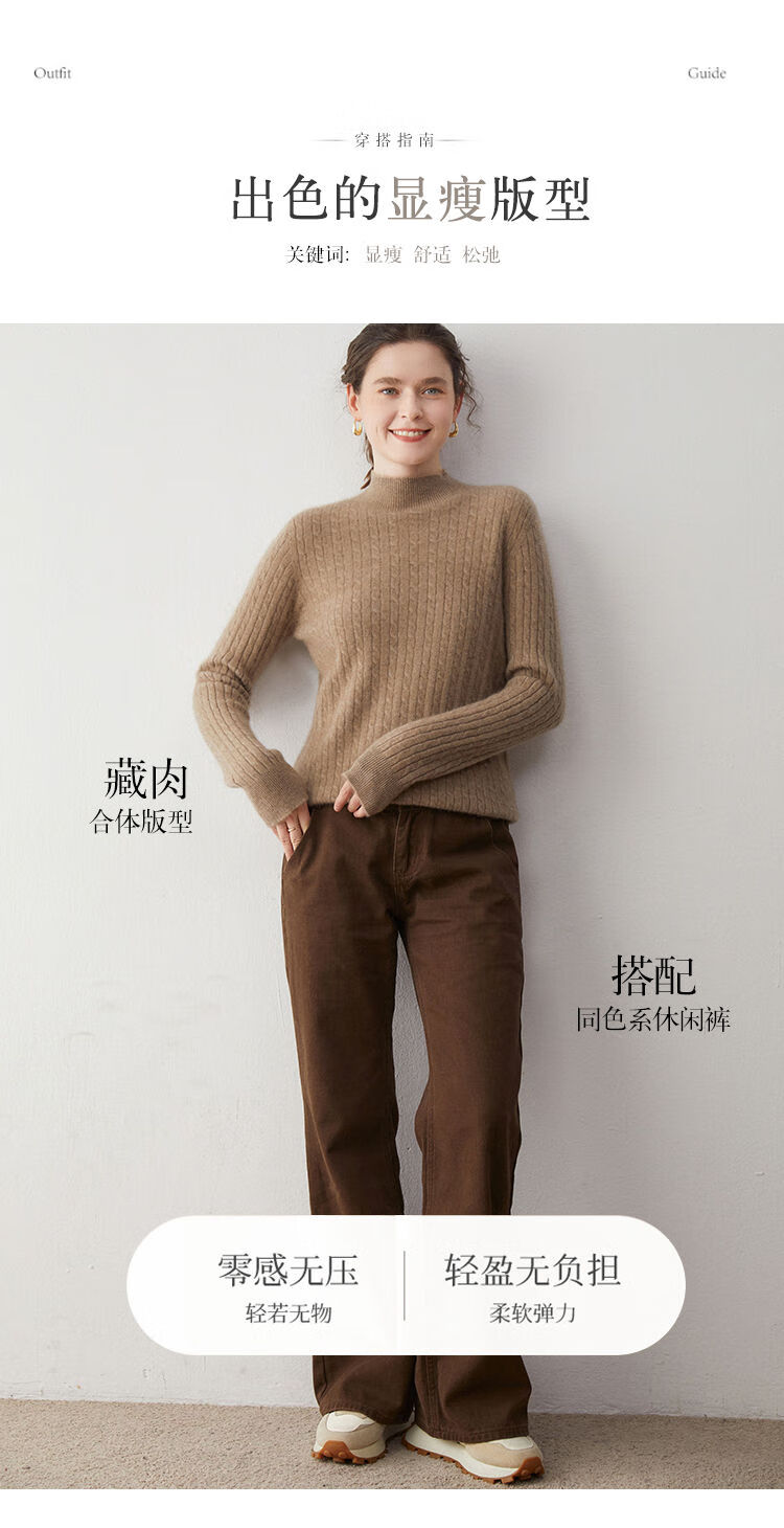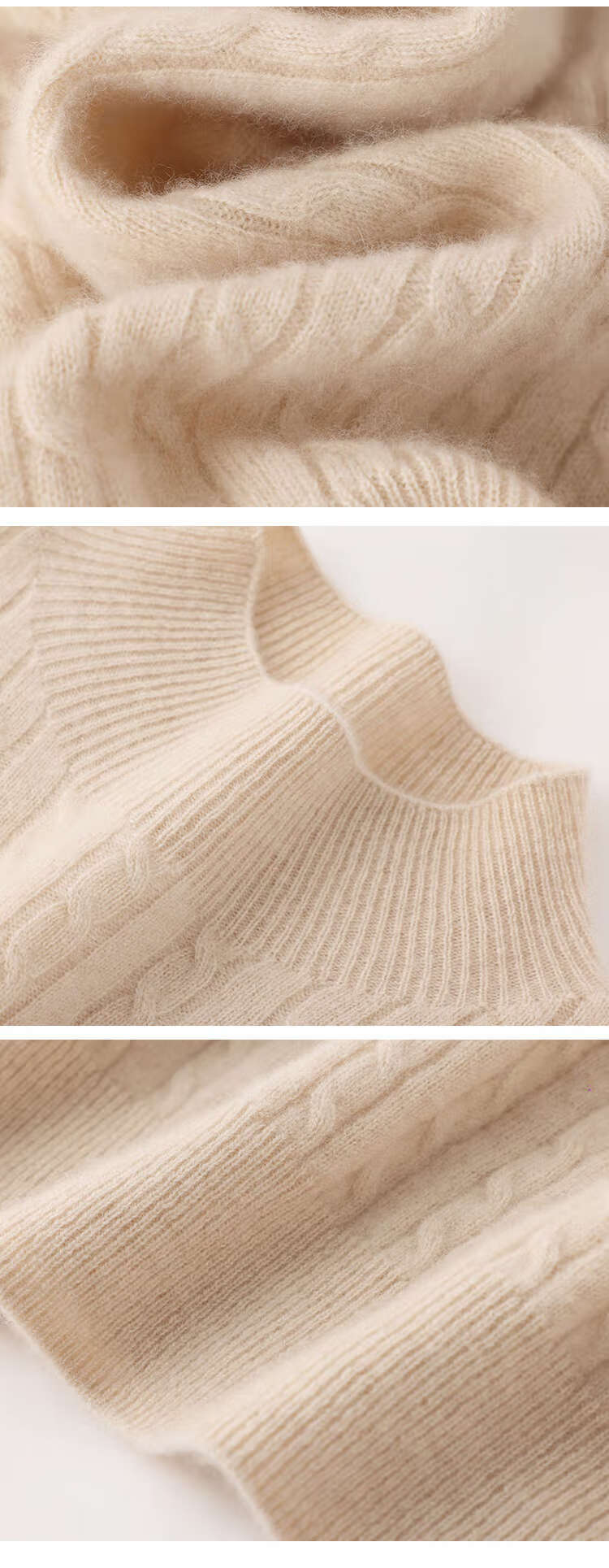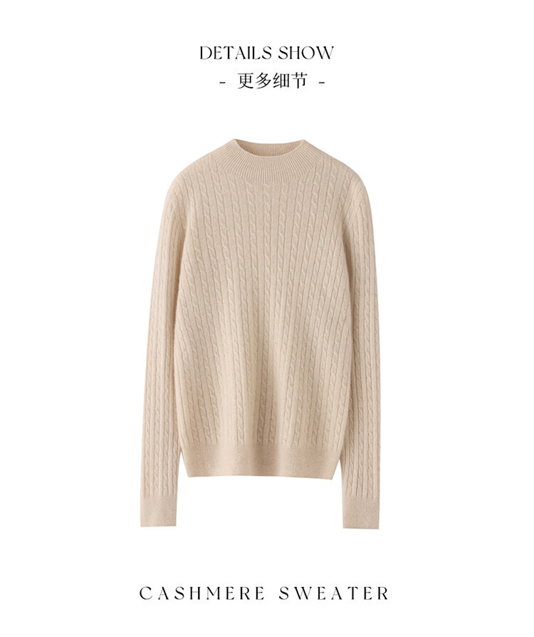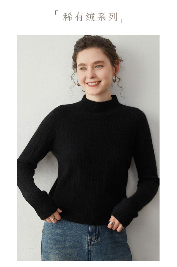 SENLIYA international light luxury high-end cashmere sweater soft and waxy half turtleneck cashmere sweater women's sweater cable pullover loose knitted blue velvet color S