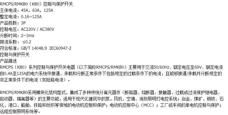 KB0 control and protection switch CPS/KB0-45 45A 63A 125AC type basic isolation