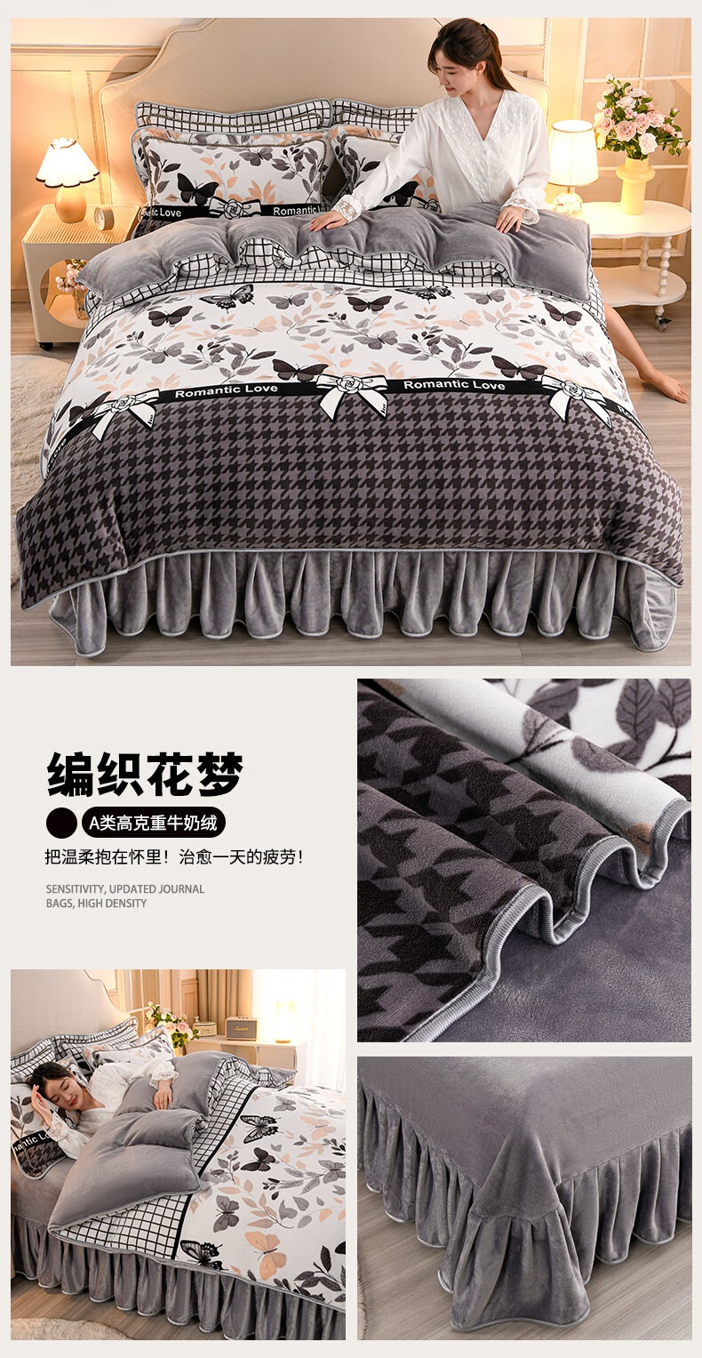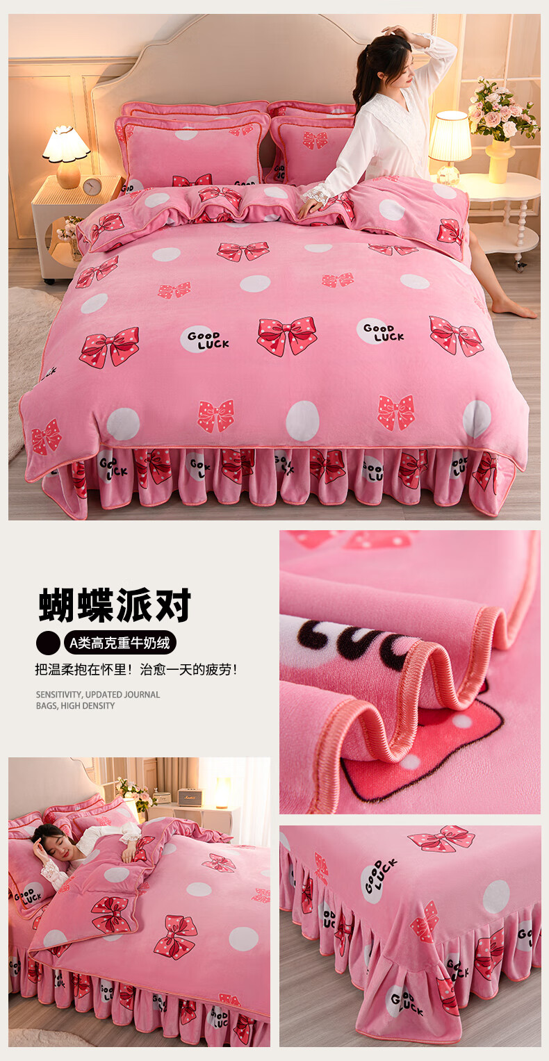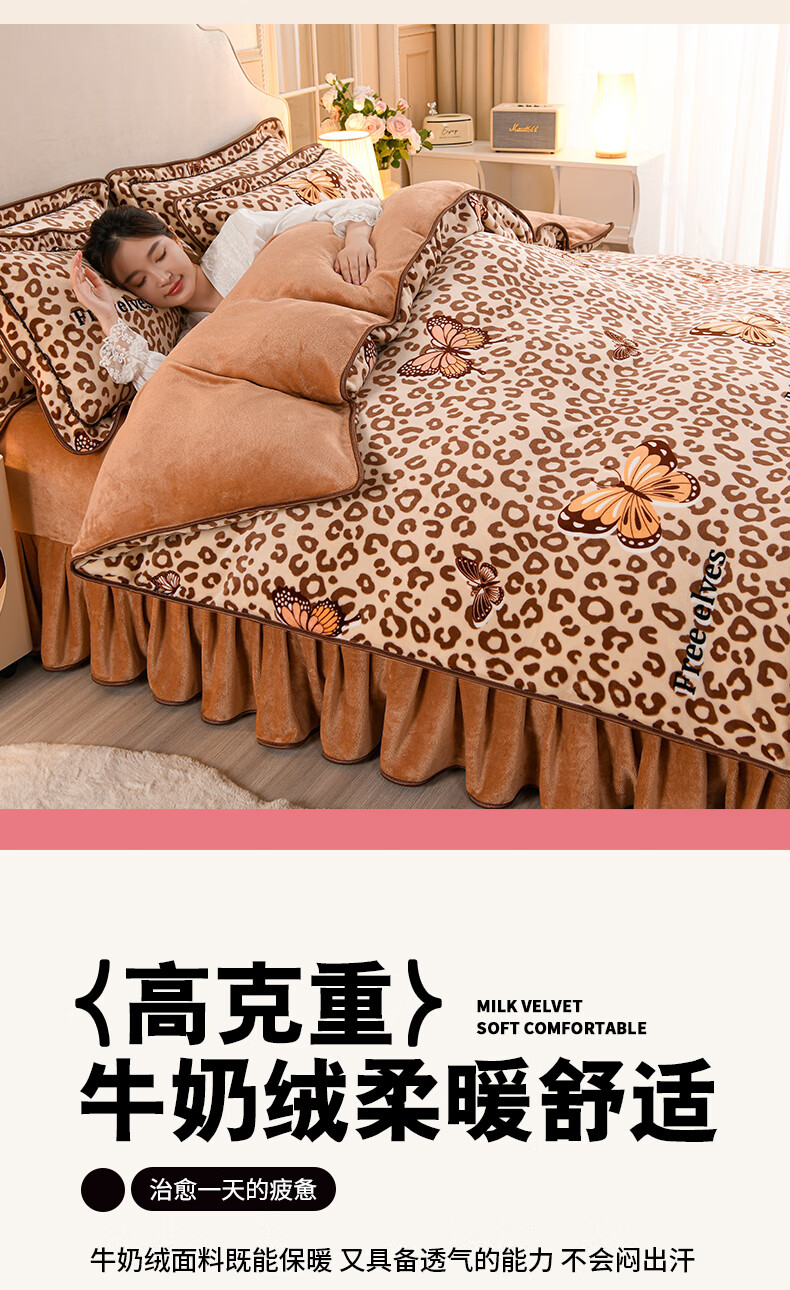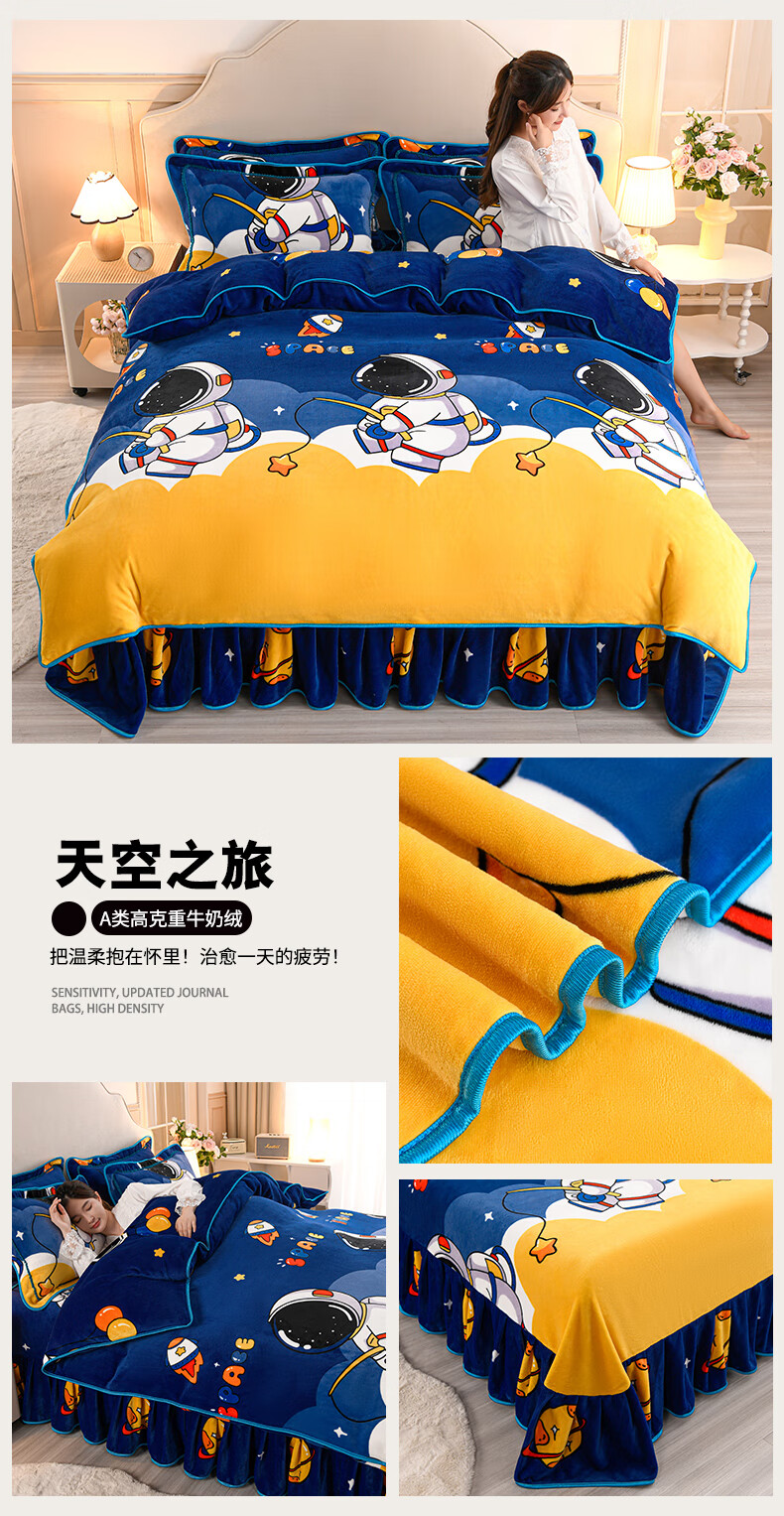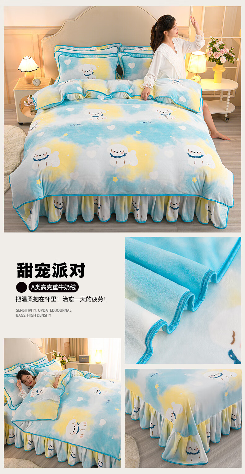 High weight milk velvet four-piece set in winter, thickened and warm double-sided velvet bed sheets and quilt covers, anti-static and lint-free KT Bear 1.8m bed sheet style four-piece set - quilt cover 200*230cm