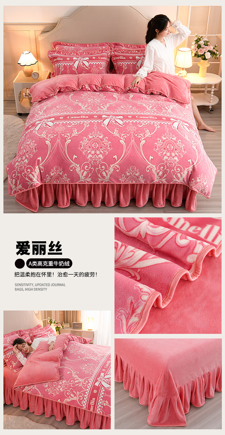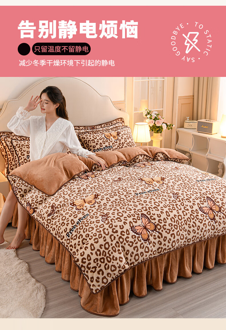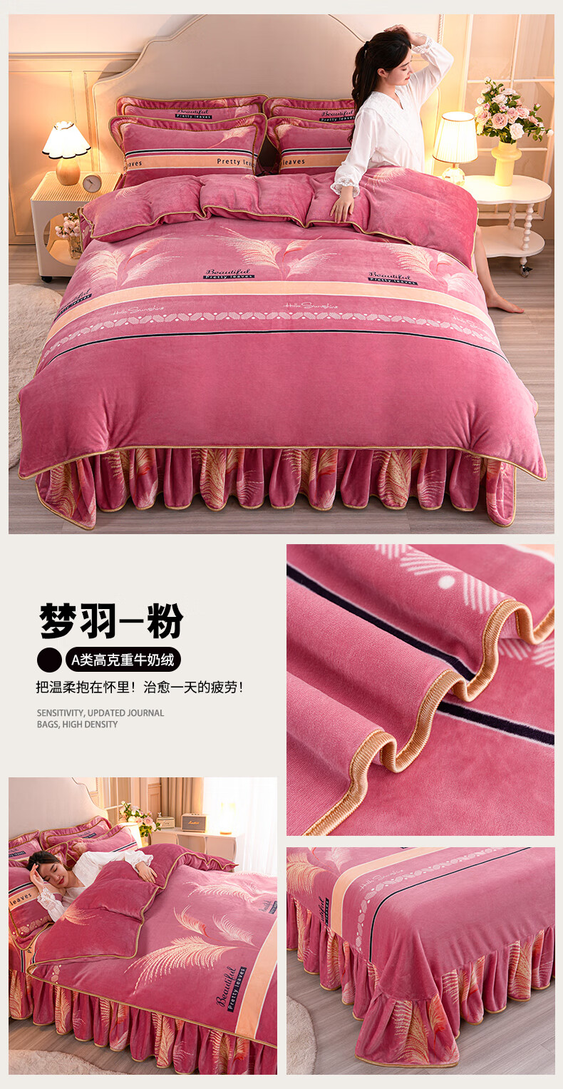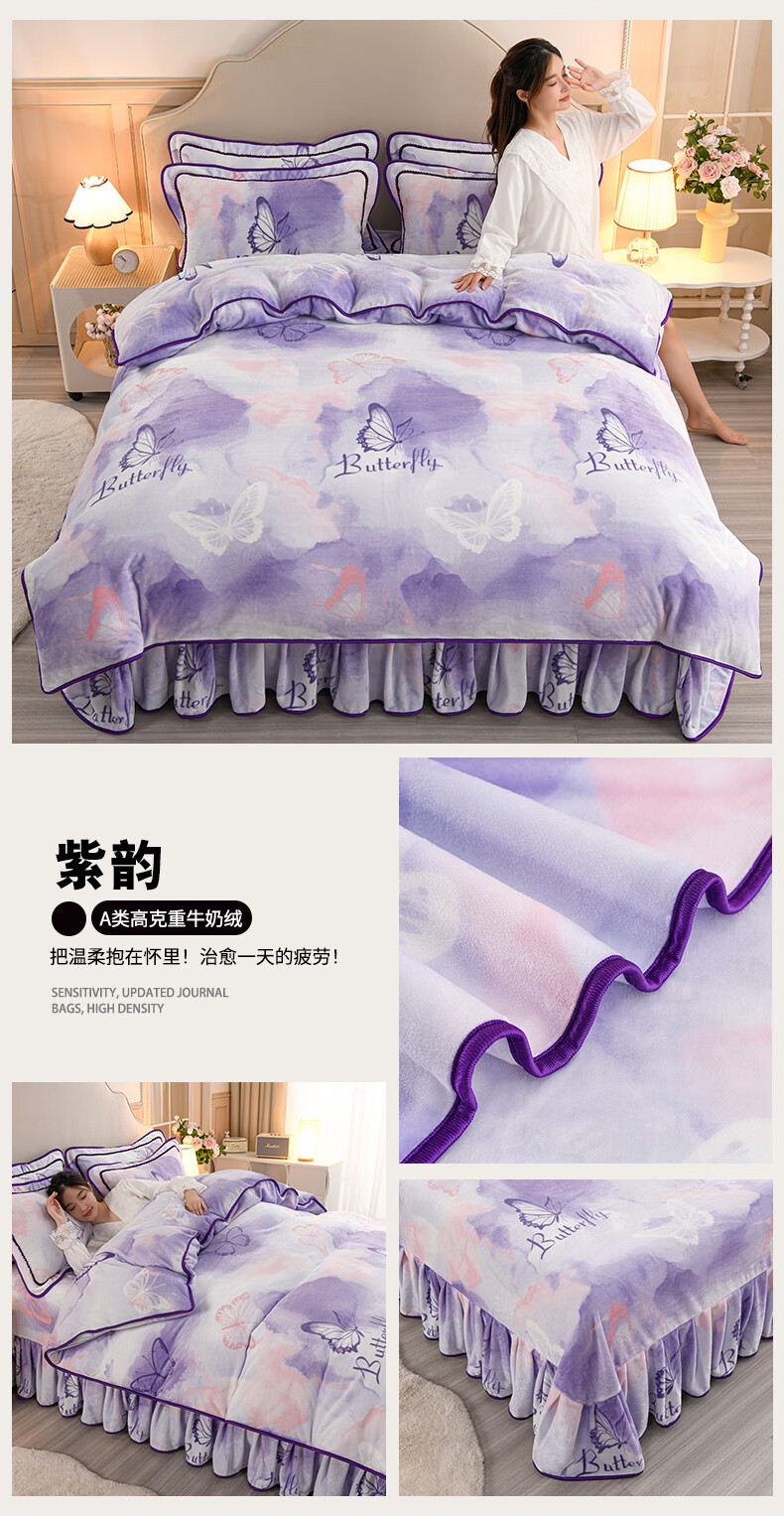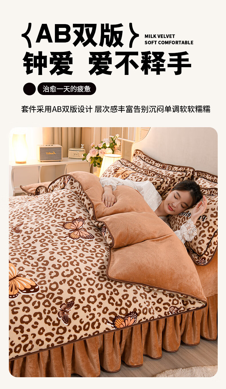 High weight milk velvet four-piece set in winter, thickened and warm double-sided velvet bed sheets and quilt covers, anti-static and lint-free KT Bear 1.8m bed sheet style four-piece set - quilt cover 200*230cm