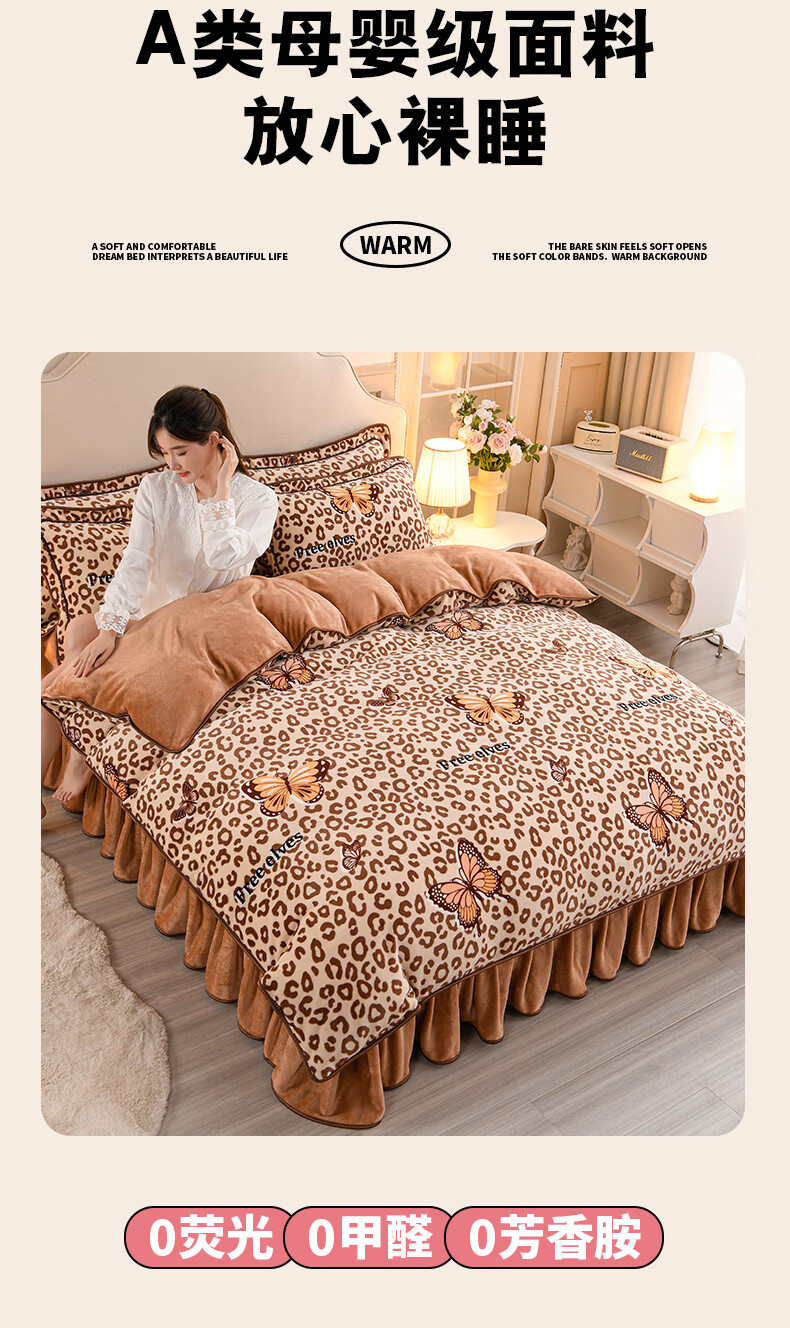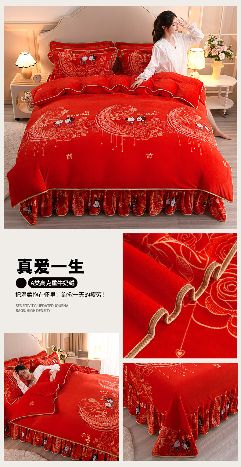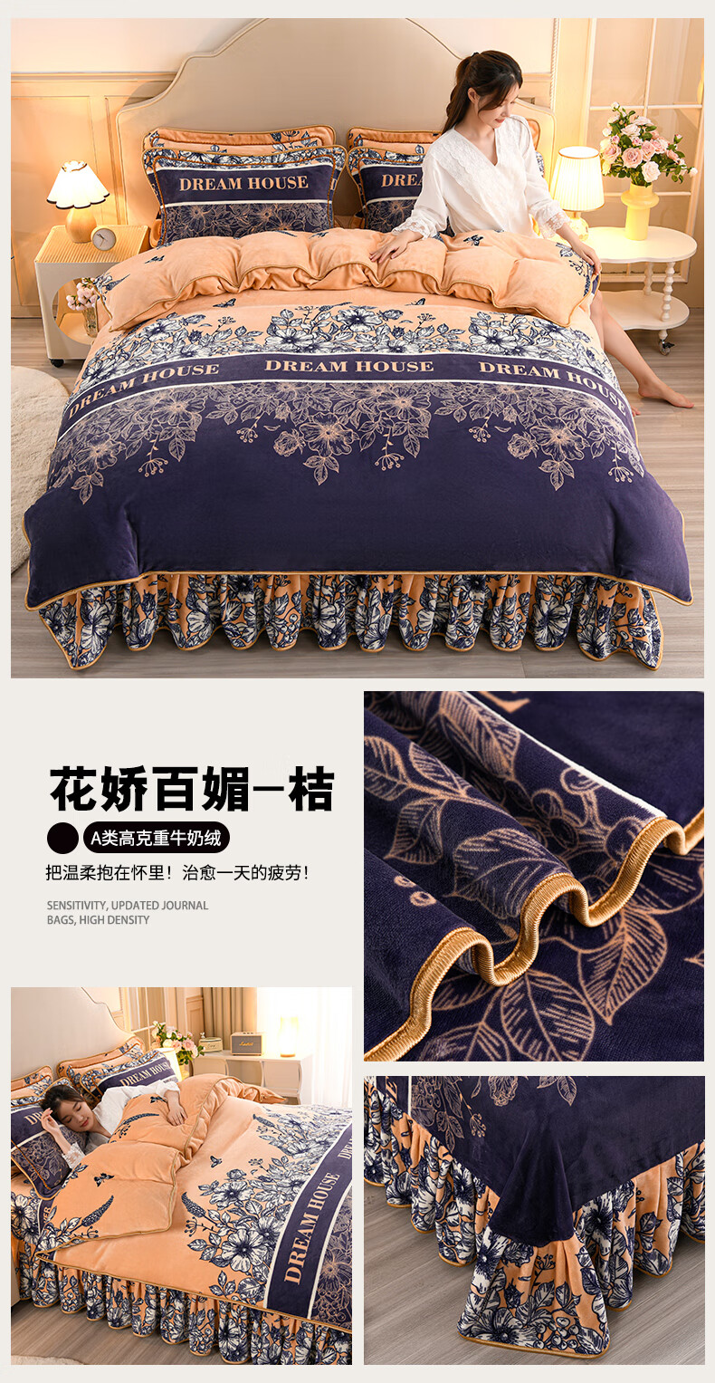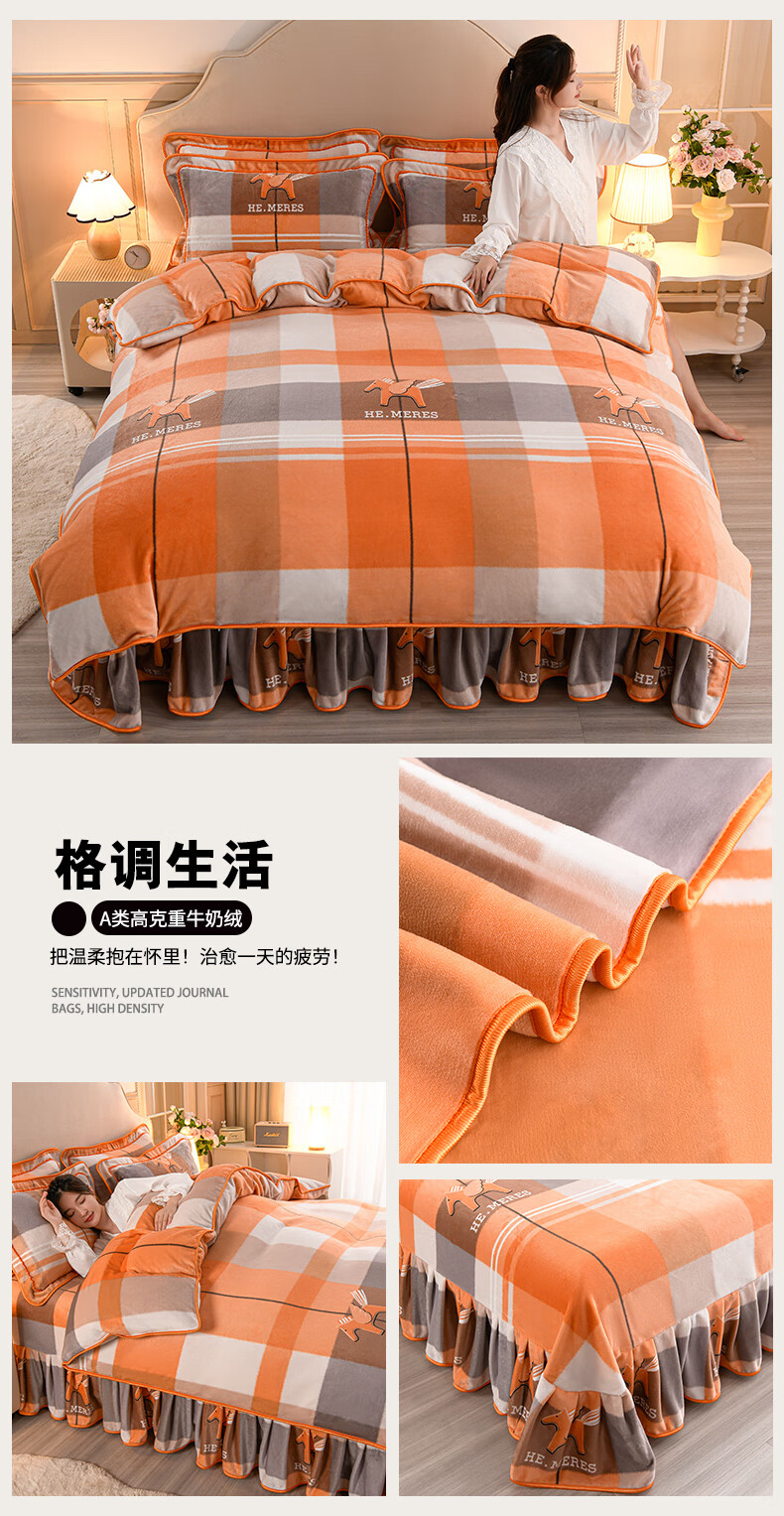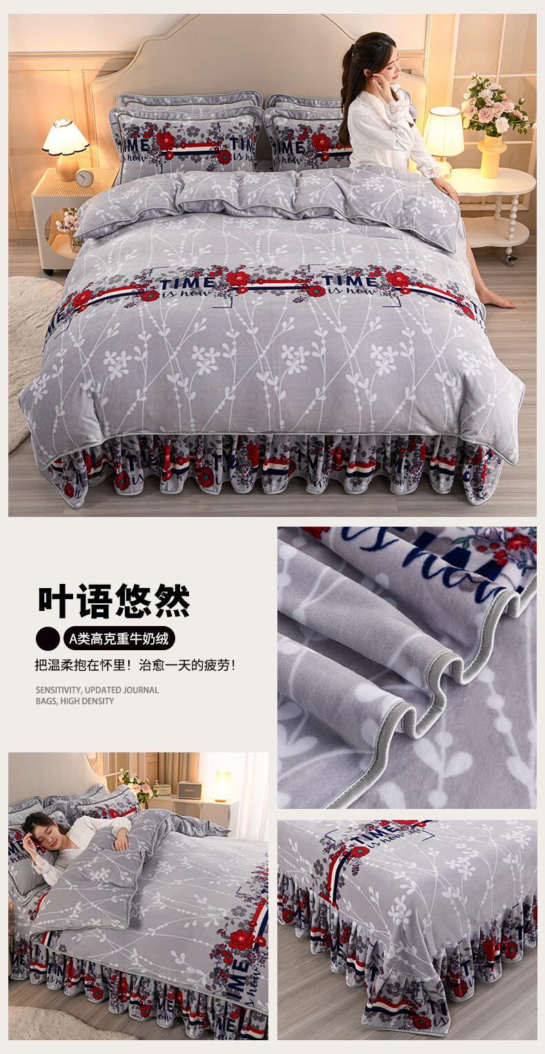 High weight milk velvet four-piece set in winter, thickened and warm double-sided velvet bed sheets and quilt covers, anti-static and lint-free KT Bear 1.8m bed sheet style four-piece set - quilt cover 200*230cm
