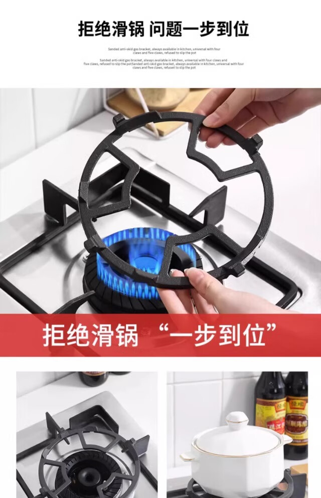 Gas stove holder gas stove bracket universal small pot milk pot non-slip stove shelf kitchen gas inner ring upgrade 1 pack cast steel material durable