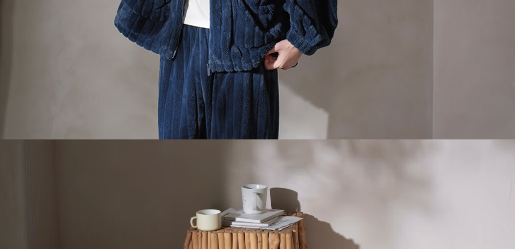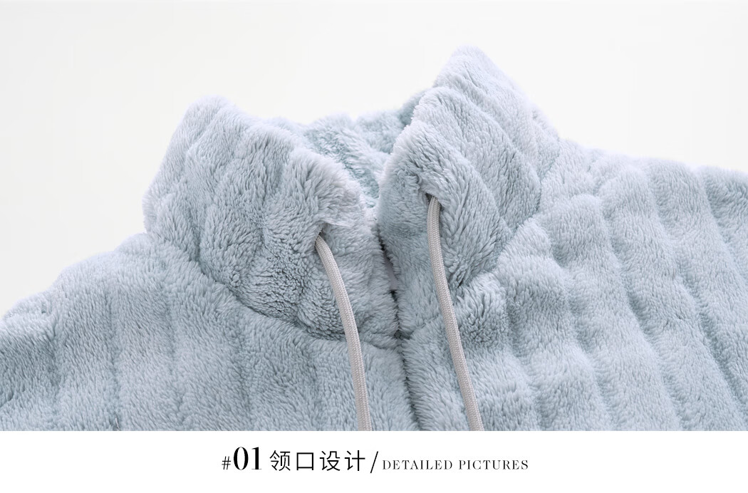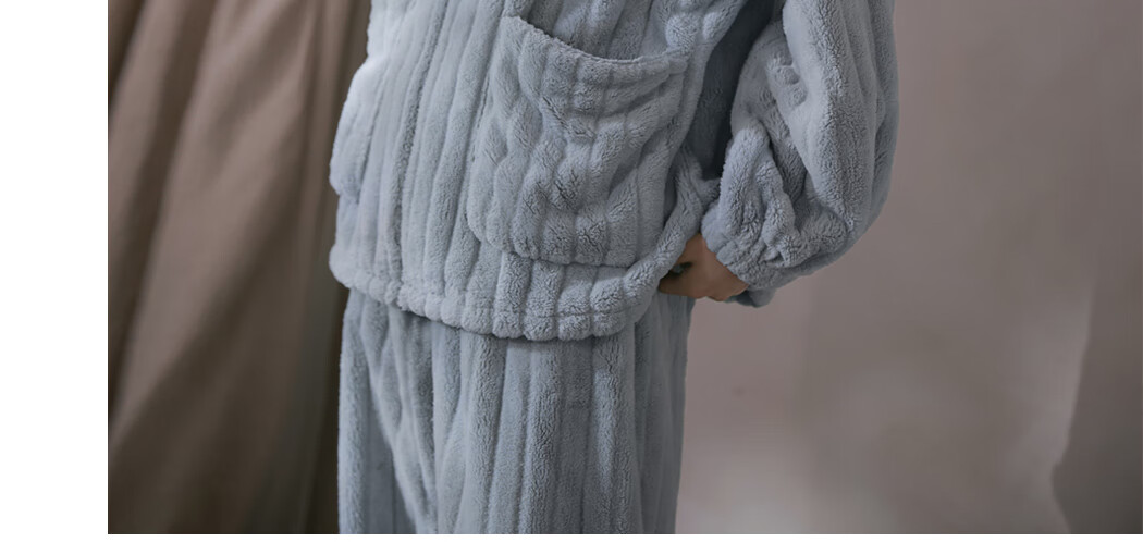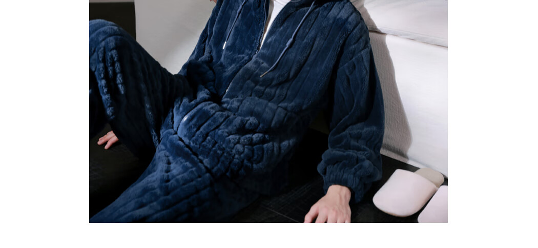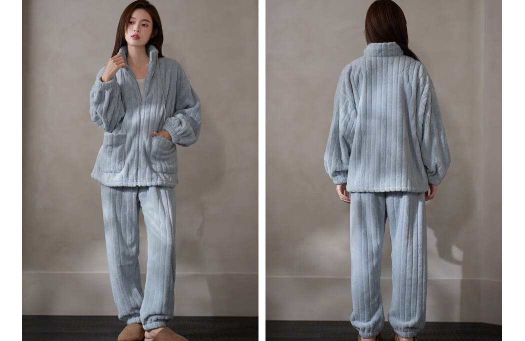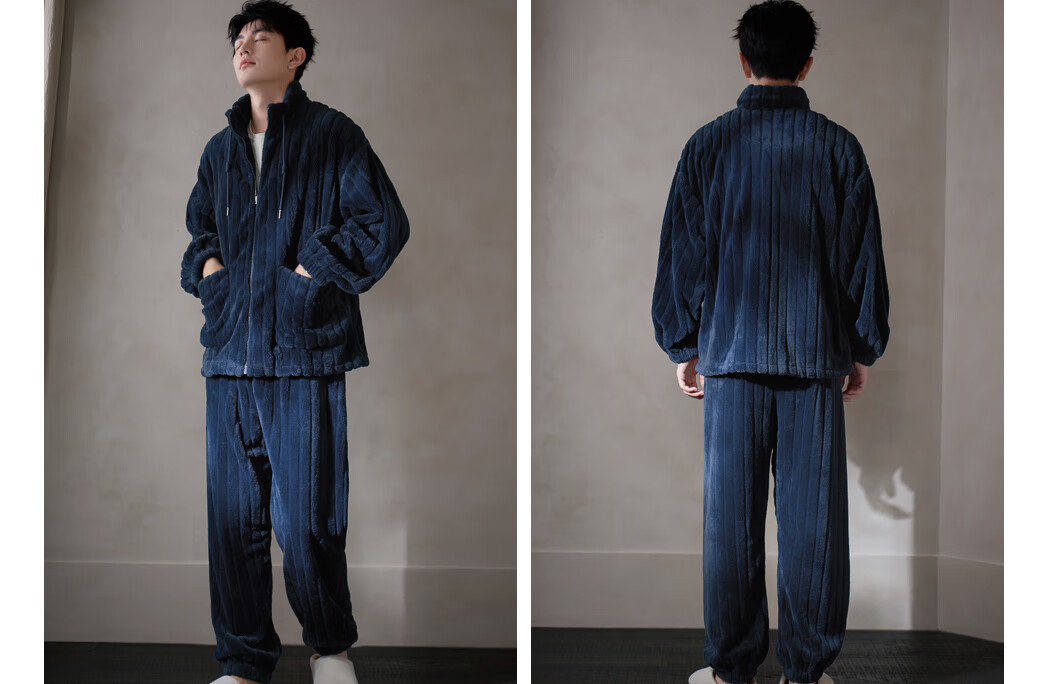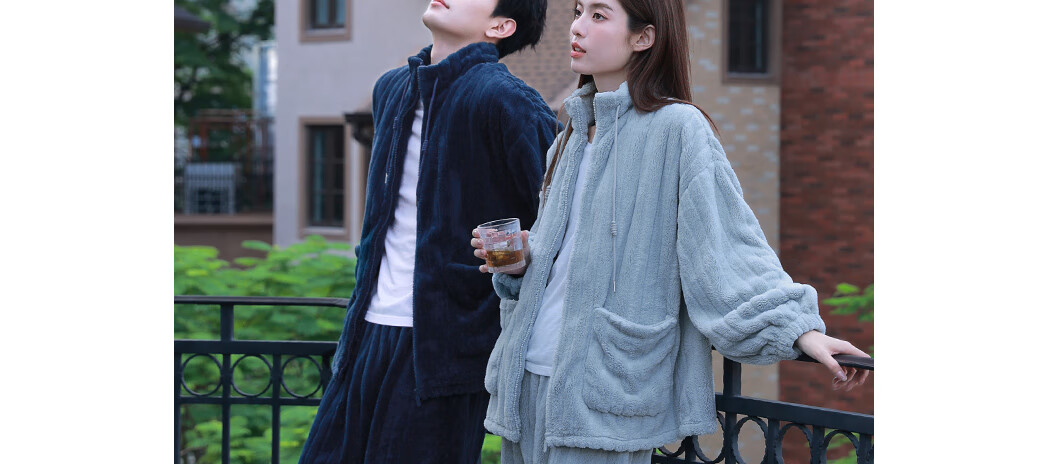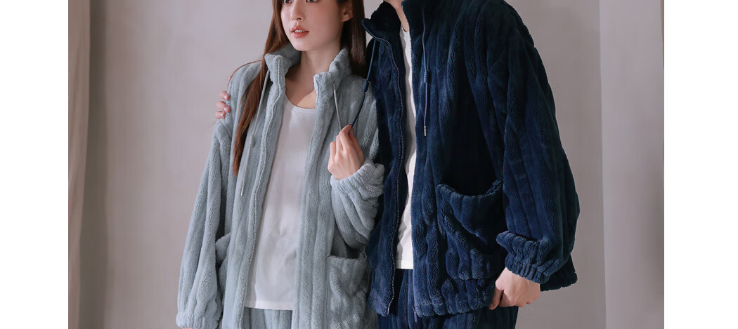 Mrs. Slee Sleep TIGHT pajamas couple wear for one man and one woman winter coral velvet thickened velvet zipper simple warm wearable home clothes QHR96122-Men's L