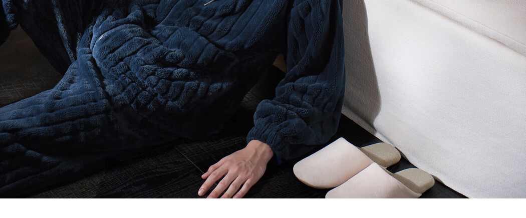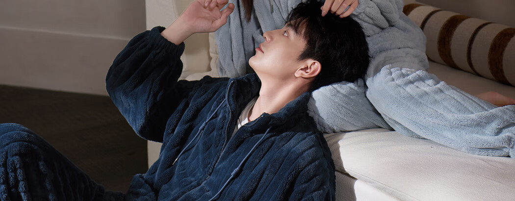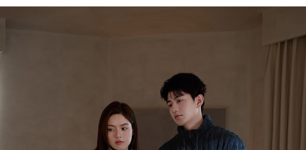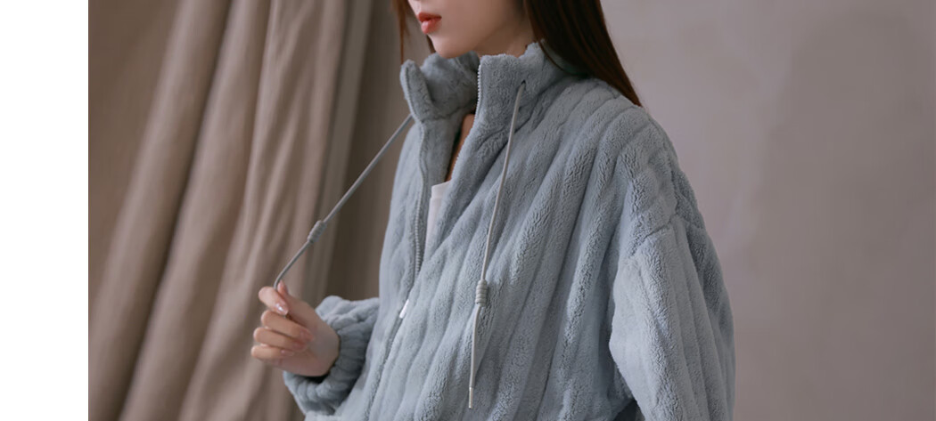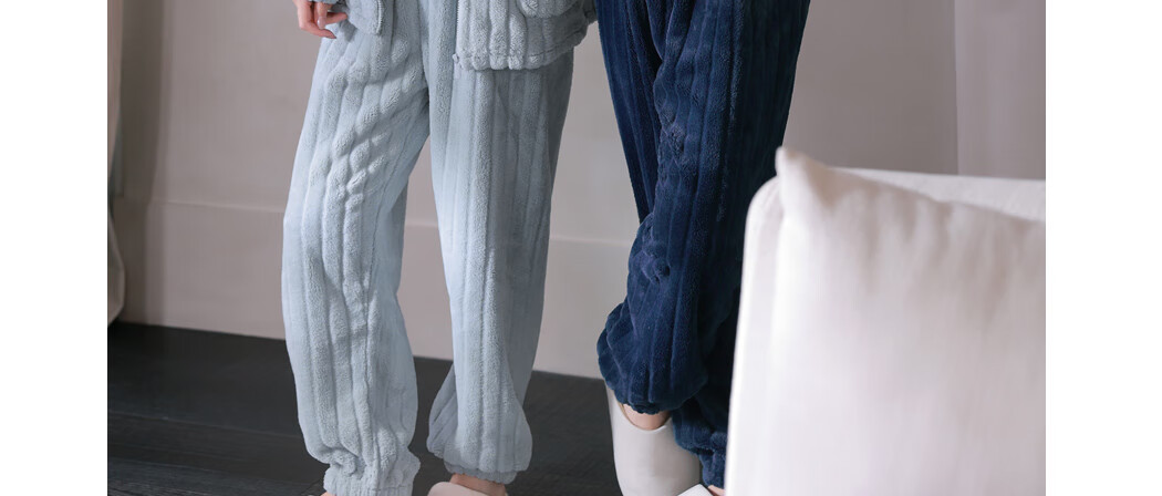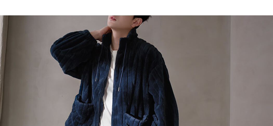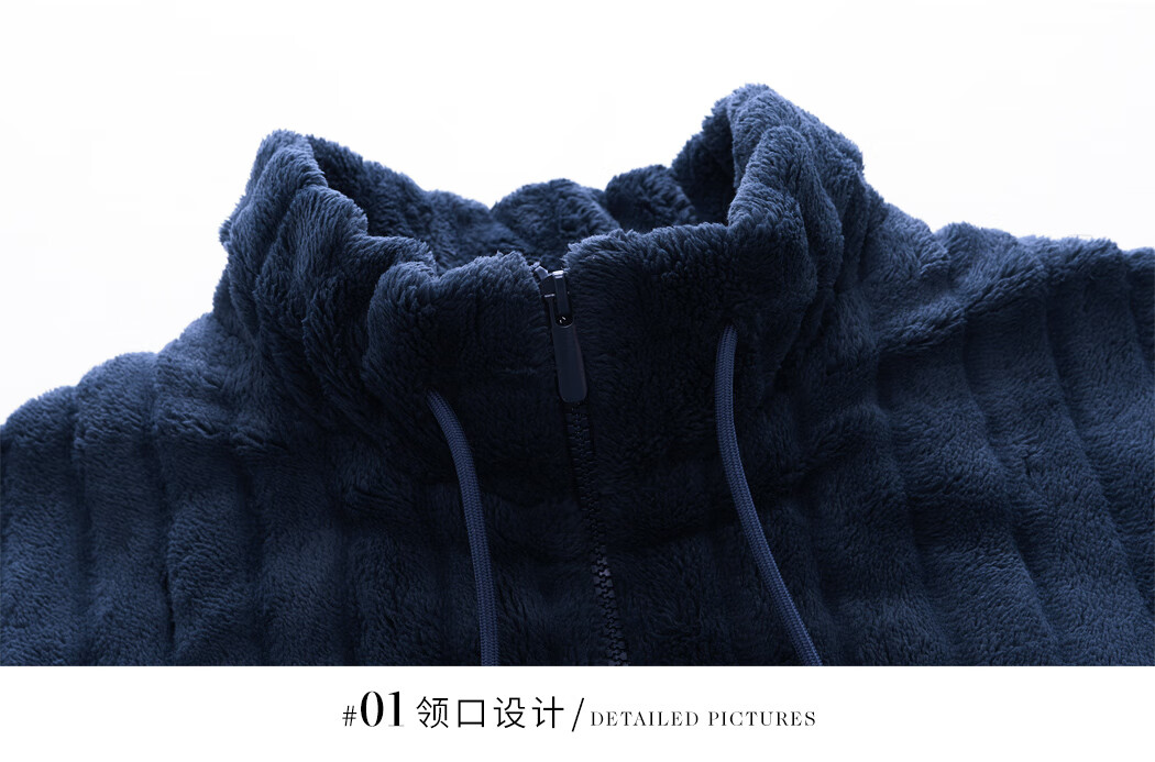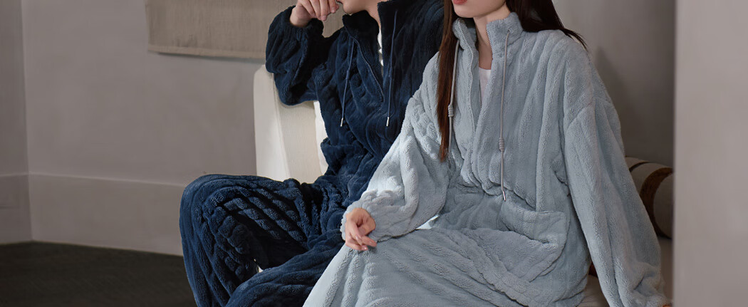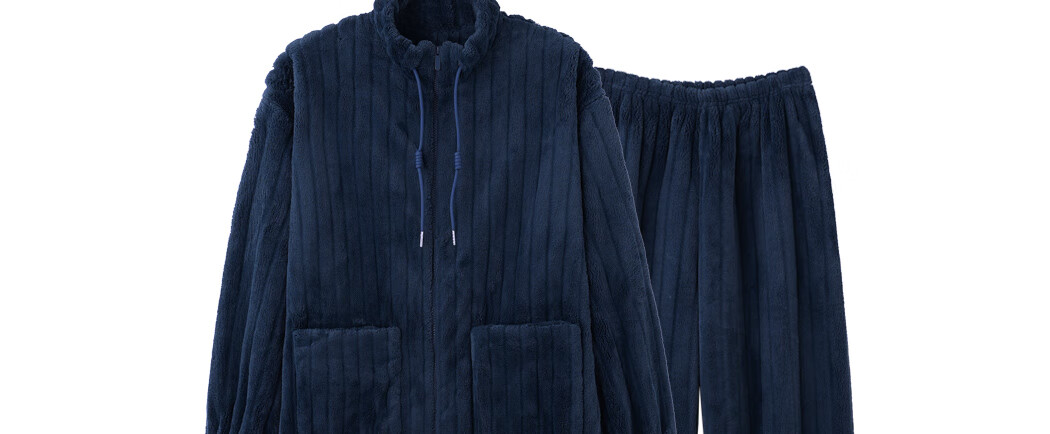 Mrs. Slee Sleep TIGHT pajamas couple wear for one man and one woman winter coral velvet thickened velvet zipper simple warm wearable home clothes QHR96122-Men's L