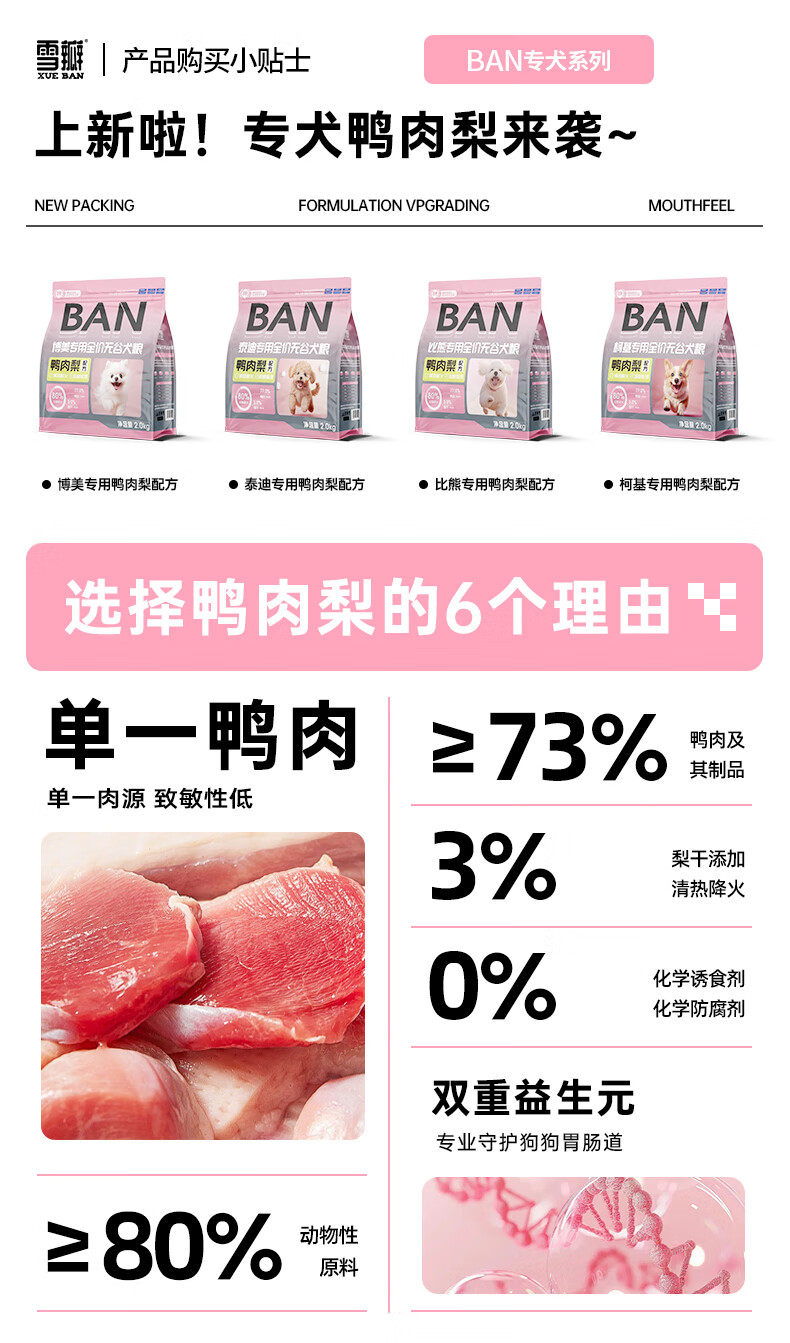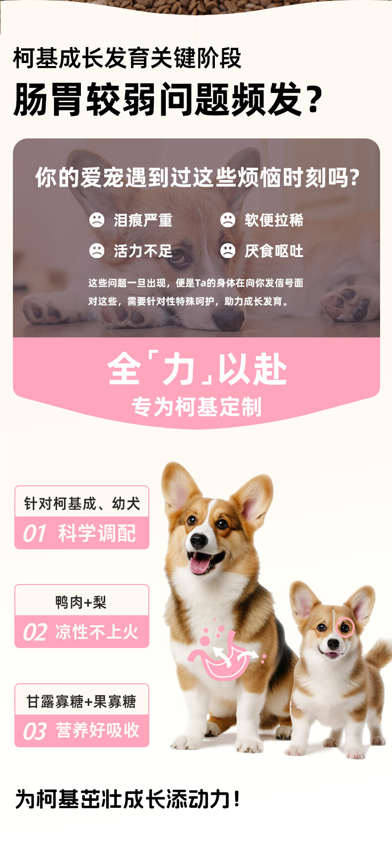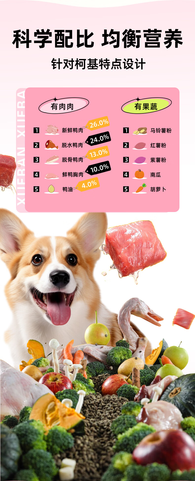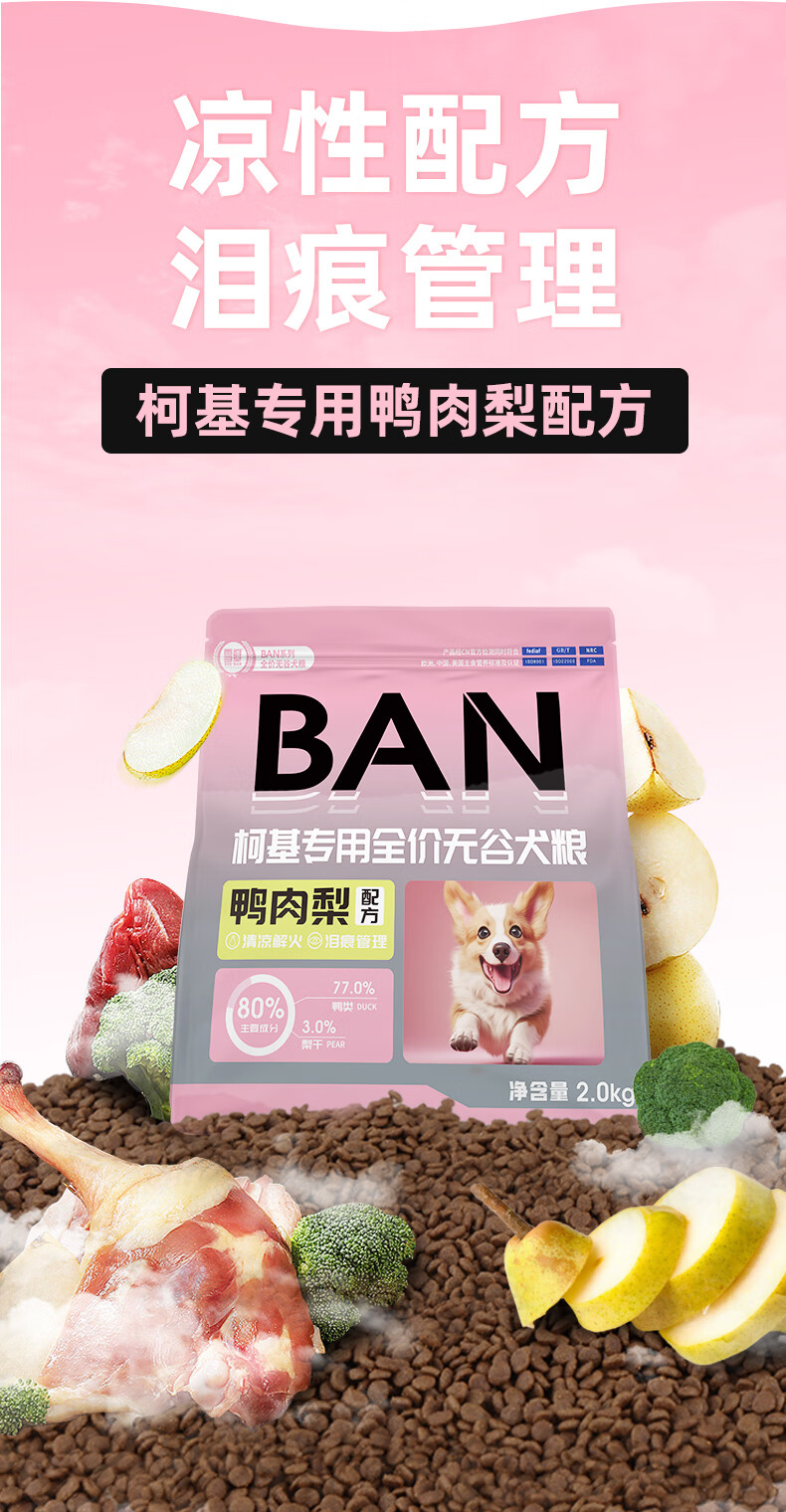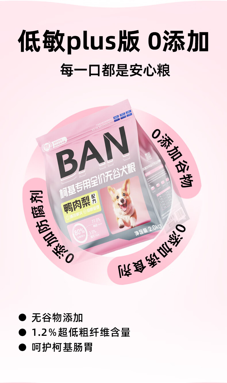 Xueban BAN Corgi Dog Food Special Food Duck Meat and Pear Grain-Free Puppies and Adult Dogs 2kg Care for the Gastrointestinal and Gastrointestinal Glass Stomach Buttocks Package Family Stocking Pack Corgi Duck Meat and Pear Grain-free Grain 12Jin Jin is equal to 0.5kg Pack 0lb See sku for details