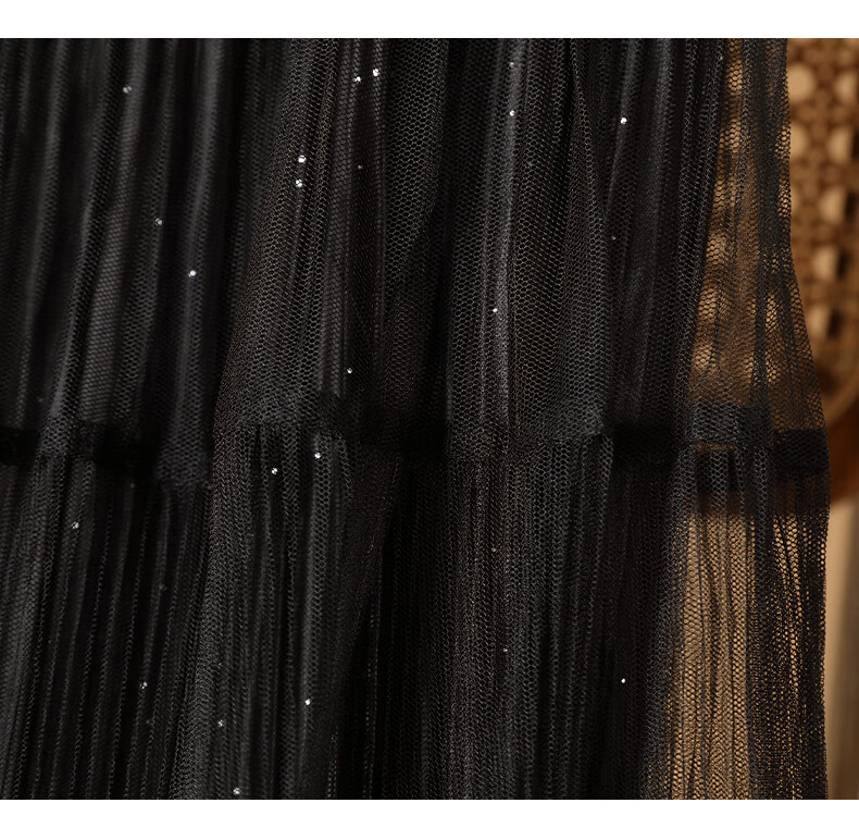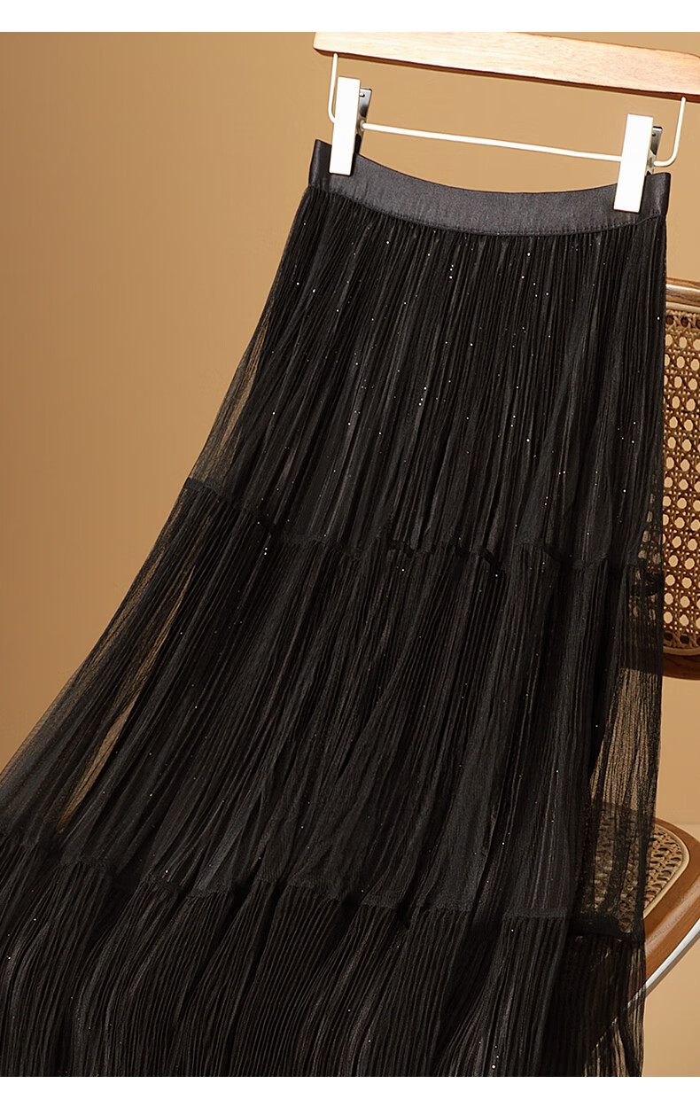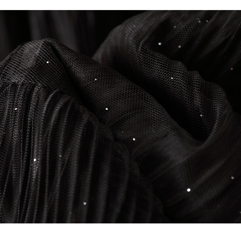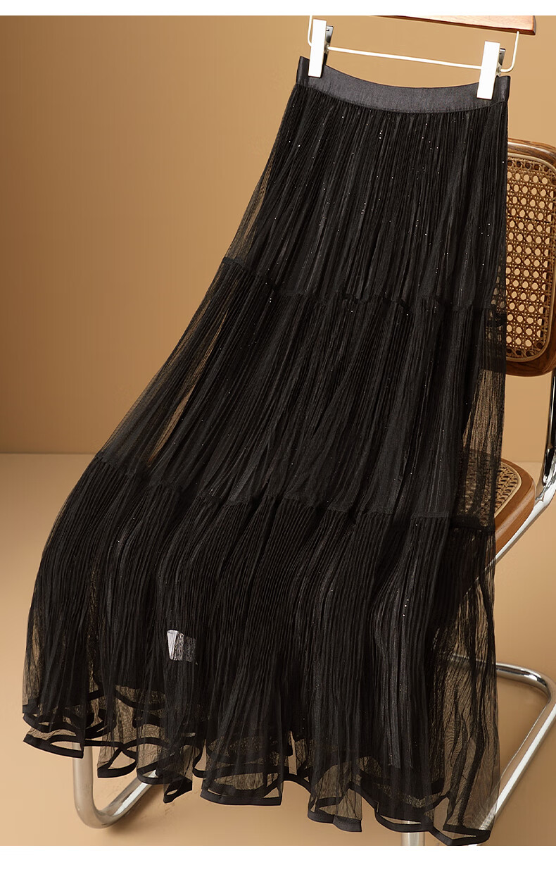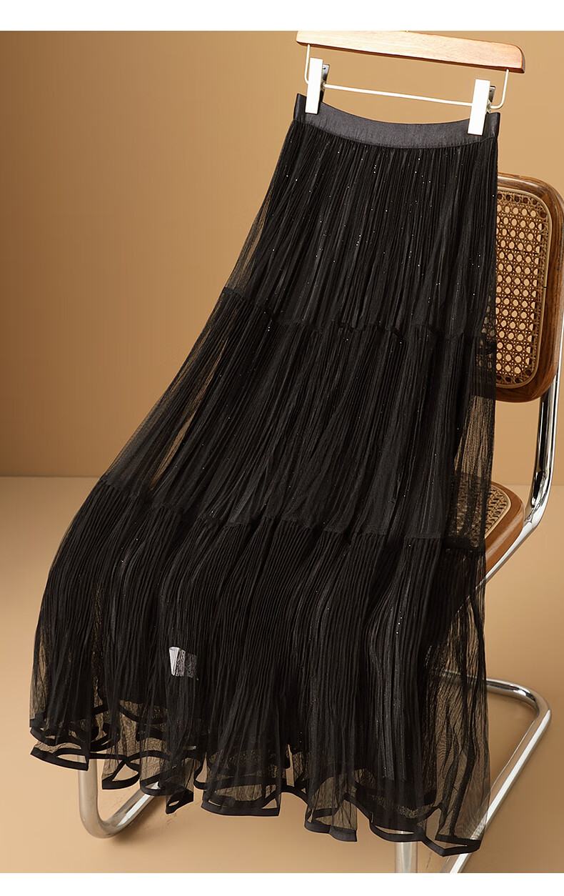 Sequin pleated mesh skirt for women 2025 autumn new a-line skirt high-end black small person versatile black one size recommended 80-155 Jin Jin equals 0.5 kg