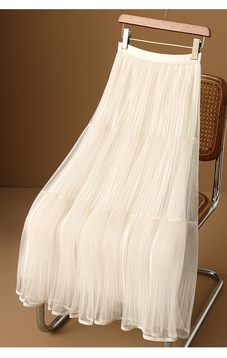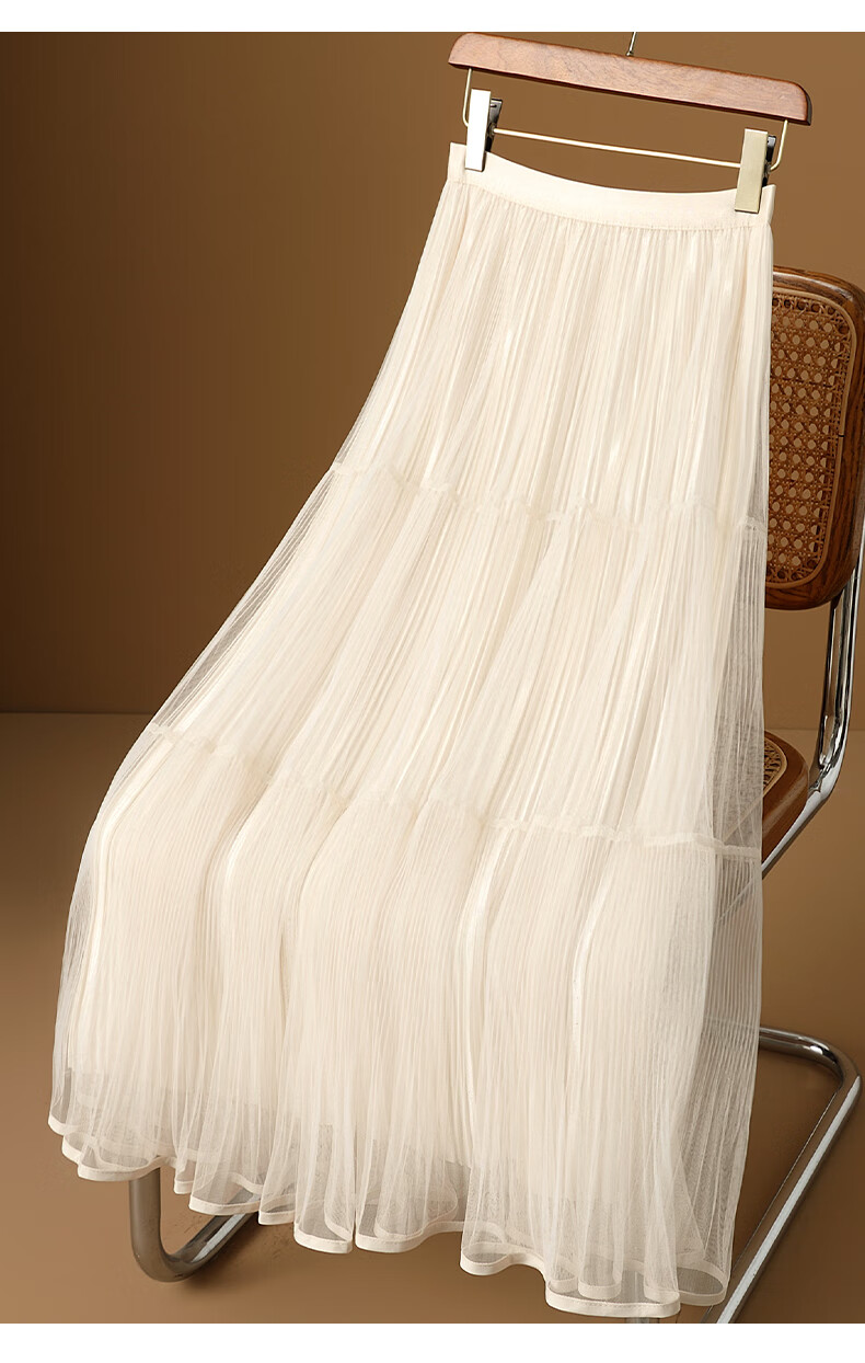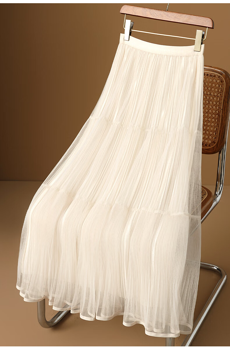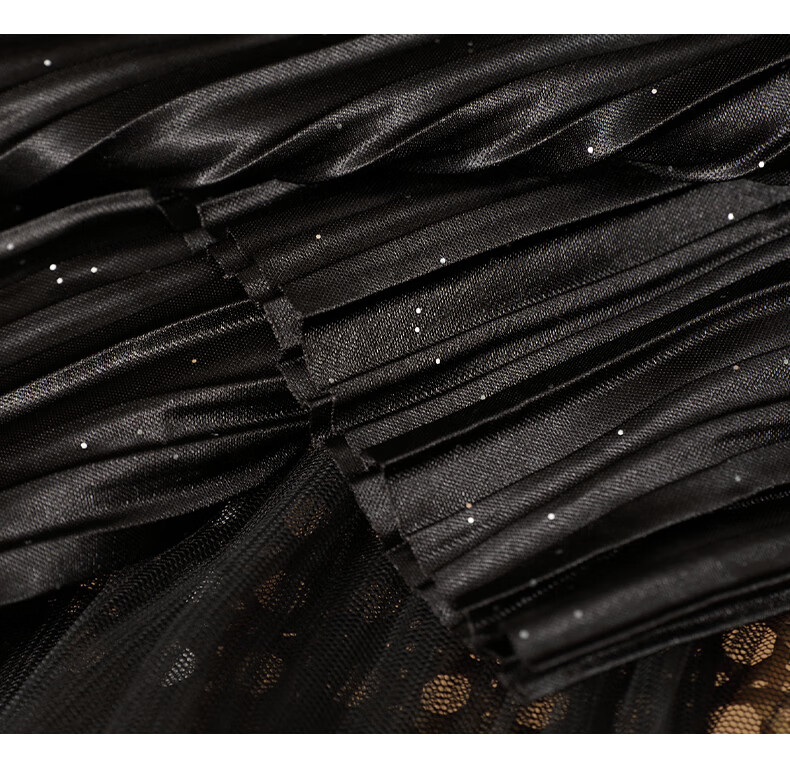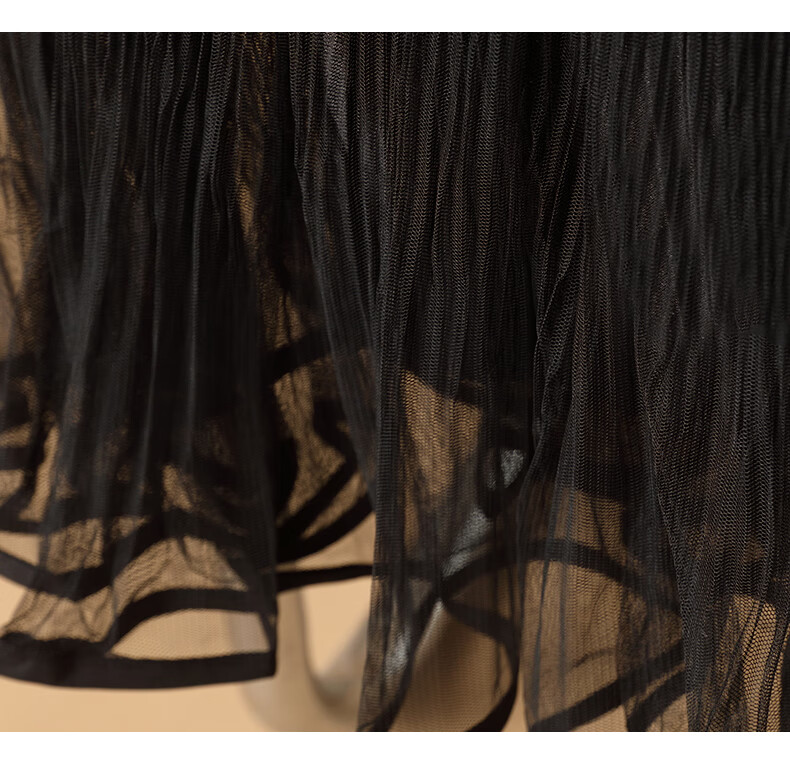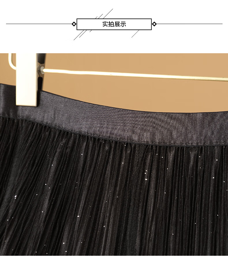 Sequin pleated mesh skirt for women 2025 autumn new a-line skirt high-end black small person versatile black one size recommended 80-155 Jin Jin equals 0.5 kg