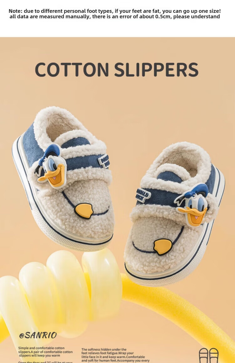 Jingyouyu Children's Cotton Slippers Boys' Plush Warm Home Indoor Soft Sole Anti-Slip Cartoon Autumn and Winter Baby Cotton Slippers Navy Donald Duck Single Layer 24 25 Suitable for Foot Length 15CM
