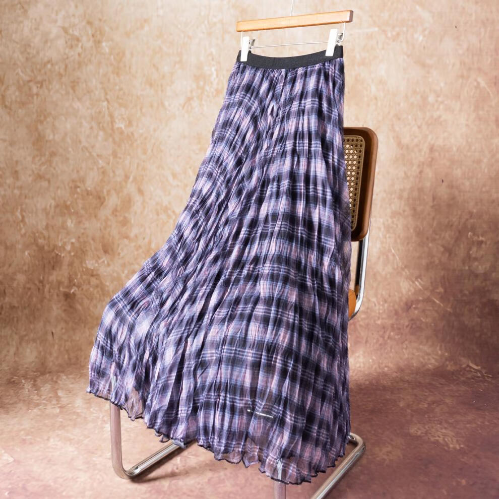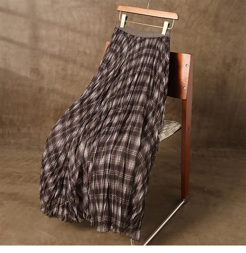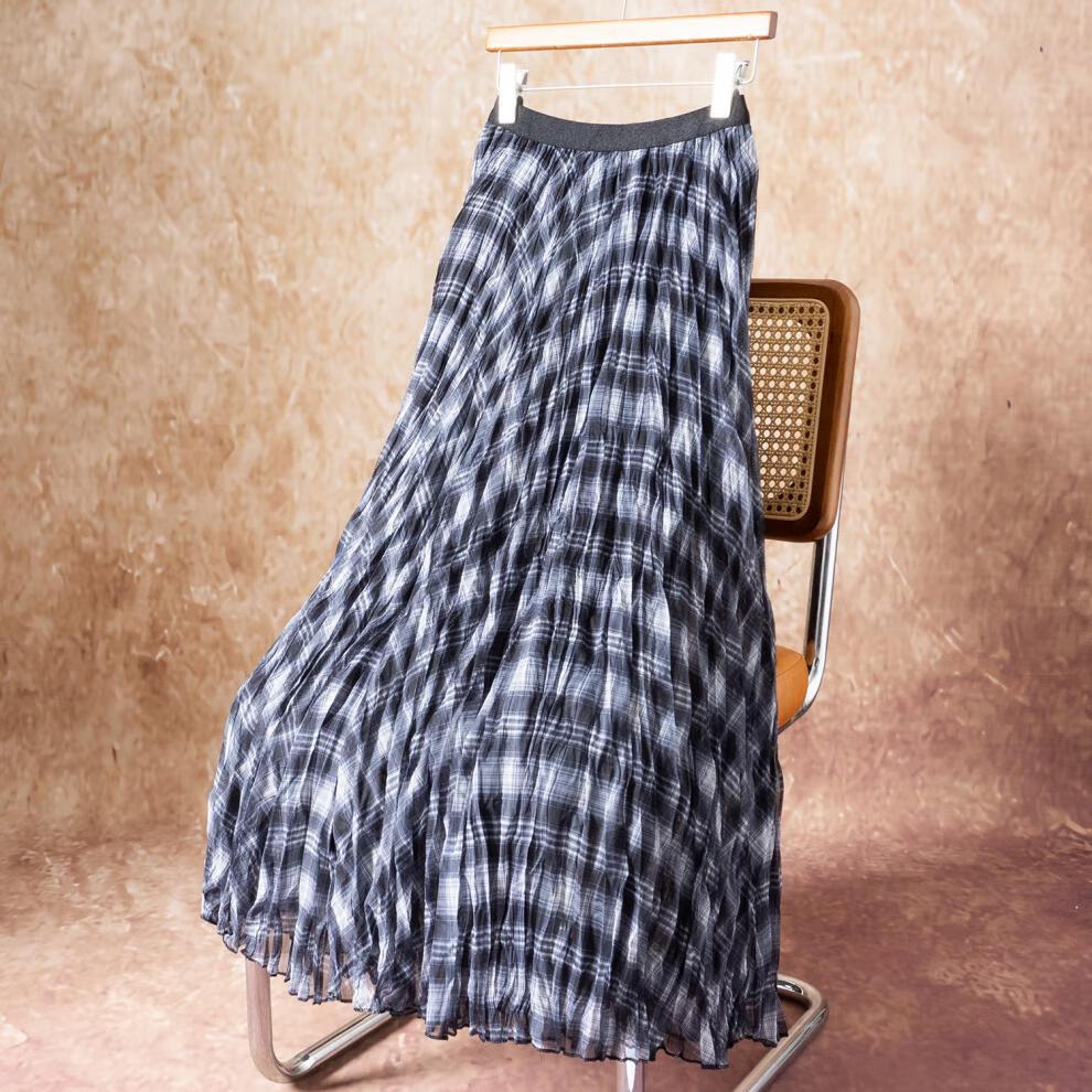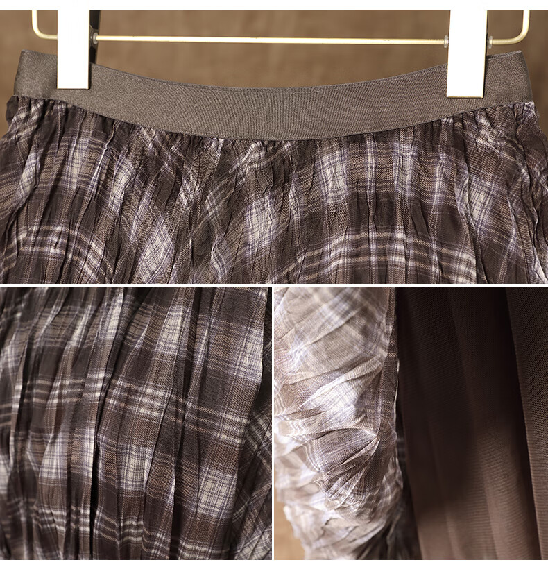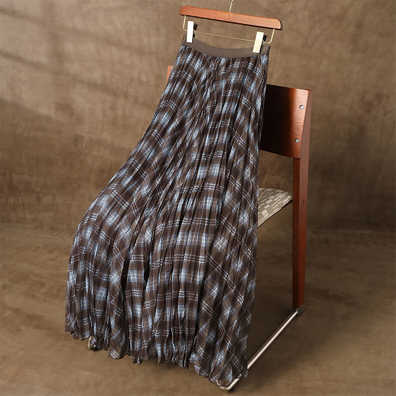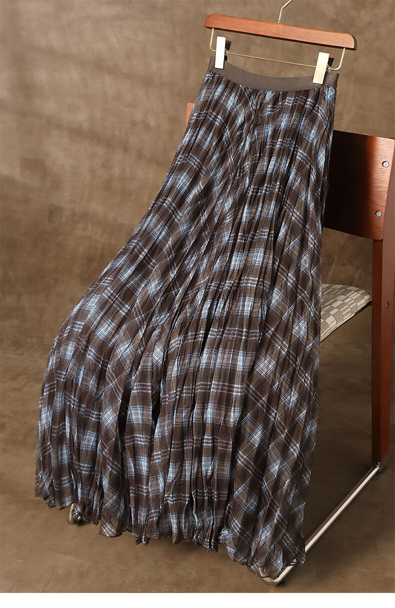 Light luxury British plaid skirt for women 2025 autumn new a-line skirt high-end pleated skirt mid-length skirt blue one size fits all recommended 80-155 Jin Jin equals 0.5 kg