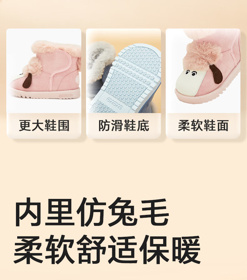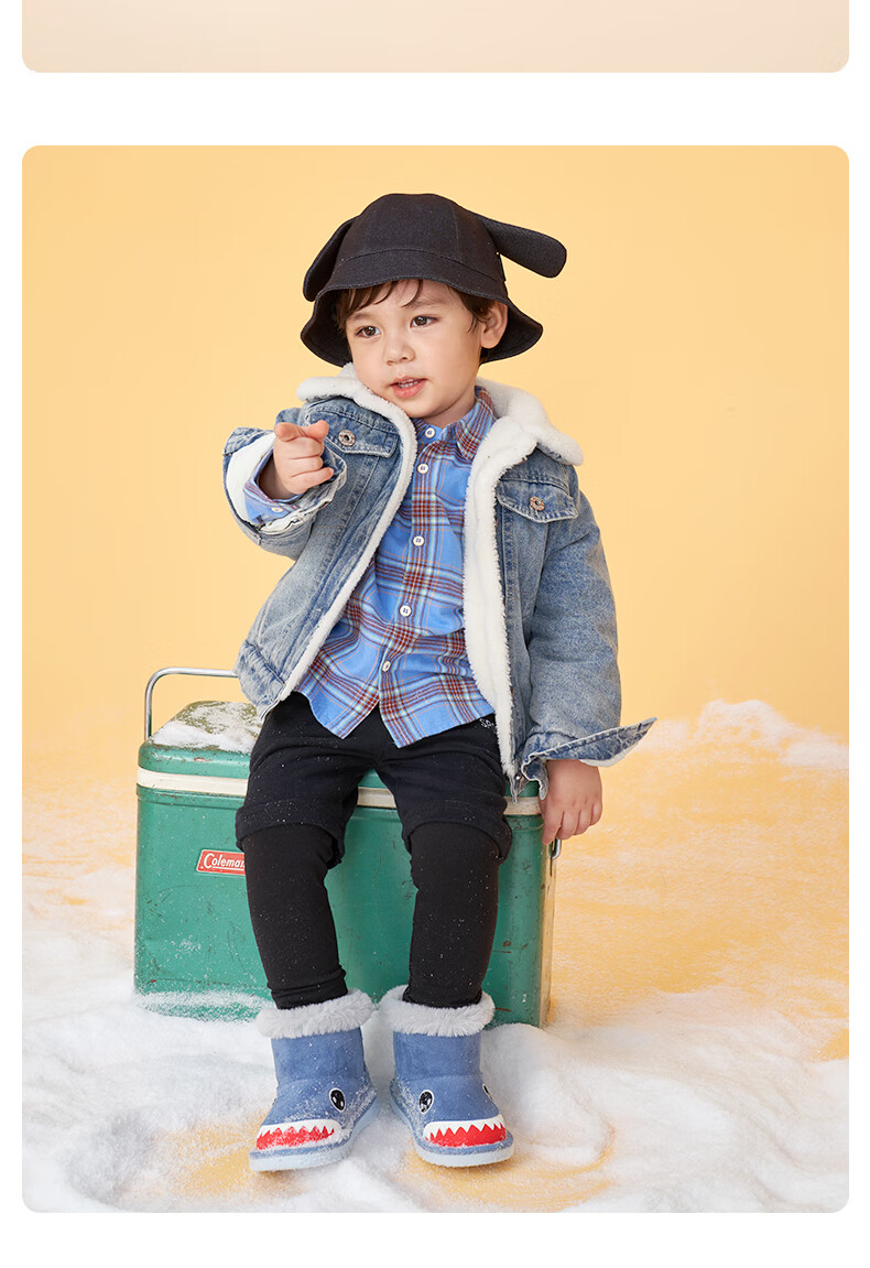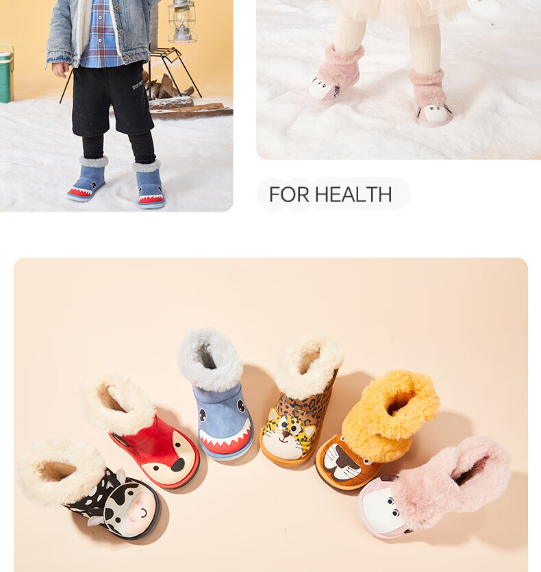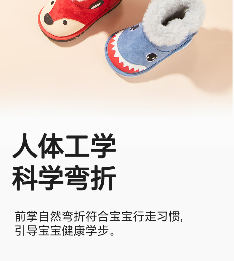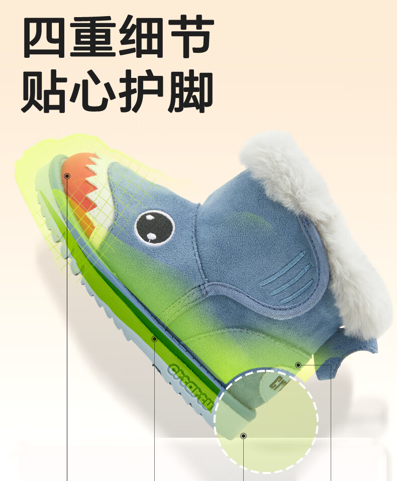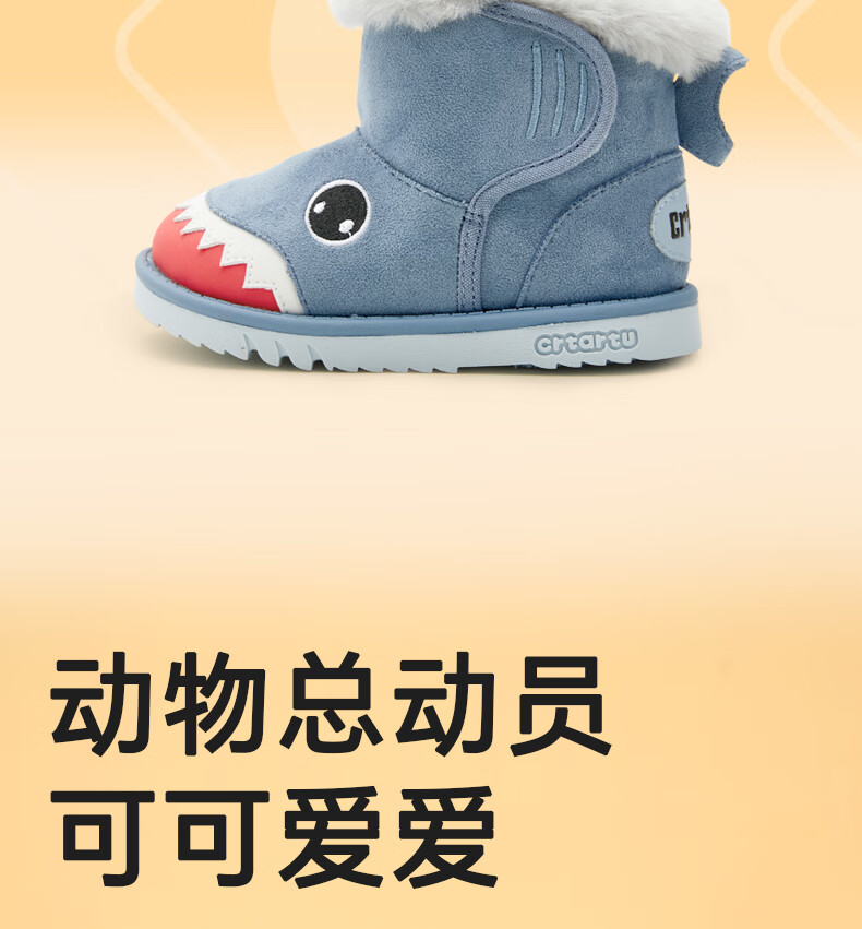 Carter Rabbit Children's Snow Boots Cotton Boots Thickened Boys' Fur Shoes Plus Velvet Boots Winter Girls' Cotton Shoes Blue Shark 25 Inner Length 15.5cm Foot Length 14.3-14.9cm