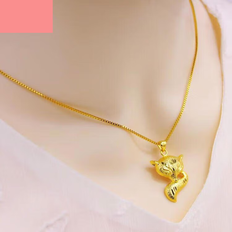 Yongsi New 999 Gold Necklace for Women 24k Gold Fox Pendant Pure Gold Clavicle Chain Imitation Gold Color Niche Gift for Girlfriend Little Fox Pendant Necklace