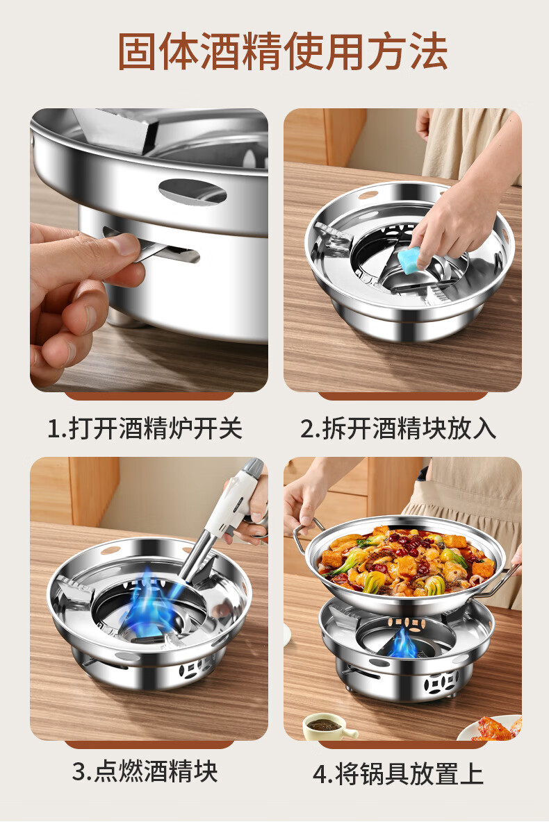 Skingcond German griddle pot 316 food grade commercial alcohol stove hotel alcohol stove small hot pot special stainless steel (with lid) stainless steel griddle + alcohol stove (free alcohol block) 11 inches