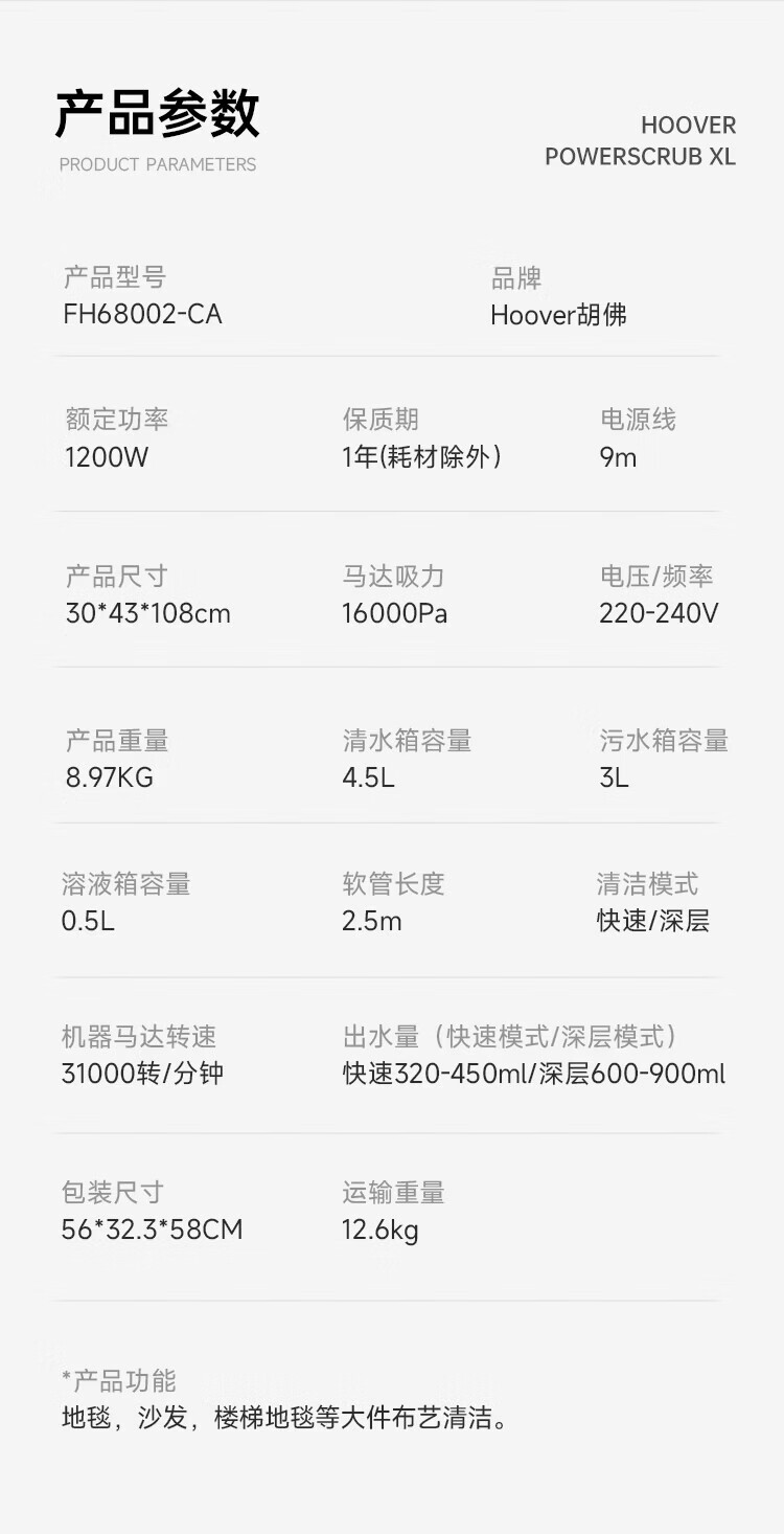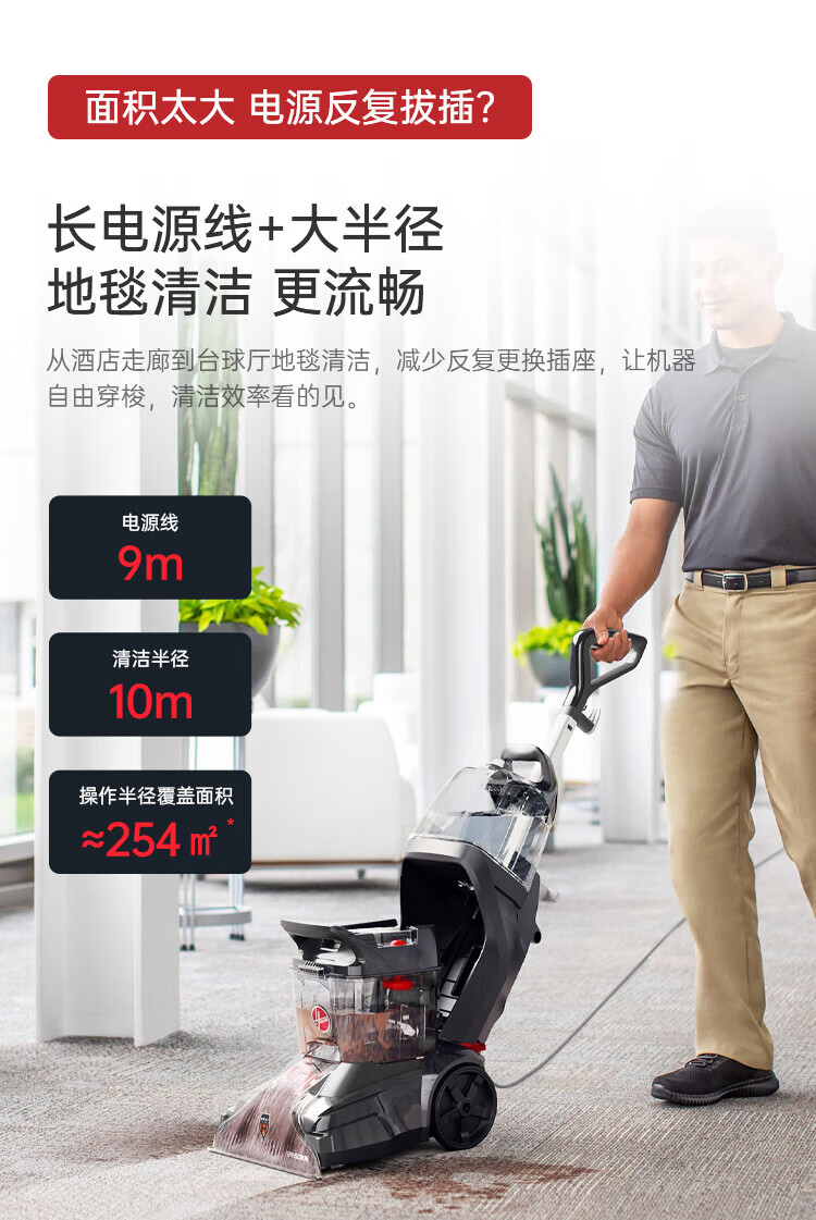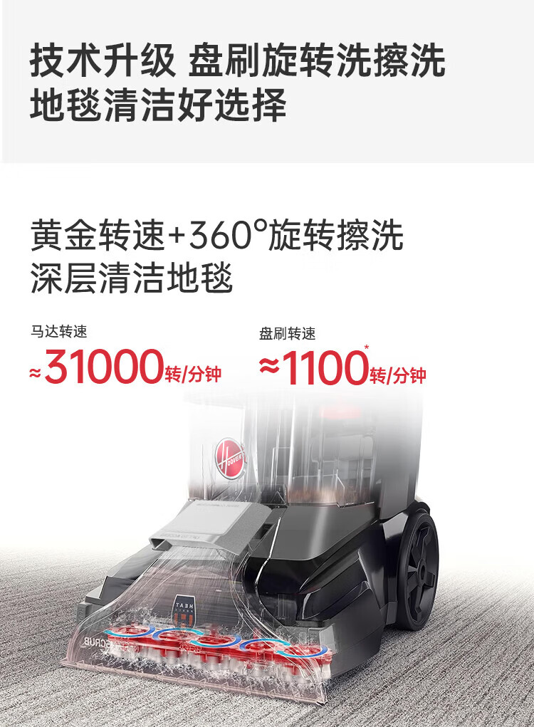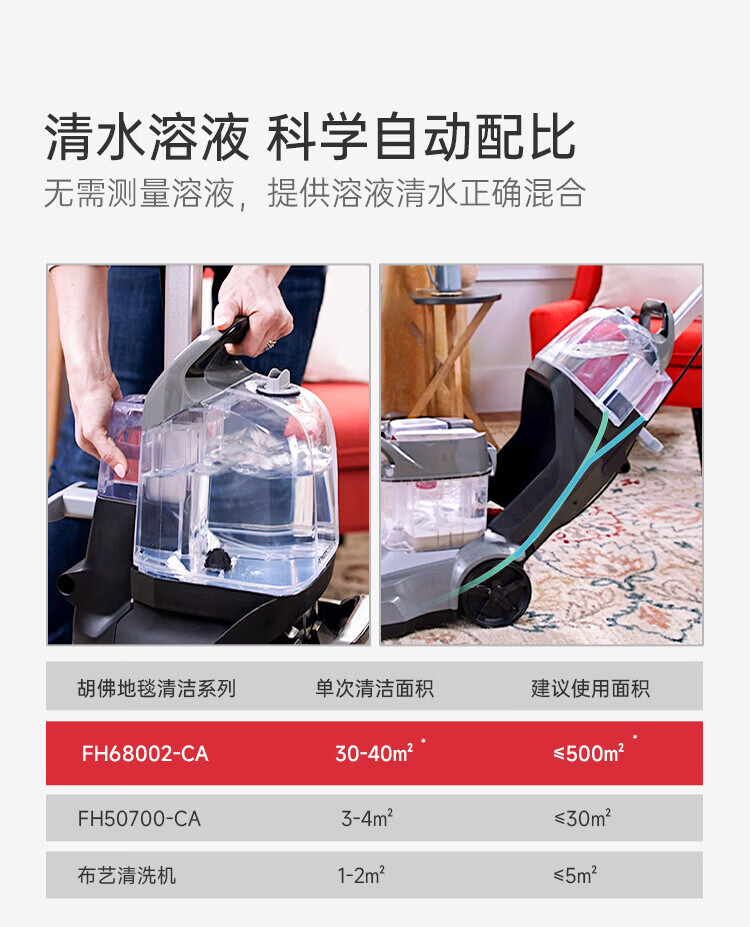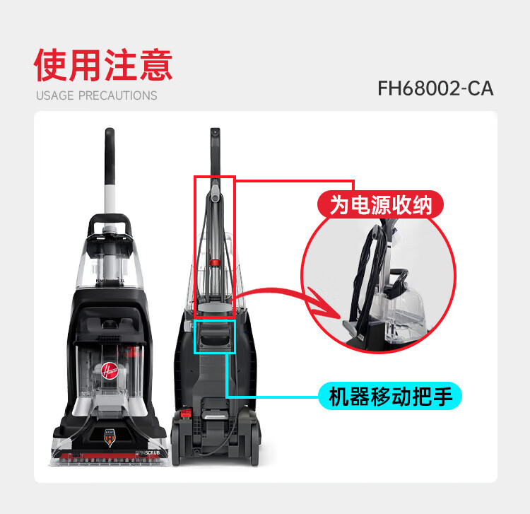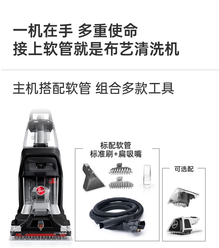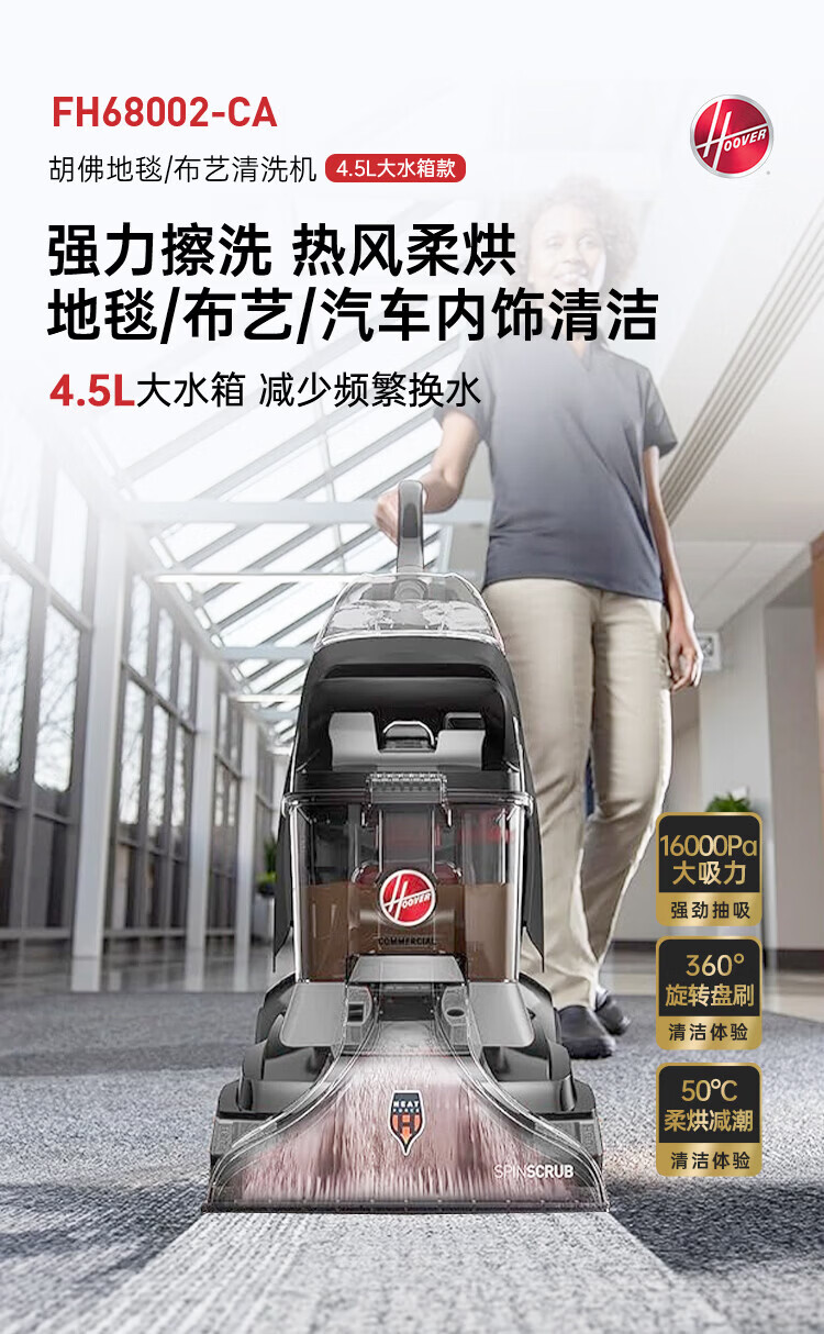 Hoover Hoover carpet and fabric professional cleaning machine home commercial hotel billiard room cleaning and suction integrated FH68002 car extended version + 2 bottles of cleaning fluid