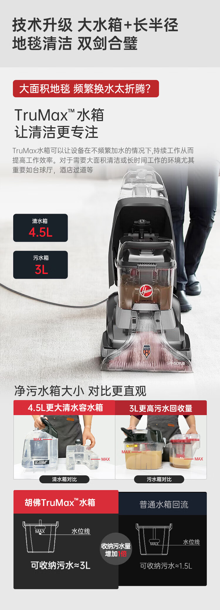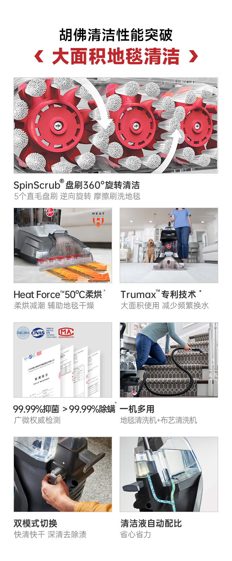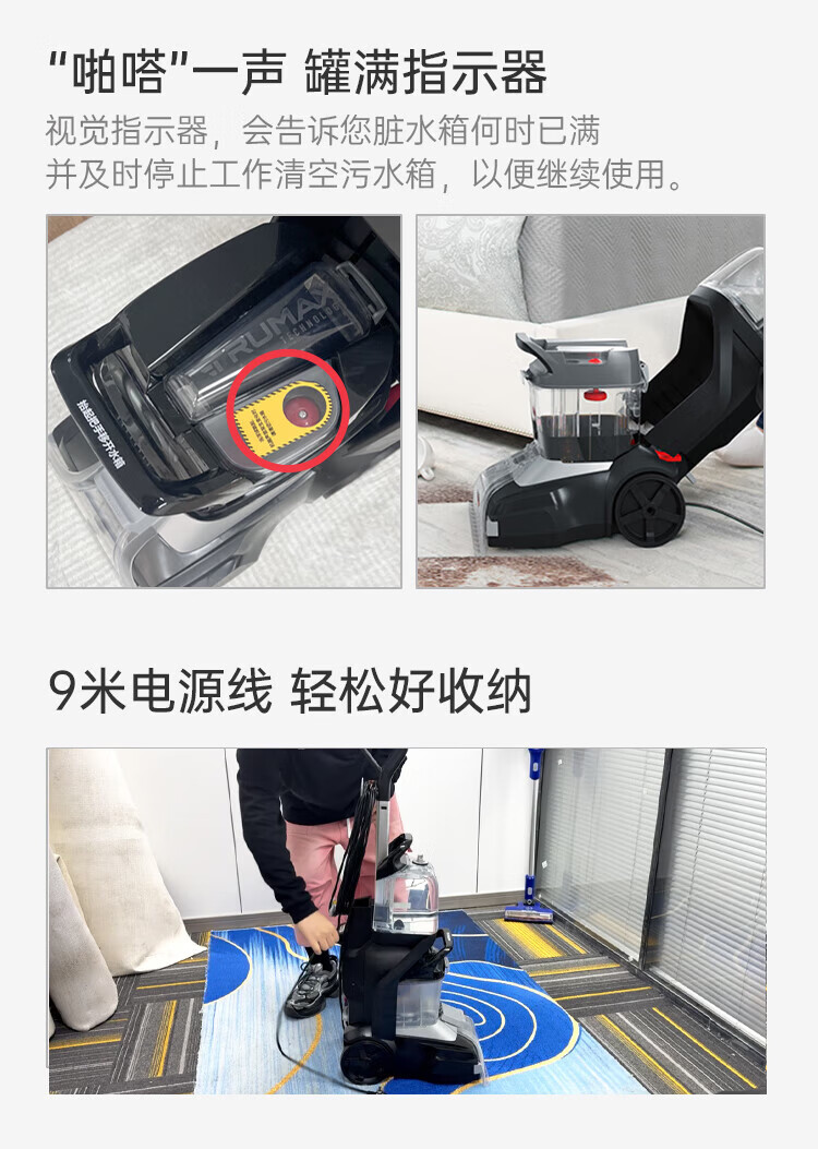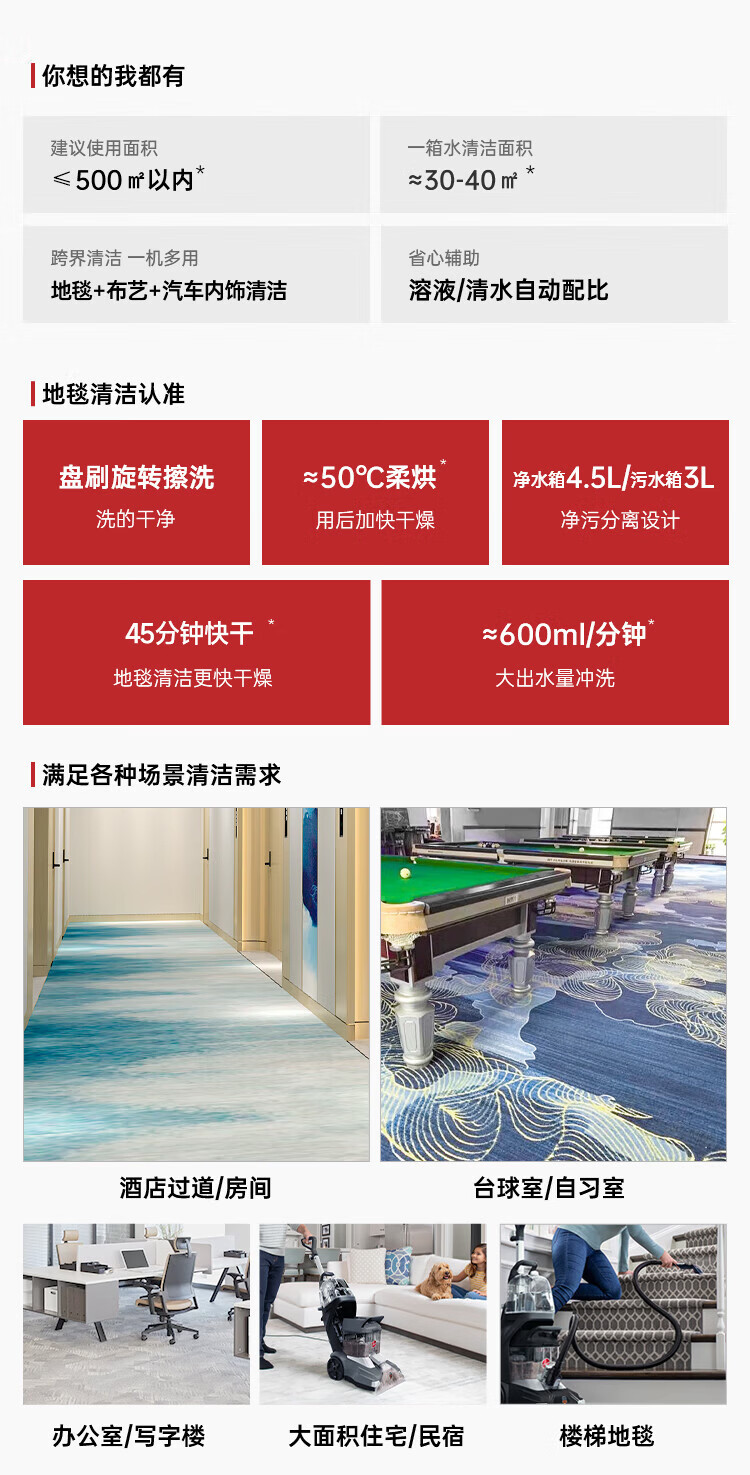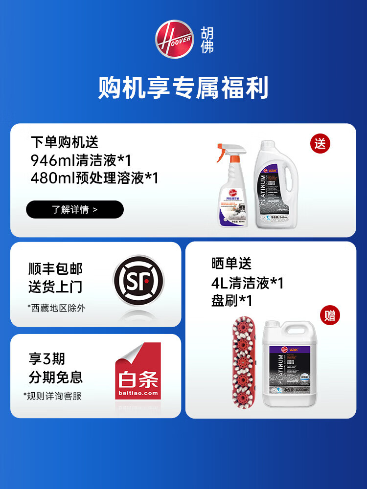 Hoover Hoover carpet and fabric professional cleaning machine home commercial hotel billiard room cleaning and suction integrated FH68002 car extended version + 2 bottles of cleaning fluid