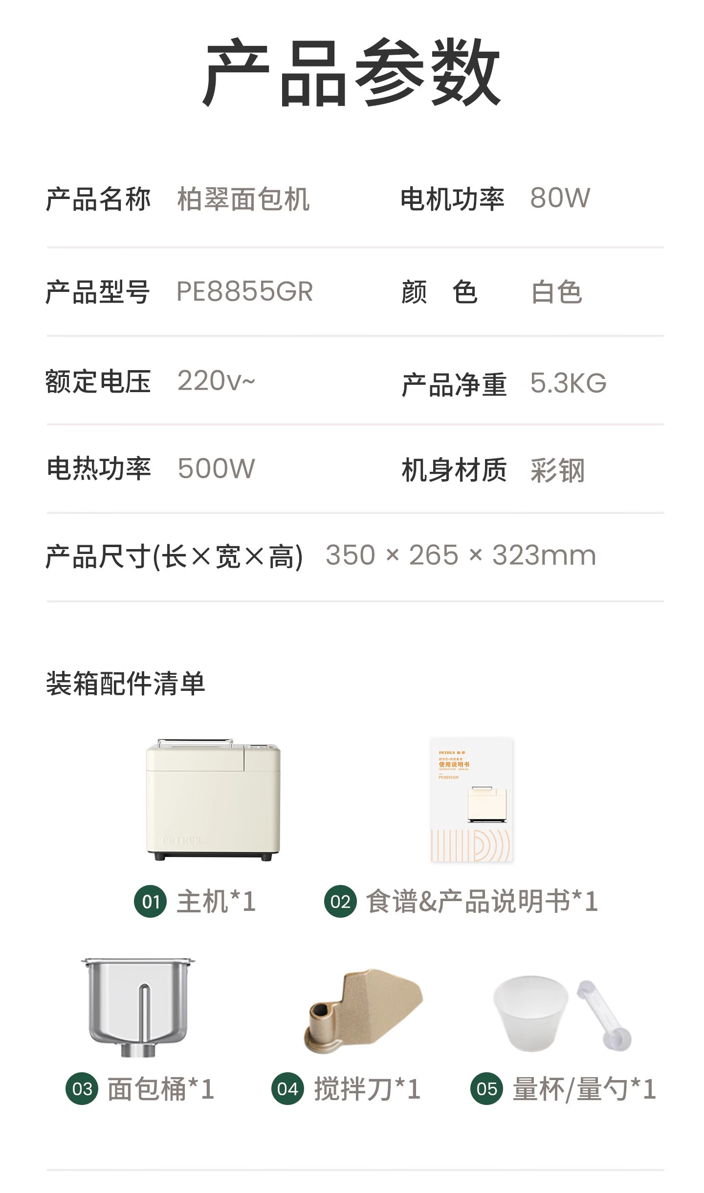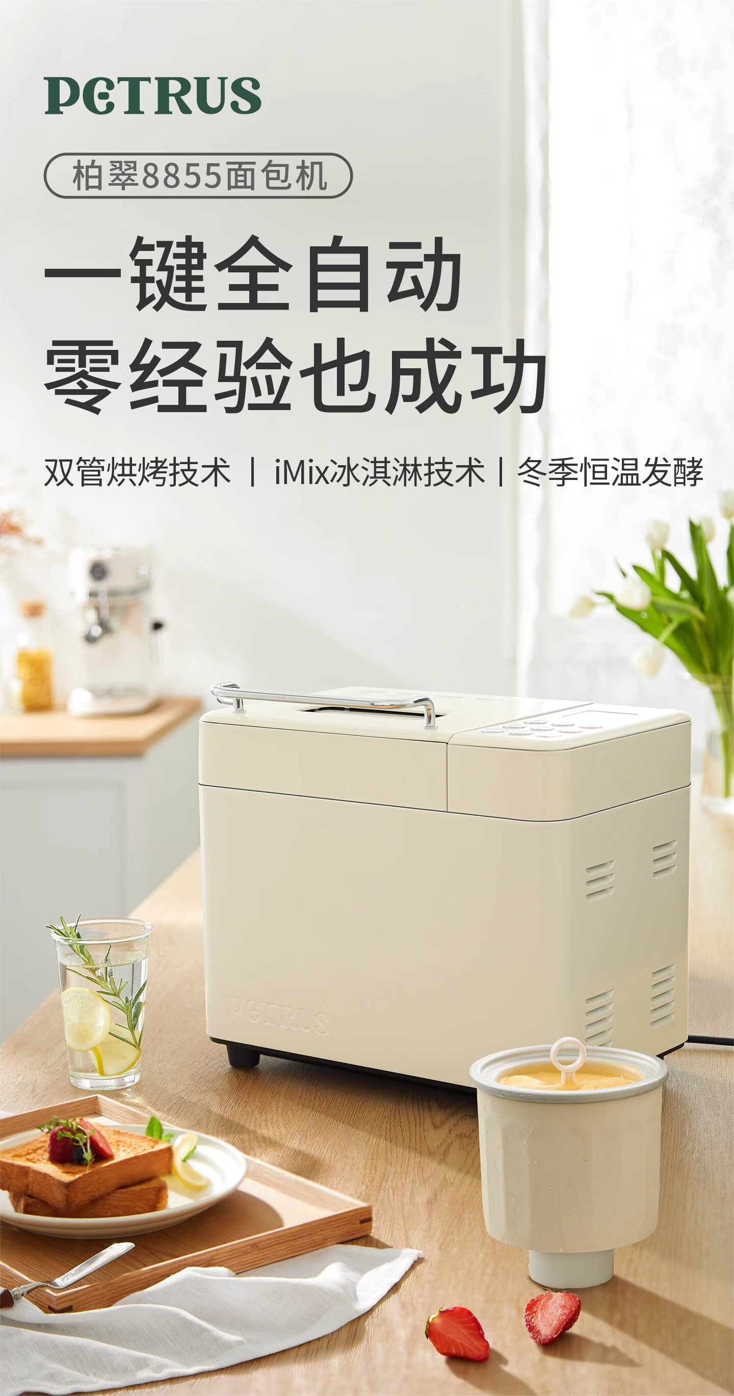 Bai Cui PE8855 household small toaster PE8860YE multi-functional fully automatic all-in-one dough mixer intelligent fermentation breakfast kneading dough self-cooking machine camp PE8860 standard version