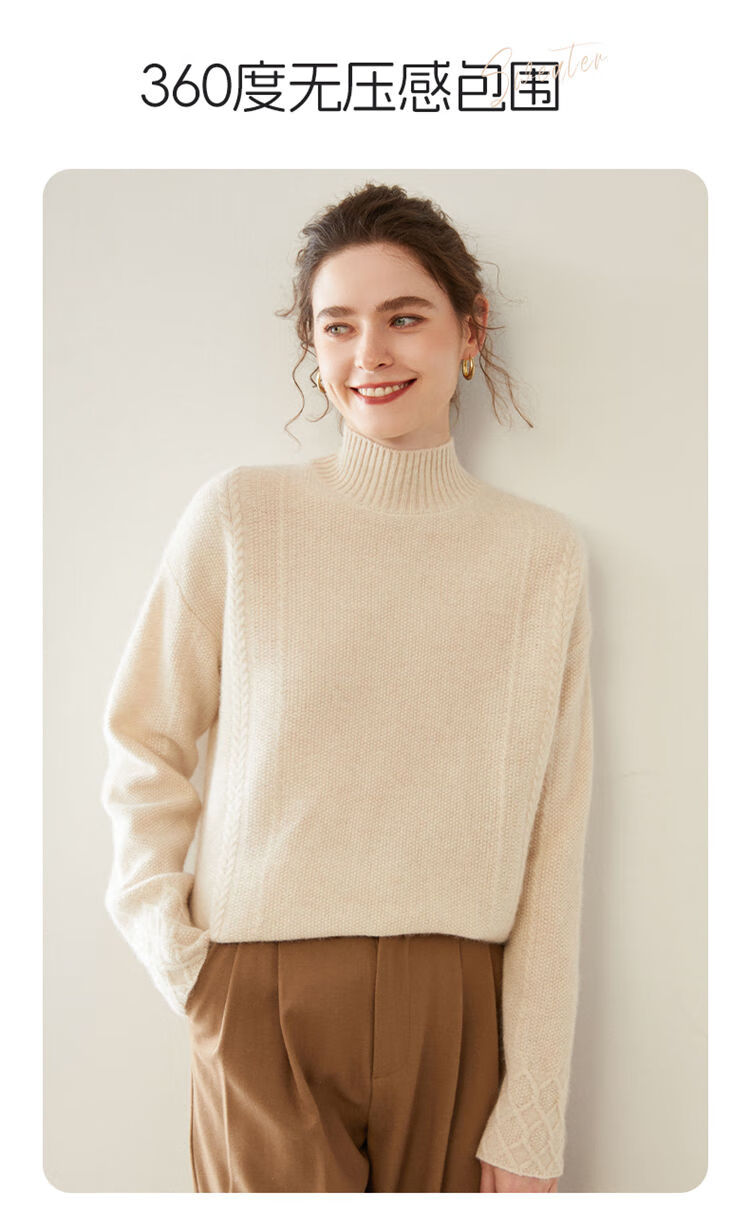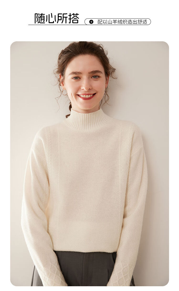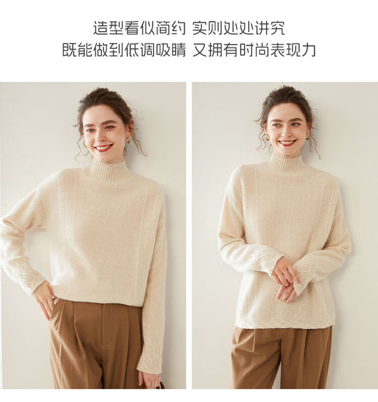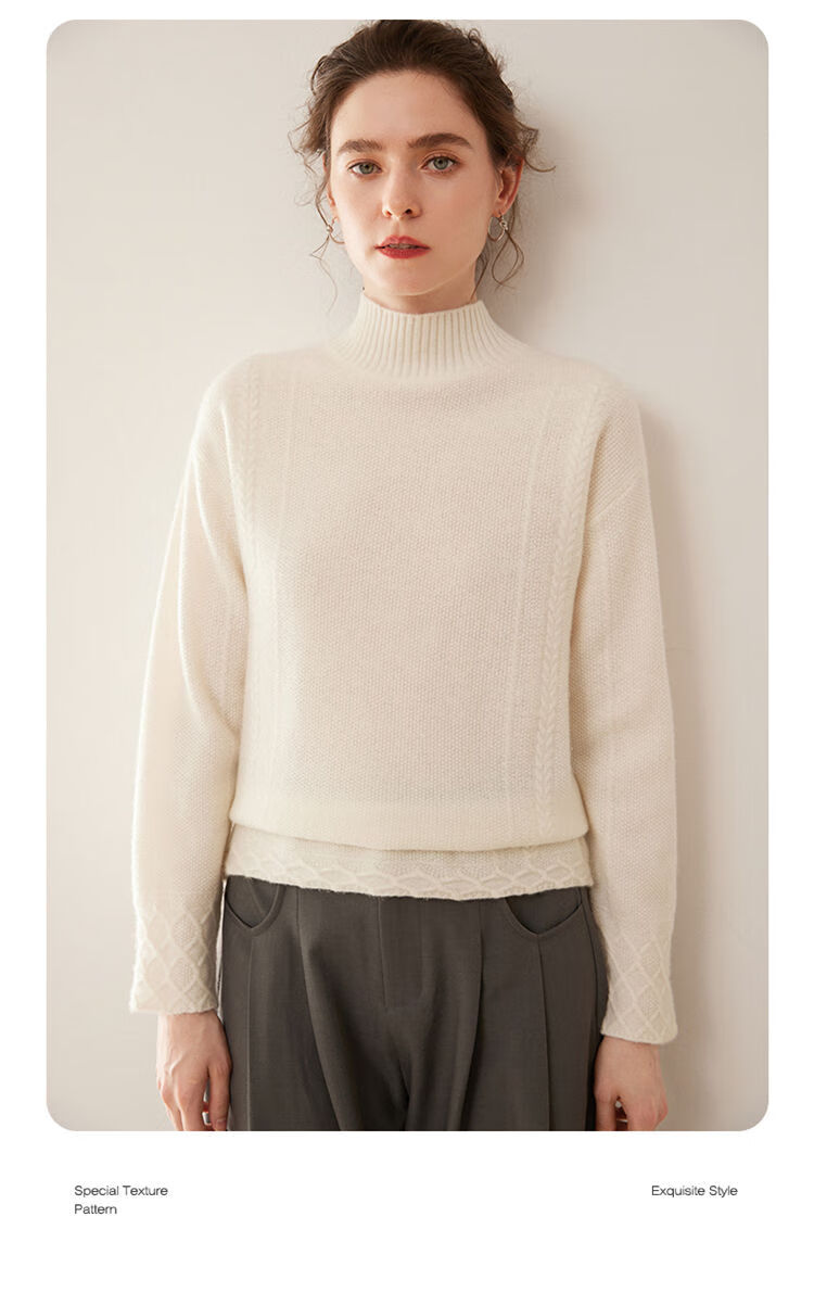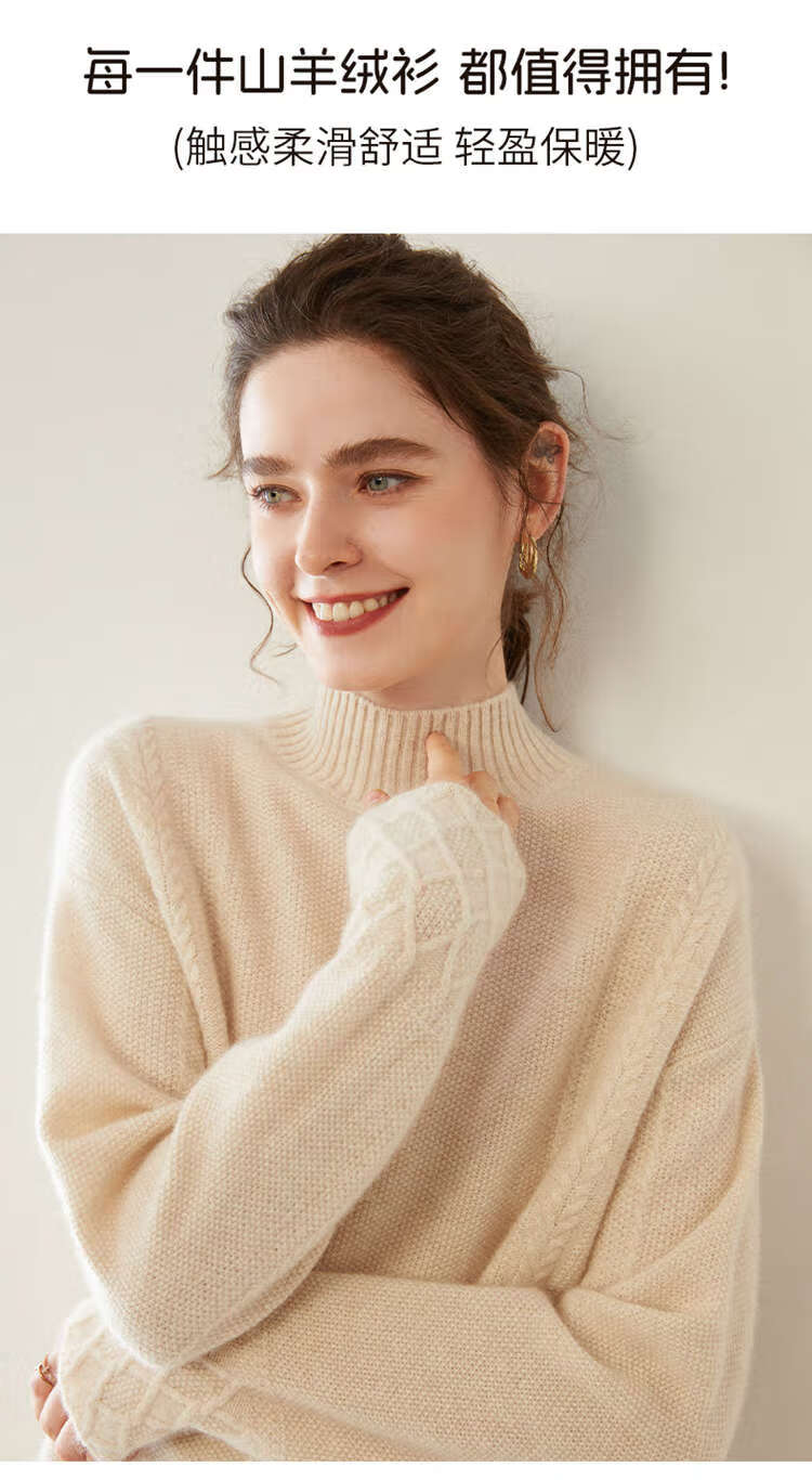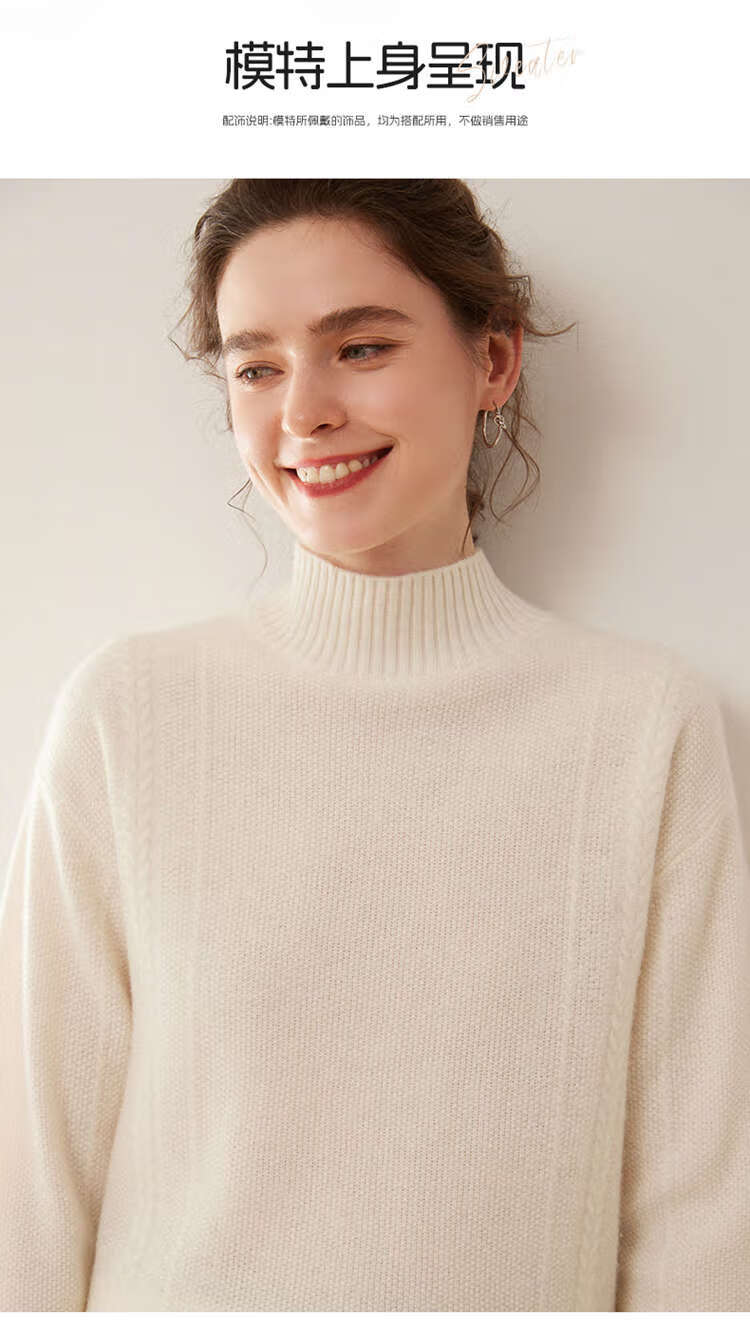 SENLIYA international light luxury high-end cashmere sweater women's half turtleneck pullover sweater loose thickened inner stitching milk white S